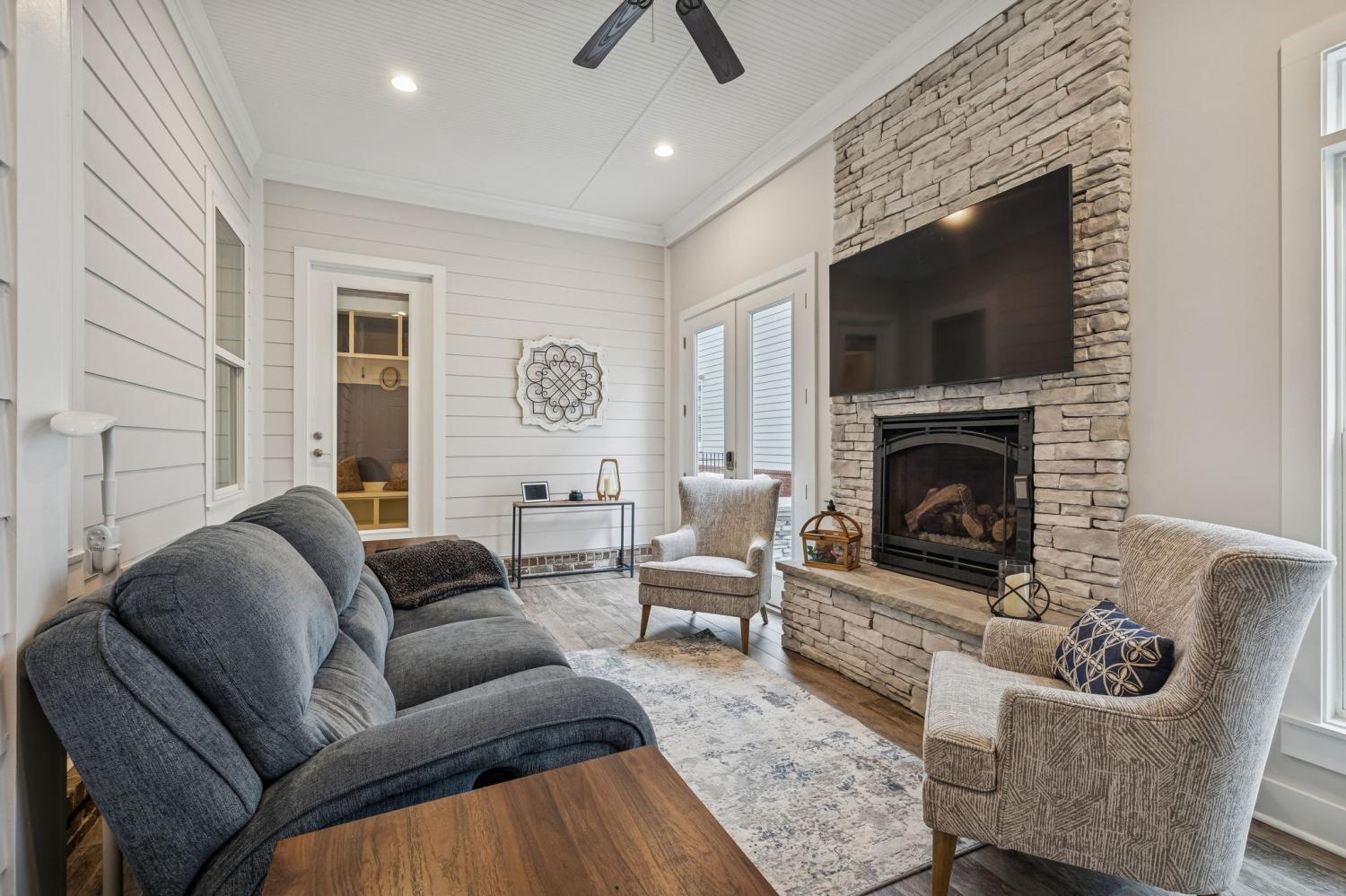 This beautifully updated Addison floor plan is ideally situated on a premium lot overlooking a rare, expansive green space with walking paths—no street in front, just peaceful views and mature trees. A charming front porch with a swing offers the perfect place to relax and enjoy the serene setting. The home features 4 bedrooms and 3.5 bathrooms, with thoughtful upgrades throughout. Inside, you’ll find gorgeous wood floors, solid interior doors, and a spacious living room that flows seamlessly into the kitchen, complete with a cozy fireplace and custom built-in shelving. The fully renovated kitchen showcases quartz countertops, upgraded cabinetry, and a built-in wine/beverage refrigerator—perfect for entertaining. All bathrooms have been beautifully remodeled with stylish finishes. Outdoor living is exceptional, featuring an enclosed back porch with a fireplace and lounge area, ideal for year-round enjoyment. The landscaped and fenced side yard has been redesigned with a stunning stone seating wall, creating a private outdoor retreat. The front, back, and side yards are fully irrigated, and the property includes a 3-car garage. With its combination of luxury updates, exceptional outdoor spaces, and unmatched green-space views, this home offers a rare opportunity for refined living in a truly special setting.