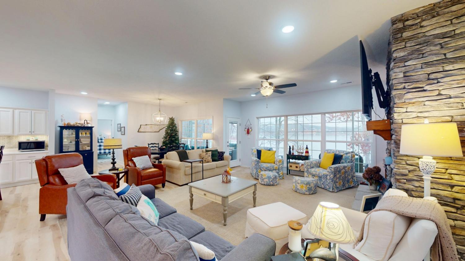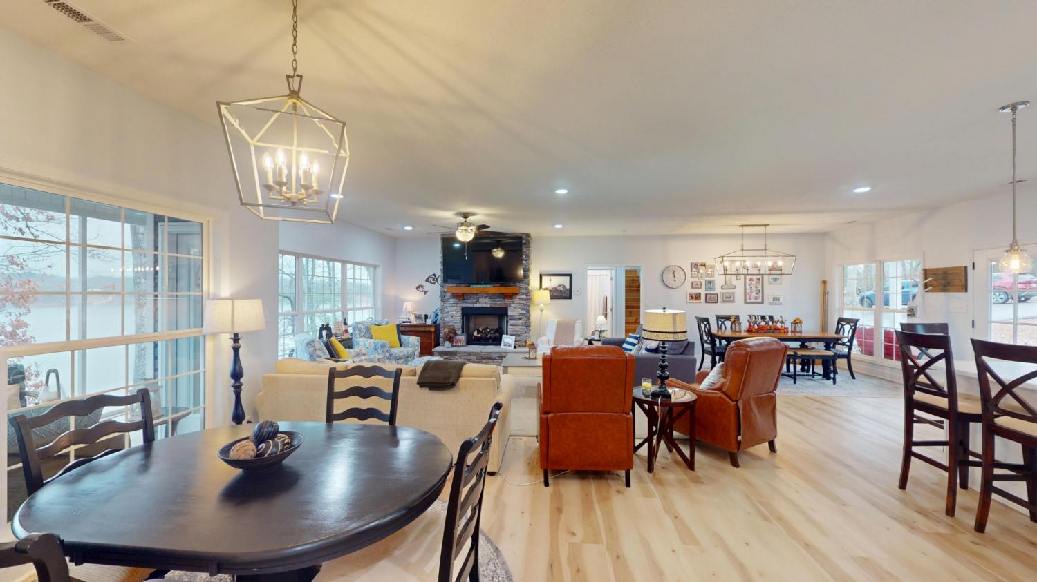 LAKESIDE LIVING AT ITS BEST! Welcome to your TURNKEY WATERSIDE LAKE escape where beauty, comfort and recreation converge. This stunning 4-bedroom home with PRIVATE SINGLE SLIP DOCK offers breathtaking views and effortless indoor-outdoor living, and direct access to endless boating and fishing adventures. Screened-in back porch is the perfect place for morning coffee. Enjoy the waterside lounging deck for morning sunrises and dreamy sunsets. Spacious primary suite offers lake views, private patio, and HUGE primary bath with separate vanities and walk-in shower. Kitchen has STAINLESS APPLIANCES and HIGH-END finishes. HUGE FLEX ROOM is perfect for game time or 5th bedroom. If you're seeking a place where memories are made on the water, this beautiful lakeside property delivers on every level.