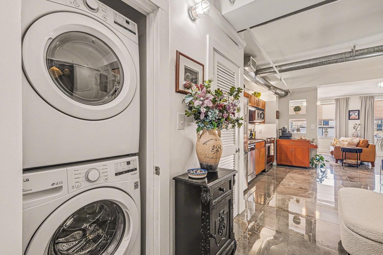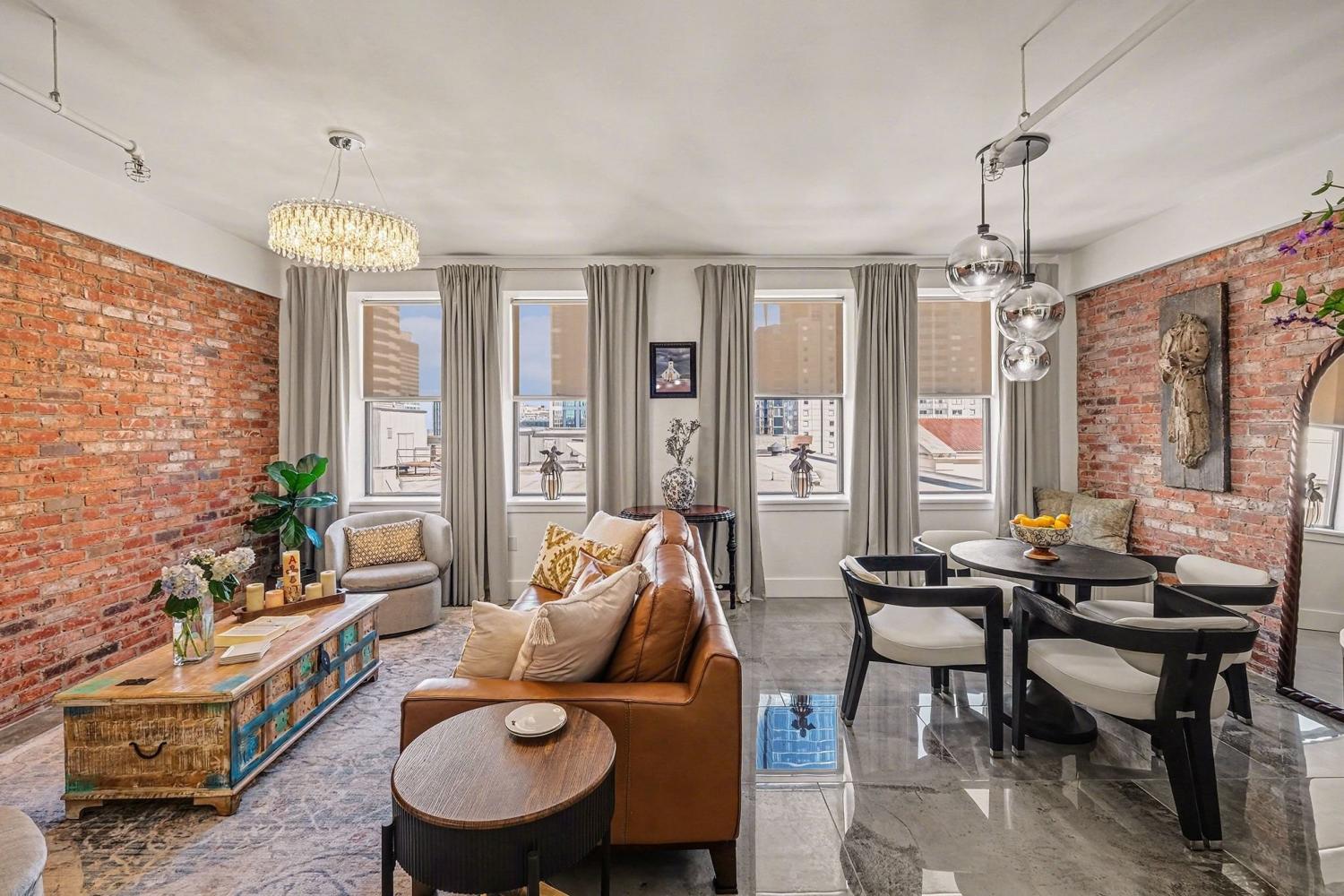 Discover the perfect downtown Nashville retreat with this stunning condo located at the vibrant corner of Church Street and 7th Avenue, just two blocks from the lively energy of Broadway. Imagine living within walking distance of the city's best restaurants, shopping, entertainment, and nightlife, everything Nashville has to offer right at your doorstep. Unit 803 combines historic charm with modern luxury. Bright and inviting, this home features four large east-facing windows that flood the space with natural light, creating an airy and welcoming atmosphere. The open floor plan is thoughtfully renovated with new floors, fresh paint, and stylish updates throughout. Two charming brick accent walls pay homage to the building’s 1920s heritage while complementing the contemporary design. Enjoy a fully updated bathroom with a walk-in shower and sleek glass doors, a new vanity, and high-end fixtures thought out the home. The kitchen boasts stainless steel appliances, granite countertops, a tile backsplash, a walk-in pantry, and ample cabinet space, perfect for entertaining or everyday living. The unit offers space for a stackable full-size washer and dryer. The spacious owner’s suite comfortably fits a king-size bed and offers a large closet, an exceptional feature for downtown condos. Additional amenities include central mailboxes, a 24-hour gym, wired Google Fiber for fast internet, a conference room, and newly installed building security for peace of mind. An assigned parking spot ensures hassle-free parking in this bustling downtown location. This condo truly combines historic charm, modern updates, and unbeatable location, making it the ideal home for those seeking convenience, comfort, and style in the heart of Nashville. Don’t miss your chance to own this exceptional downtown residence! Seller will consider selling an additional 4x10 storage closet, just across the hall. NO STR. Long term renting allowed with permit. Check with management for details.