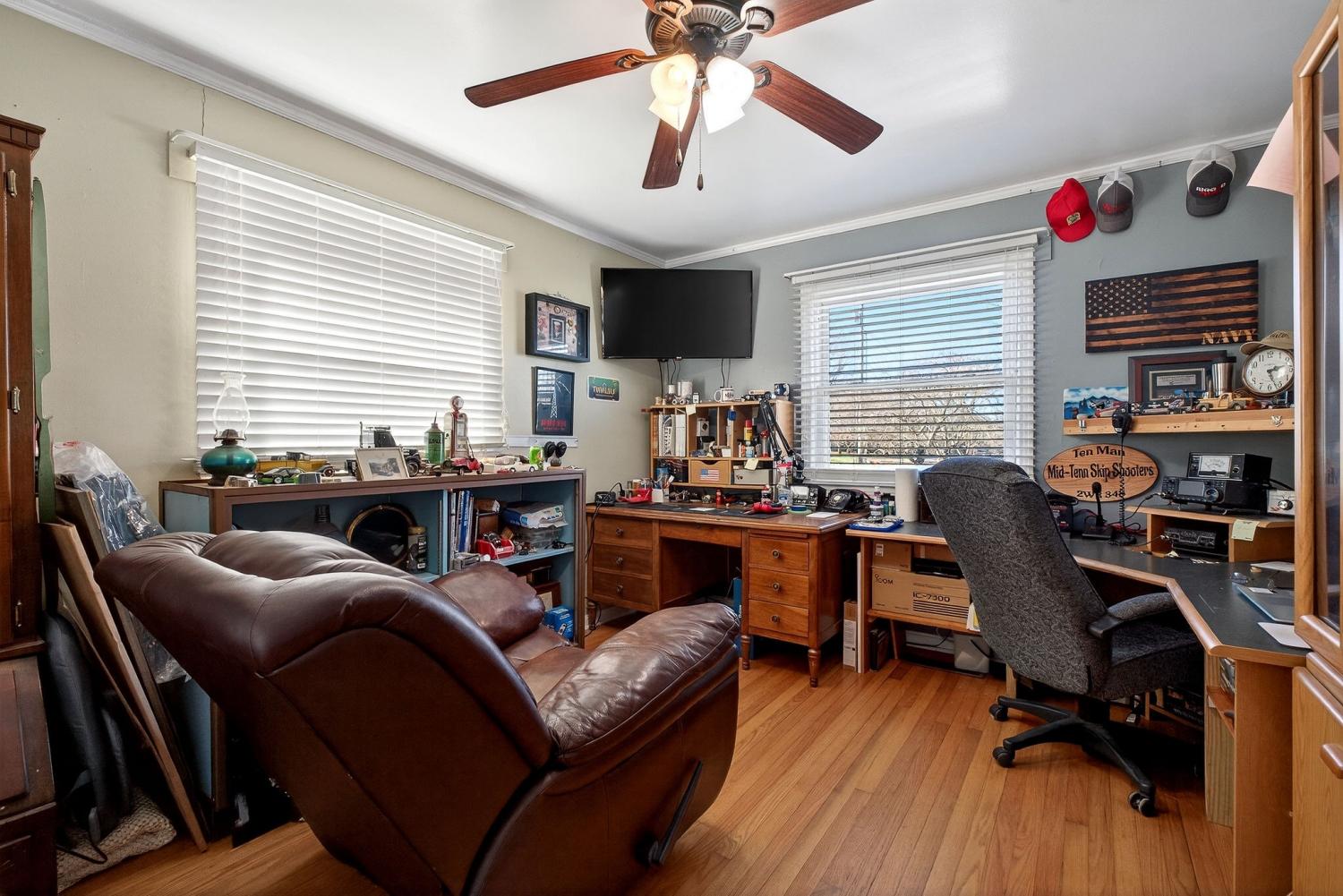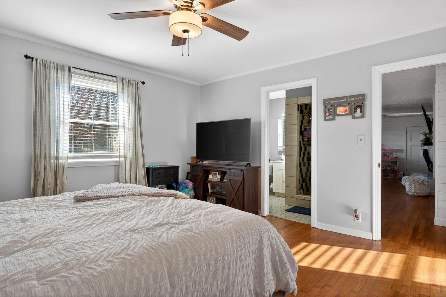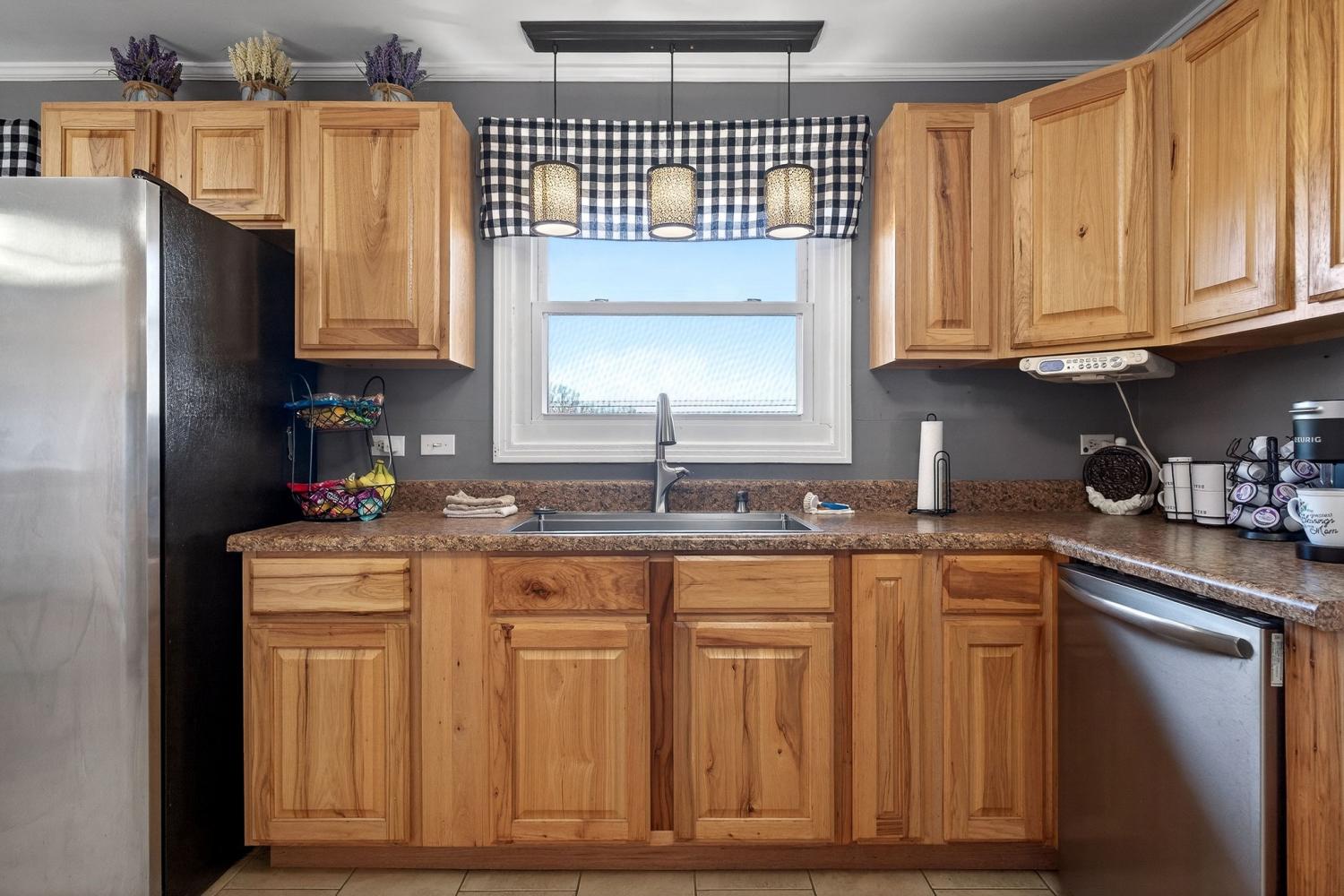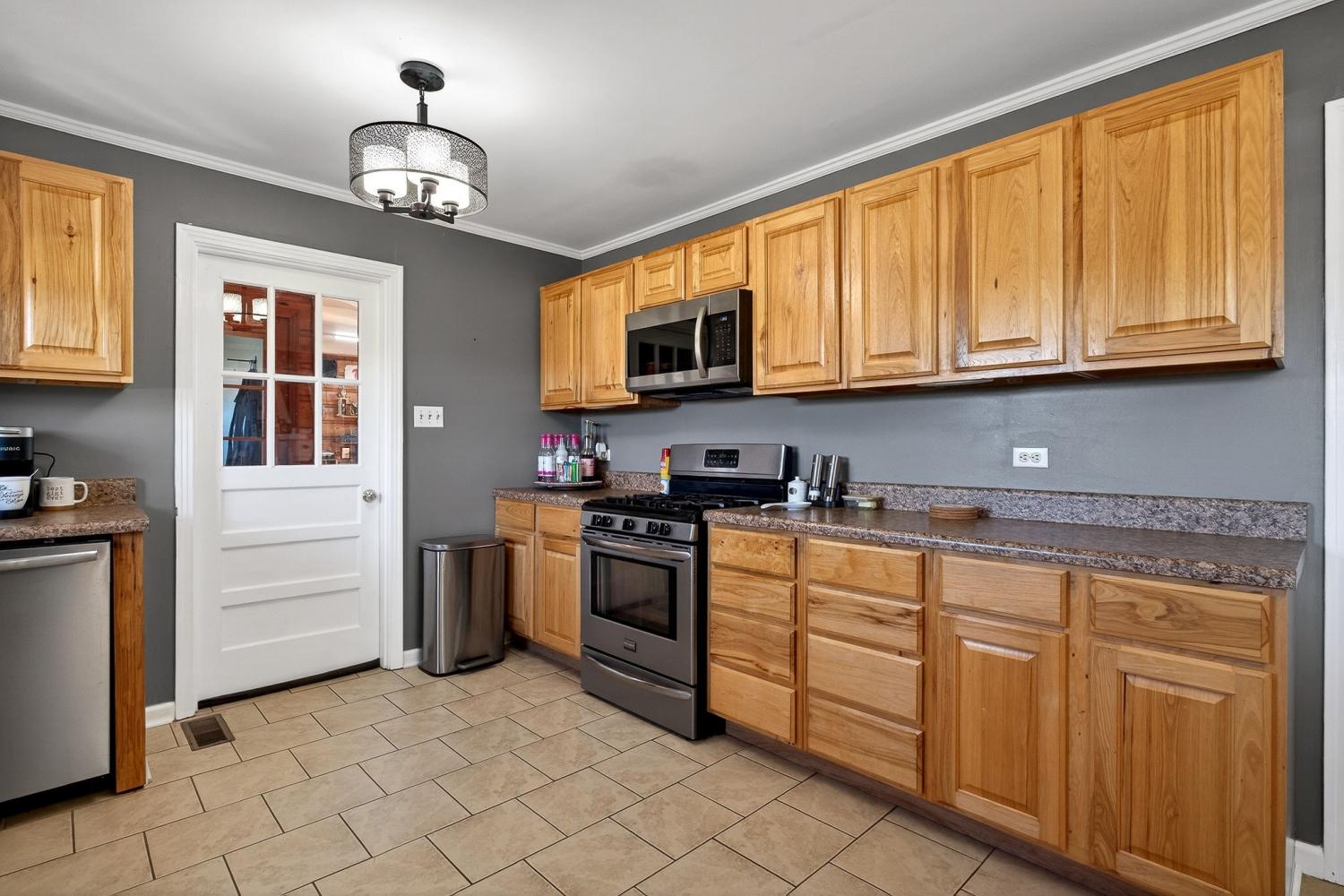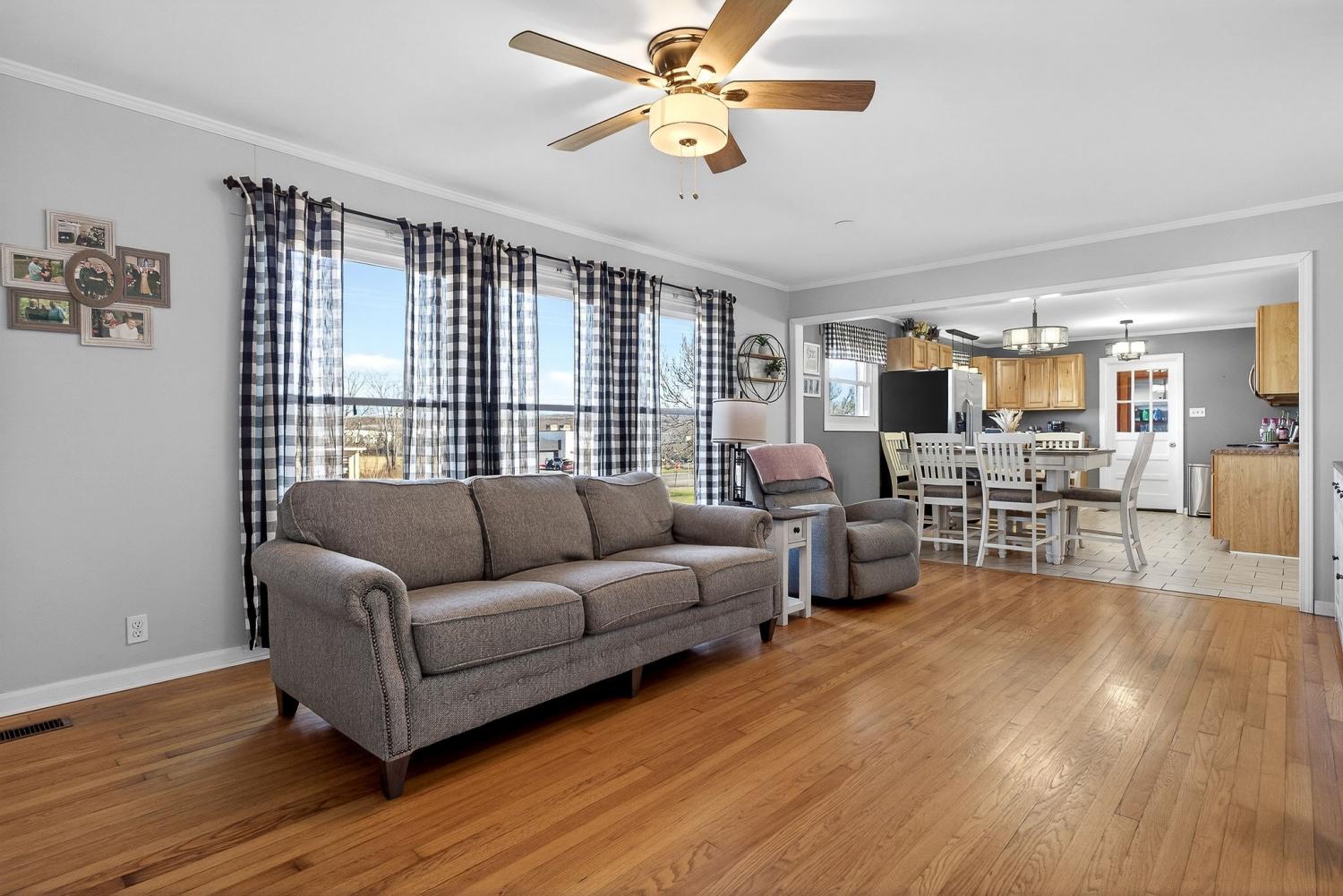 Welcome to this well-maintained and thoughtfully updated home offering comfort, space, and functionality both inside and out. From the moment you arrive, you’ll appreciate the inviting curb appeal, level yard, and covered front porch—perfect for relaxing mornings or evening gatherings.Inside, the home features hardwood floors, bright neutral finishes, and a spacious layout ideal for everyday living and entertaining. The living room is warm and welcoming, highlighted by a modern fireplace and abundant natural light. Multiple living areas provide flexibility for family space, a home office, or hobby rooms.The large eat-in kitchen offers ample cabinetry, generous counter space, and room for a full dining set—perfect for hosting holidays and family meals. Bedrooms are generously sized with plenty of storage, and the bathrooms have been tastefully updated with modern fixtures and finishes.Step outside to enjoy the covered back porch overlooking the backyard, ideal for outdoor entertai