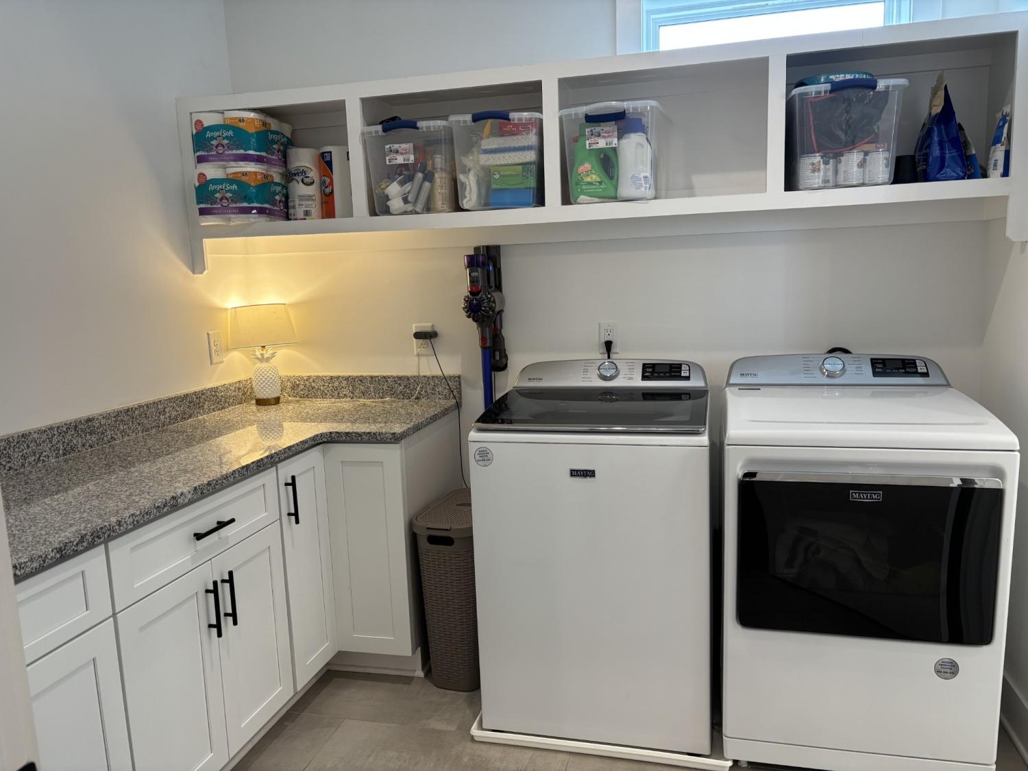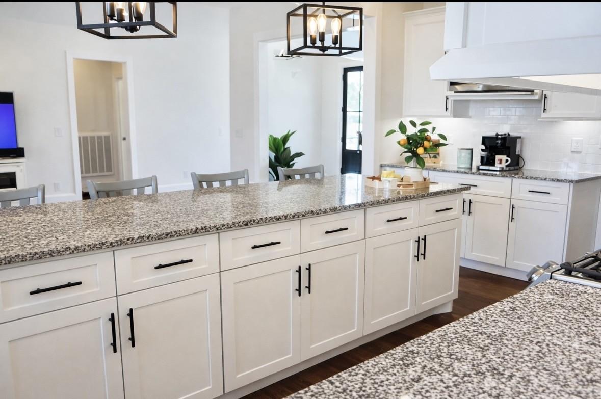Stunning home in Grace Haven Subdivision. Premium upgrades throughout home; Finished wood and tile throughout home & in primary bedroom; 2 pantries in kitchen; Primary bedroom downstairs; Bedroom/bonus/media room upstairs; Guest bedrooms and upstairs are carpeted; Extended concrete drive and patio. Partially fenced yard. Washer and steam dryer, refrigerator, gas range and microwave remain with house; Covered patio with wet bar and outlet for TV; Decorative rock and beautiful landscaping surround Magnolia style home; Please verify all pertinent information. If Sq Footage is important please remeasure.