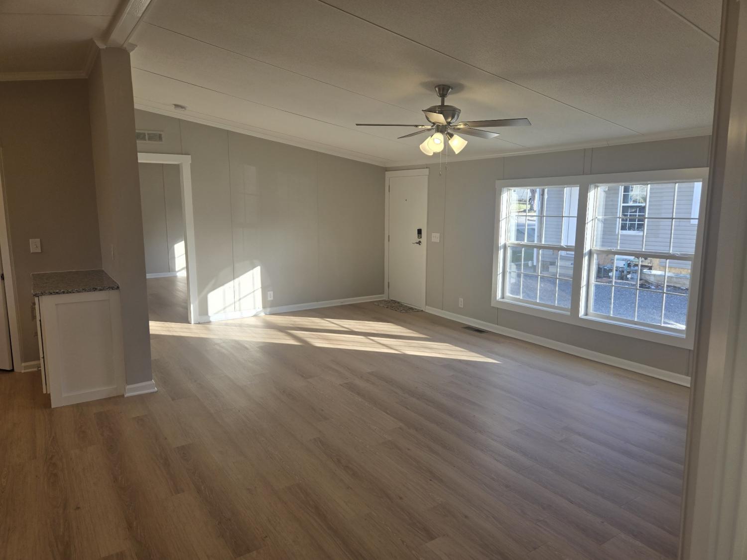 Fully Remodeled & Move-In Ready! Basically Brand New Construction. Discover the perfect blend of comfort, convenience, and modern updates with this recently relocated manufactured home—now set on a permanent foundation and nestled on a small, easy-to-maintain lot right in town. This home has been completely refreshed from top to bottom, offering peace of mind and a stylish, like-new feel throughout. Updates include brand-new siding, new gutters, new HVAC system, cabinetry, fresh paint, new flooring, lighting, and more. The thoughtful remodel gives every room a clean, bright, and welcoming look. Enjoy an open-concept living area, an updated kitchen, and comfortable bedrooms that make this home ideal for first-time buyers, downsizers, or anyone searching for low-maintenance living close to everything. With its central location, you’ll appreciate quick access to local shops, restaurants, schools, and conveniences.