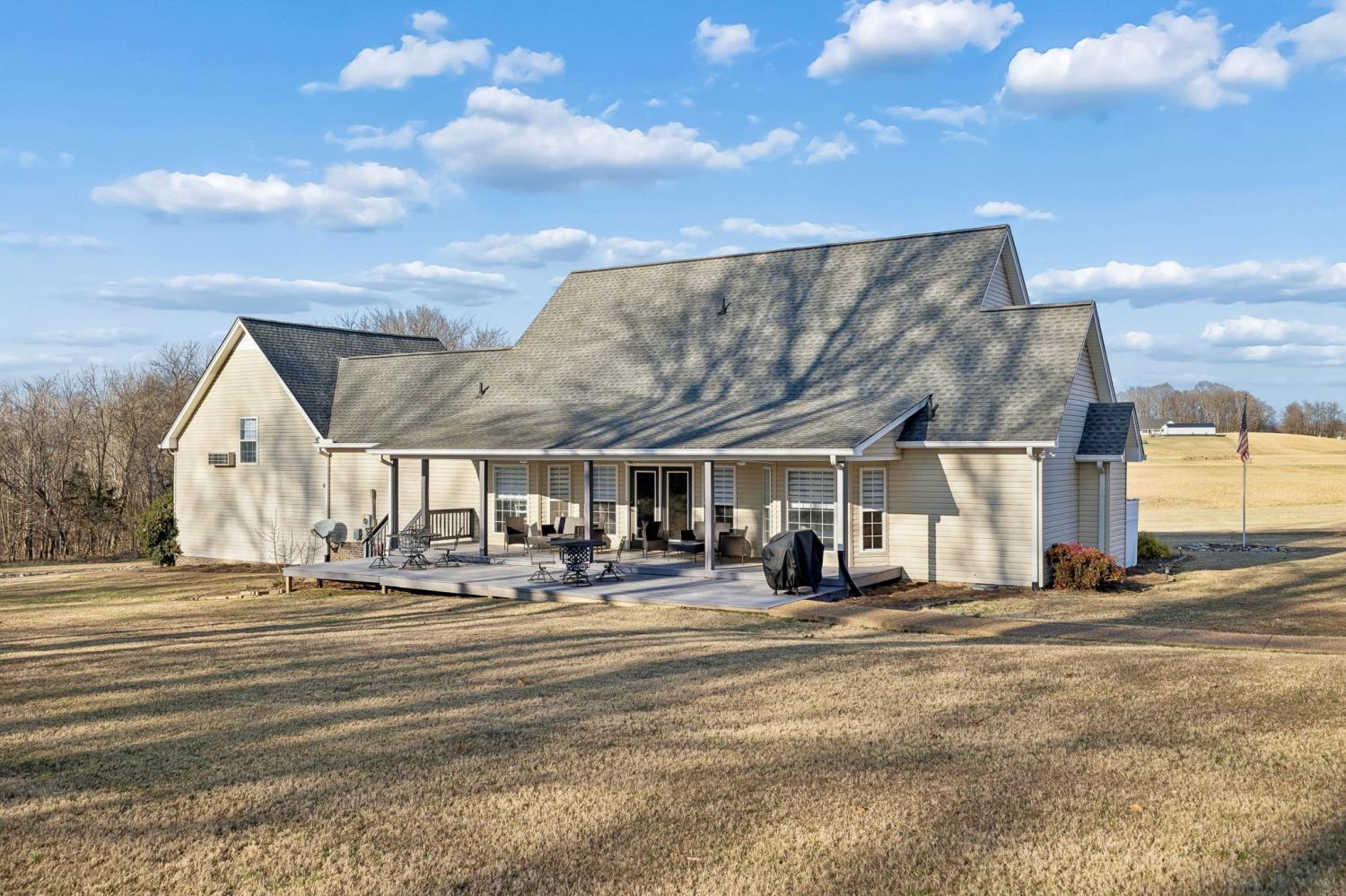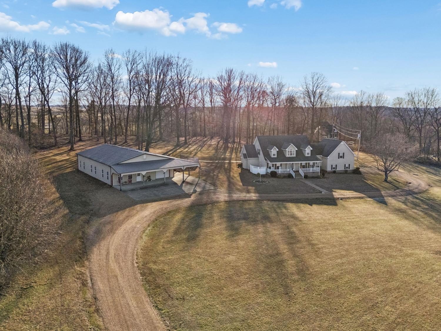 Set on more than 15 private acres an hour from Nashville and minutes from Portland, this beautiful property delivers the peaceful Tennessee acreage lifestyle buyers are actively searching for, set on the West Fork Drakes Creek with an almost 2k square foot detached barndominium! The renovated 4 bedroom, 2 full bath, 2 half bath main home impresses from the moment you enter with a grand two-story foyer, soaring ceilings, and an elegant staircase that opens into a spacious living room centered around a stunning stone fireplace. The layout flows effortlessly into the kitchen, featuring granite countertops, stainless steel appliances, generous cabinetry, and a charming breakfast nook, while a sun-filled formal dining room adds the perfect touch for hosting. The main-level primary suite offers a private retreat with double vanities, walk-in shower, soaking tub, and walk-in closet, complemented by an additional main-floor bedroom and two convenient half baths. Upstairs, a large bonus room and two oversized bedrooms share a Jack-and-Jill bath, creating flexible space for a variety of needs. Enjoy serene mornings and evenings on the covered front porch or expansive covered back deck overlooking scenic countryside views. Highlights include newer HVAC systems and a storm shelter with garage access. The impressive detached barndominium expands the possibilities with a full kitchen, living area, two flex rooms currently being used as bedrooms, full bath, laundry room, and a one-car garage, making it ideal for guests, extended stays, or income potential from short-term rentals. Offering privacy, modern upgrades, and unmatched versatility near shopping, dining, and easy Nashville access, this exceptional property is a rare opportunity - schedule your private showing today!