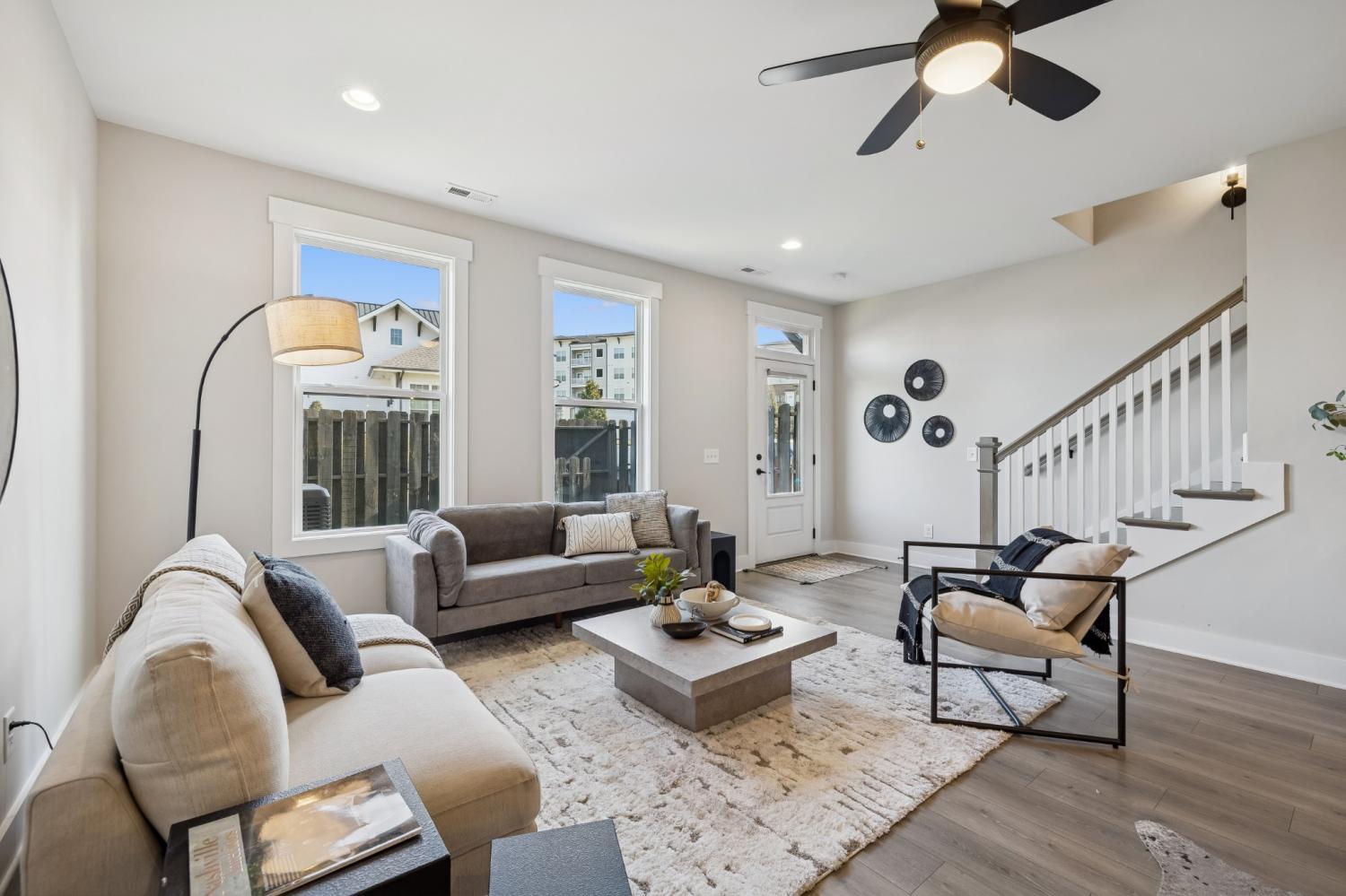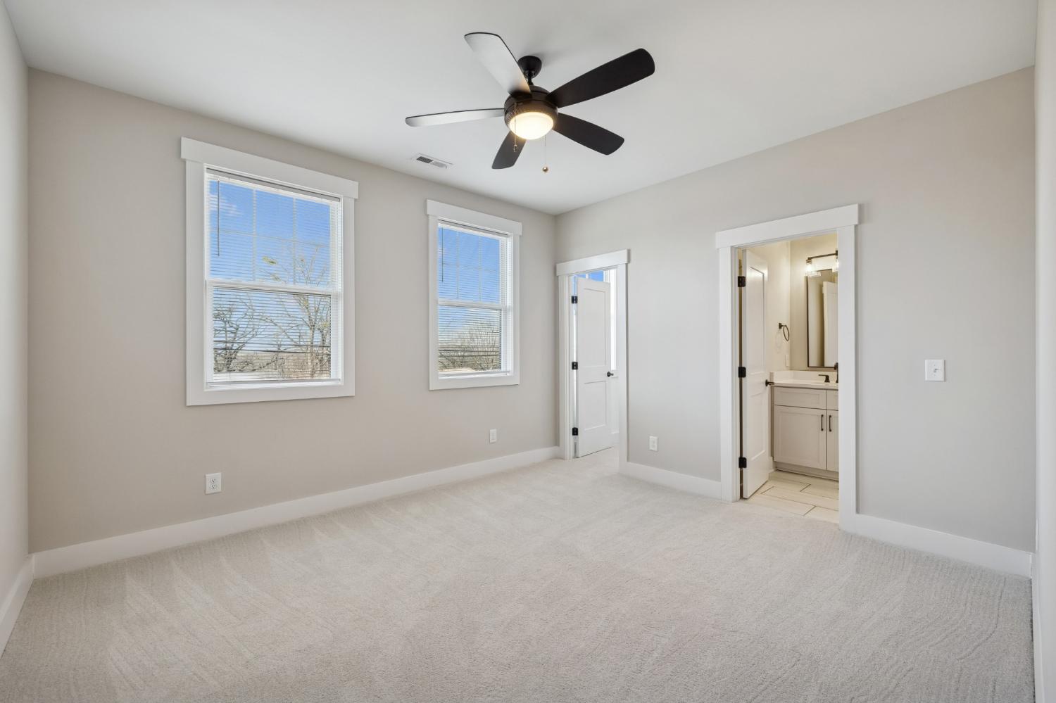 Modern, bright, and designed to actually live in, this 2020-built East Nashville townhome delivers space, style, and a layout that feels intentional from the moment you walk in. Freshly painted throughout, the home has a clean, polished feel that’s truly move-in ready. The main level is open and expansive with 9’ ceilings and a surprisingly large living area that’s flooded with natural light. The kitchen is both sharp and functional, featuring white cabinetry, quartz countertops, subway tile backsplash, a walk-in pantry, and a generous island with seating that naturally becomes the centerpiece of the space. Neutral flooring runs throughout the main floor, giving it a cohesive, modern look that’s easy to maintain. A dedicated office or flex space plus a thoughtfully designed entry drop zone add everyday practicality without sacrificing style. Upstairs, both bedrooms are true en suites with great proportions and excellent closet space. The primary suite stands out with a well-designed walk-in closet and a spa-inspired bathroom complete with a double vanity, tiled walk-in shower, and clean designer finishes. A full laundry room, linen storage, and additional attic space make the upstairs both comfortable and functional. Outdoor space is private and purposeful, with a covered front porch and a fenced rear courtyard — ideal for morning coffee, pets, or unwinding after a long day. Two assigned parking spaces are located just steps from the home. This is a well-designed, low-maintenance home that lives larger than expected and checks all the boxes for modern East Nashville living.
