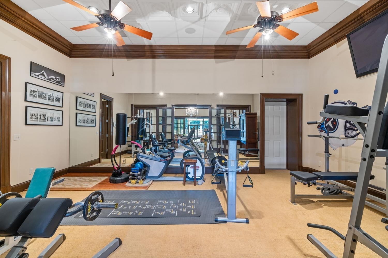 Location! location! Spectacular in design, quality, and attention to detail, this exquisite European inspired home was built by a builder for his personal residence. Perfect for entertaining, the home offers an open foyer with elegant domed ceiling, large scale rooms/living areas, 8 fireplaces, all en-suite bedrooms, a luxurious in-law suite, maid's quarters with kitchen, theater room, exercise room, large sunroom, several bar areas, elevator to all floors, plus a complete saltwater negative edge pool with many custom features, surrounded by extensive Corinthian columns and custom colonade. The home sits on a private 2.56 acre lot surrounded by common area in an exclusive small gated community with only 15 homes.