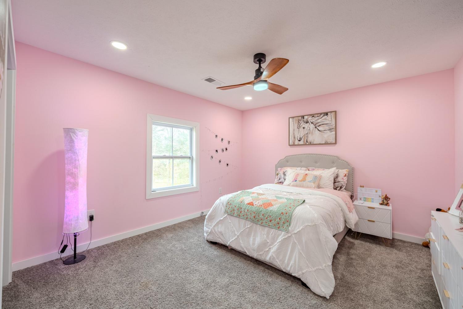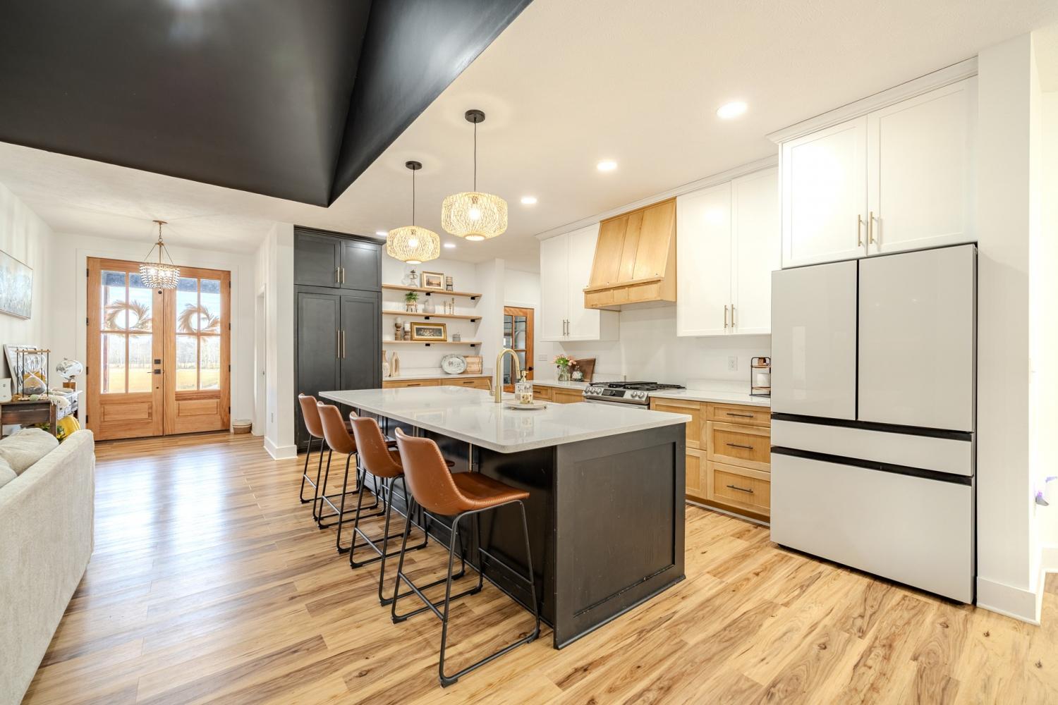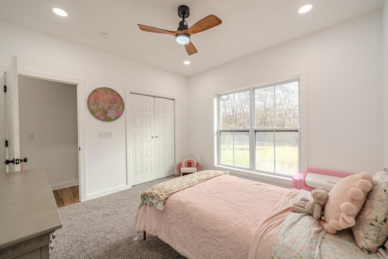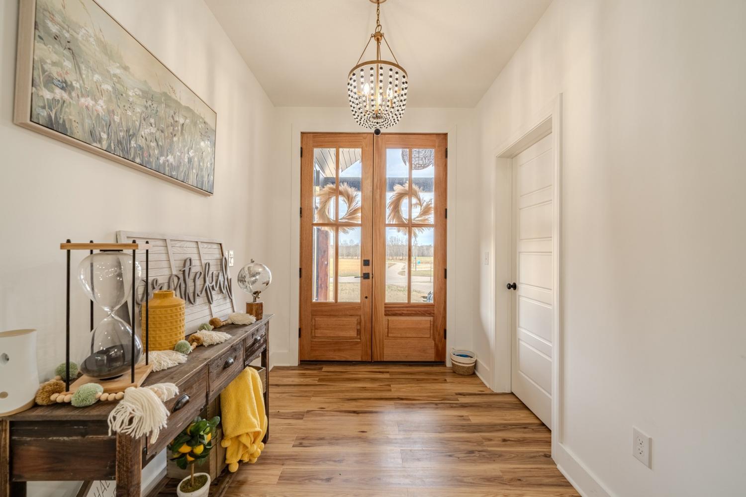 Welcome home to this beautifully designed modern farmhouse that perfectly blends warmth, style, and functionality. Situated at the end of a cul-de-sac in a desirable subdivision. From the moment you arrive, the striking exterior with contrasting brick and board-and-batten siding, dark accents, and inviting covered front porch sets the tone for what’s inside.Step into a light-filled, open-concept living space featuring high ceilings, beautiful flooring and a dramatic floor-to-ceiling gas fireplace with a custom wood mantel.The chef’s kitchen boasts a large island with seating, sleek soft close cabinetry with modern hardware, high-end appliances, quarts countertops, and elegant pendant lighting. The kitchen is complete with a well-appointed pantry designed for maximum storage and convenience.Whether hosting guests or enjoying a quiet night in, this space is both stylish and highly functional. Featuring 4 bedrooms and 4 bathrooms, this home also includes a spacious playroom area plus two additional rooms that provide flexibility for use as extra bedrooms, a home office, gym, or hobby space.The primary bedroom offers dual vanities and walk in closet. Enjoy a spa-like experience in the primary bathroom, featuring a walk-in shower with dual shower heads and a luxurious rainfall shower head. Large windows throughout bring in abundant natural light. Outside, enjoy peaceful country surroundings with room to relax, play, or entertain. Located on 1.6 acres, the property offers plenty of space for a shop, garden, pool, or additional outdoor amenities.The indoor storm shelter/safe room provides year-round peace of mind and added protection. This home is a rare blend of modern design and cozy farmhouse charm—crafted for those who appreciate quality, style, and comfort. No HOA. About 7 minutes from town. Close to Shiloh National Military Park and Pickwick Lake, blending natural beauty, history, and recreational opportunities. Make sure to watch the video tour!