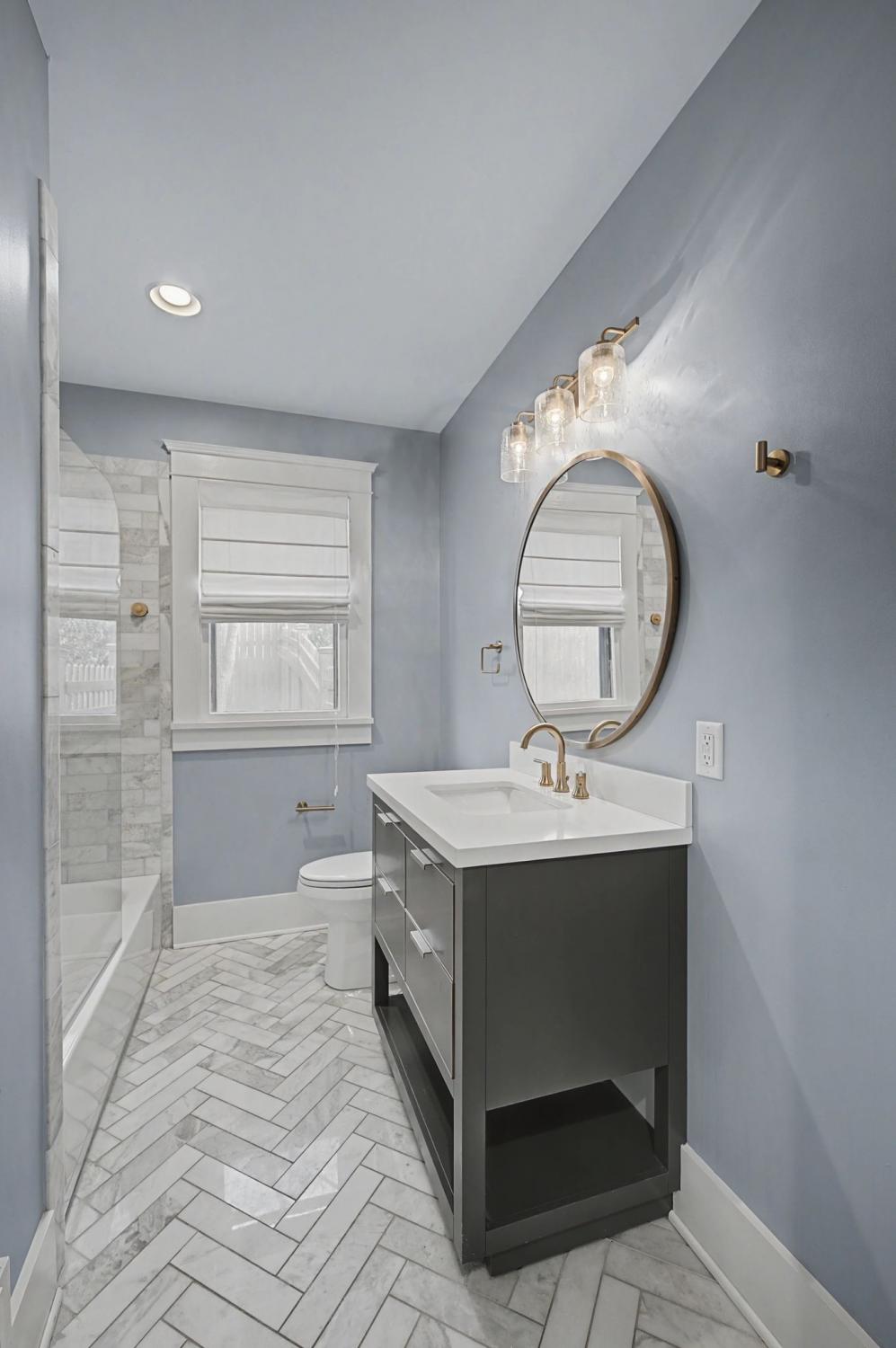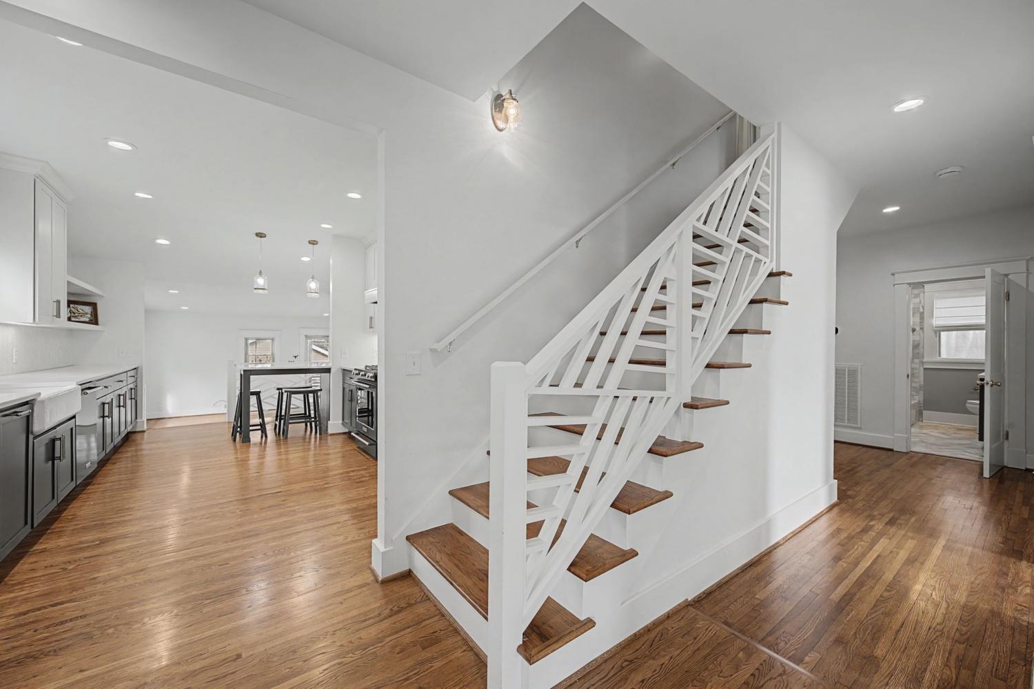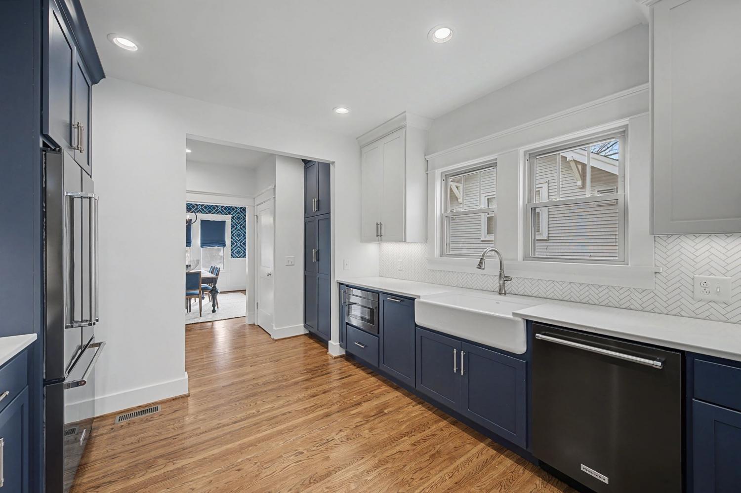 Amazing 1930's Craftsman Home blends timeless charm with modern comforts! Truly an exceptional renovation and the kitchen is the heart of the home - featuring quartz counters, abundant custom cabinets, Kitchen Aid appliances, and a built- in bar counter with stools. The upstairs primary suite is a relaxing retreat with 2 walk in closets, exposed brick and a spa like bath! The main floor features a welcoming LR with fireplace, formal dining room, 2 main floor bedrooms and a beautifully renovated bath, stackable W/D. Flex room off kitchen for office/den/music room..whatever the need! Fantastic screened porch offering beautiful sunsets! And a lot larger than most giving outdoor space for entertaining. Privacy fence and landscaping added plus a 2 CAR garage off alley! The parking for guests also a feature not easily found.