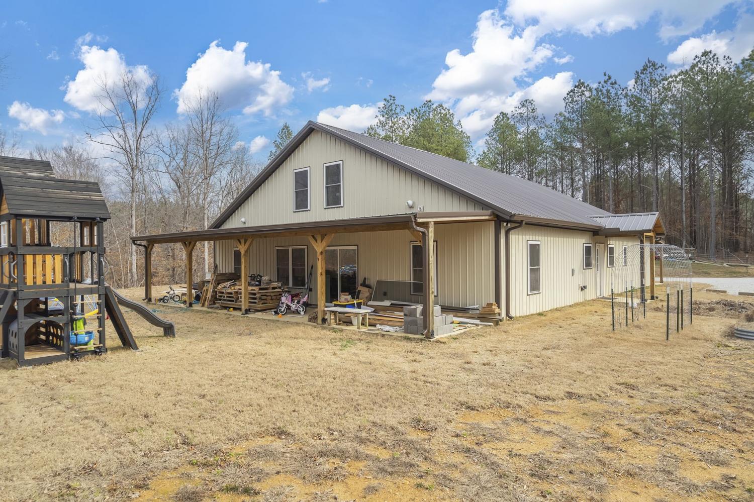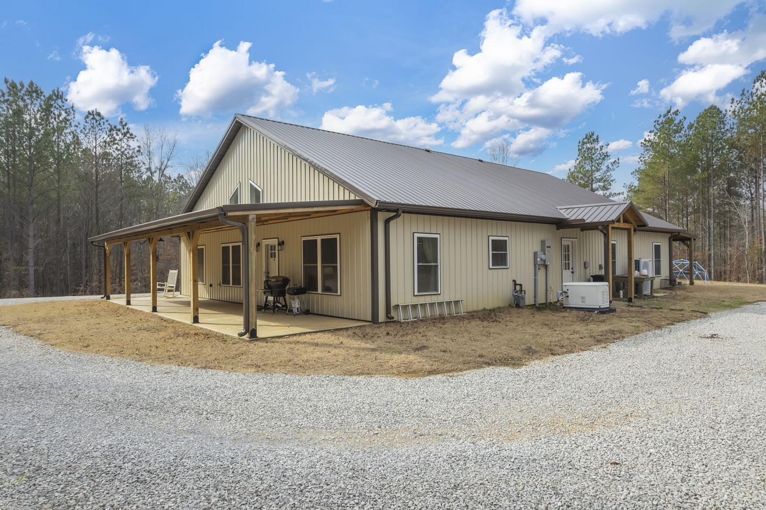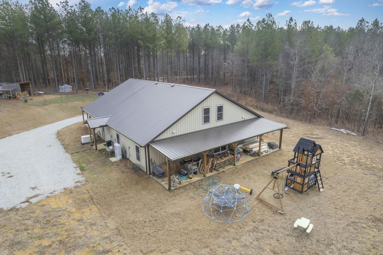 Stunning new 3,156 sq ft barndominium set on 7.86 acres, thoughtfully designed to offer space, functionality, and versatility. This open-concept home features up to 5 bedrooms if needed, or 3 BR and an office or bonus room, 2.5 bathrooms, two living areas, a spacious kitchen, a dedicated office, and a utility room on the main level, along with a large upstairs bonus (bedroom) room complete with an additional full bathroom. Quality construction and upgrades include a tankless water heater, whole-home Generac generator, a secure storage/tornado room beneath the staircase, and abundant storage throughout. Outdoors, the property continues to impress with a 10×10 barn featuring two stalls, a tool shed, and a fenced area ideal for livestock or pets. A 50-amp RV hookup is conveniently located beside the home. For future expansion, the property offers potential for a shop at the rear, with a separate underground 220-amp electrical stub already run from the transformer. The land is accented by a beautiful seasonal creek and provides excellent hunting and recreational opportunities, all while offering privacy and usability. This exceptional property offers far more than can be captured in a single description. Click on the listing webpage for virtual tours and more information. Call today!