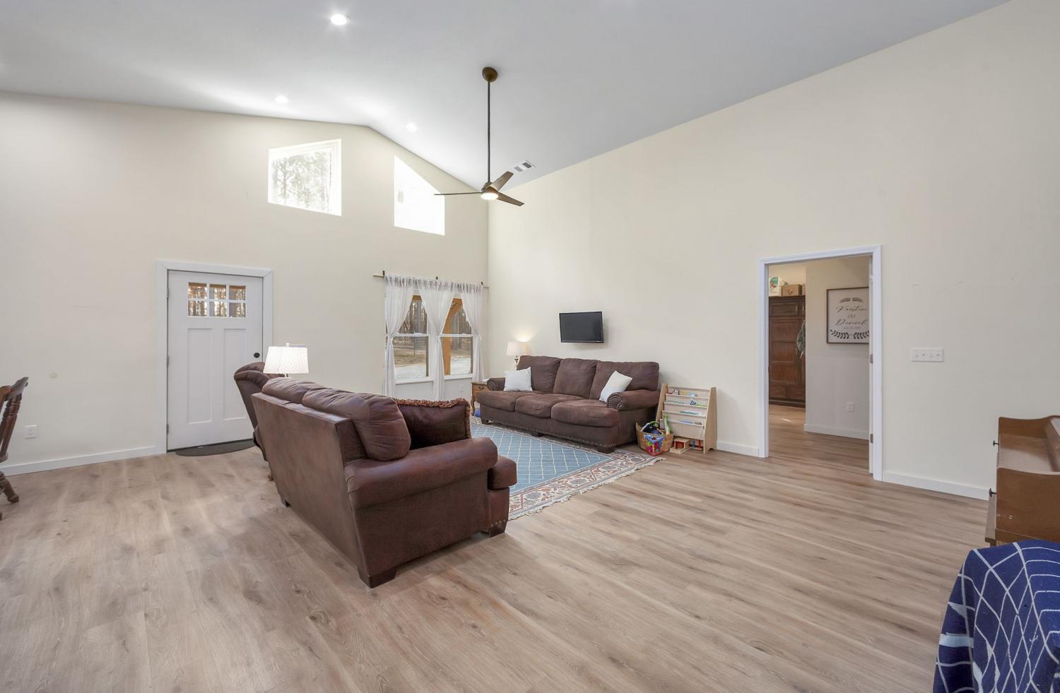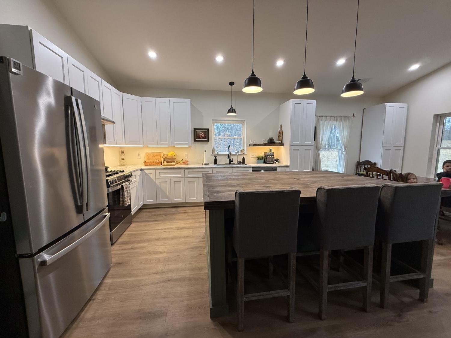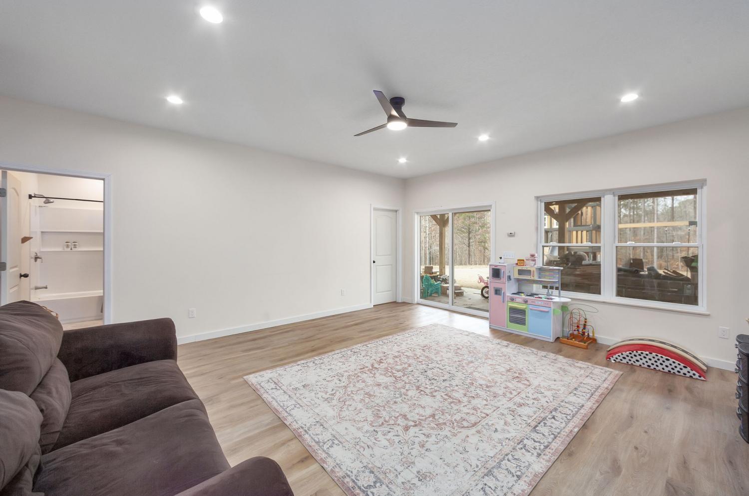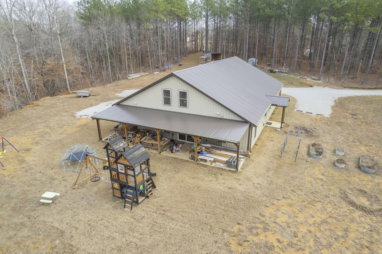 Stunning new 3,156 sq ft barndominium set on 7.86 acres, thoughtfully designed to offer space, functionality, and versatility. This open-concept home features up to 5 bedrooms if needed, or 3 BR and an office or bonus room, 2.5 bathrooms, two living areas, a spacious kitchen, a dedicated office, and a utility room on the main level, along with a large upstairs bonus (bedroom) room complete with an additional full bathroom. Quality construction and upgrades include a tankless water heater, whole-home Generac generator, a secure storage/tornado room beneath the staircase, and abundant storage throughout. Outdoors, the property continues to impress with a 10×10 barn featuring two stalls, a tool shed, and a fenced area ideal for livestock or pets. A 50-amp RV hookup is conveniently located beside the home. For future expansion, the property offers potential for a shop at the rear, with a separate underground 220-amp electrical stub already run from the transformer. The land is accented by a beautiful seasonal creek and provides excellent hunting and recreational opportunities, all while offering privacy and usability. This exceptional property offers far more than can be captured in a single description. Click on the listing webpage for virtual tours and more information. Call today!