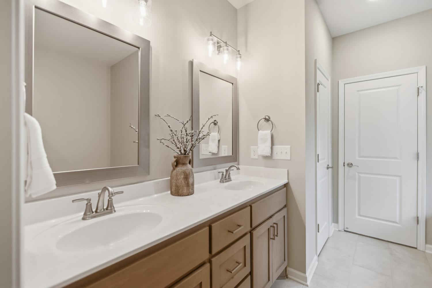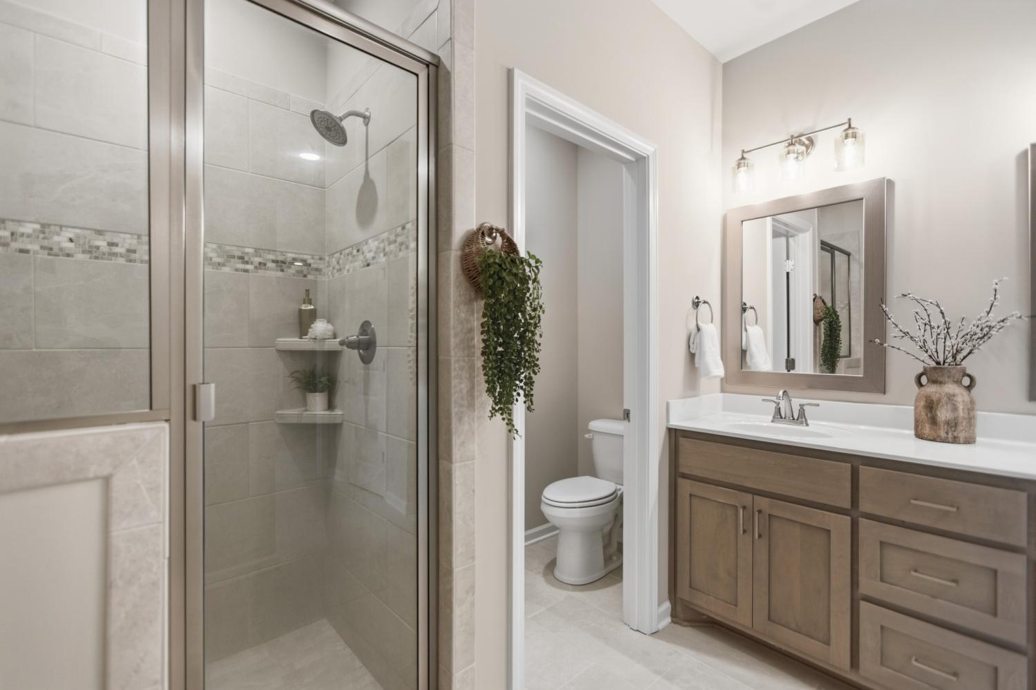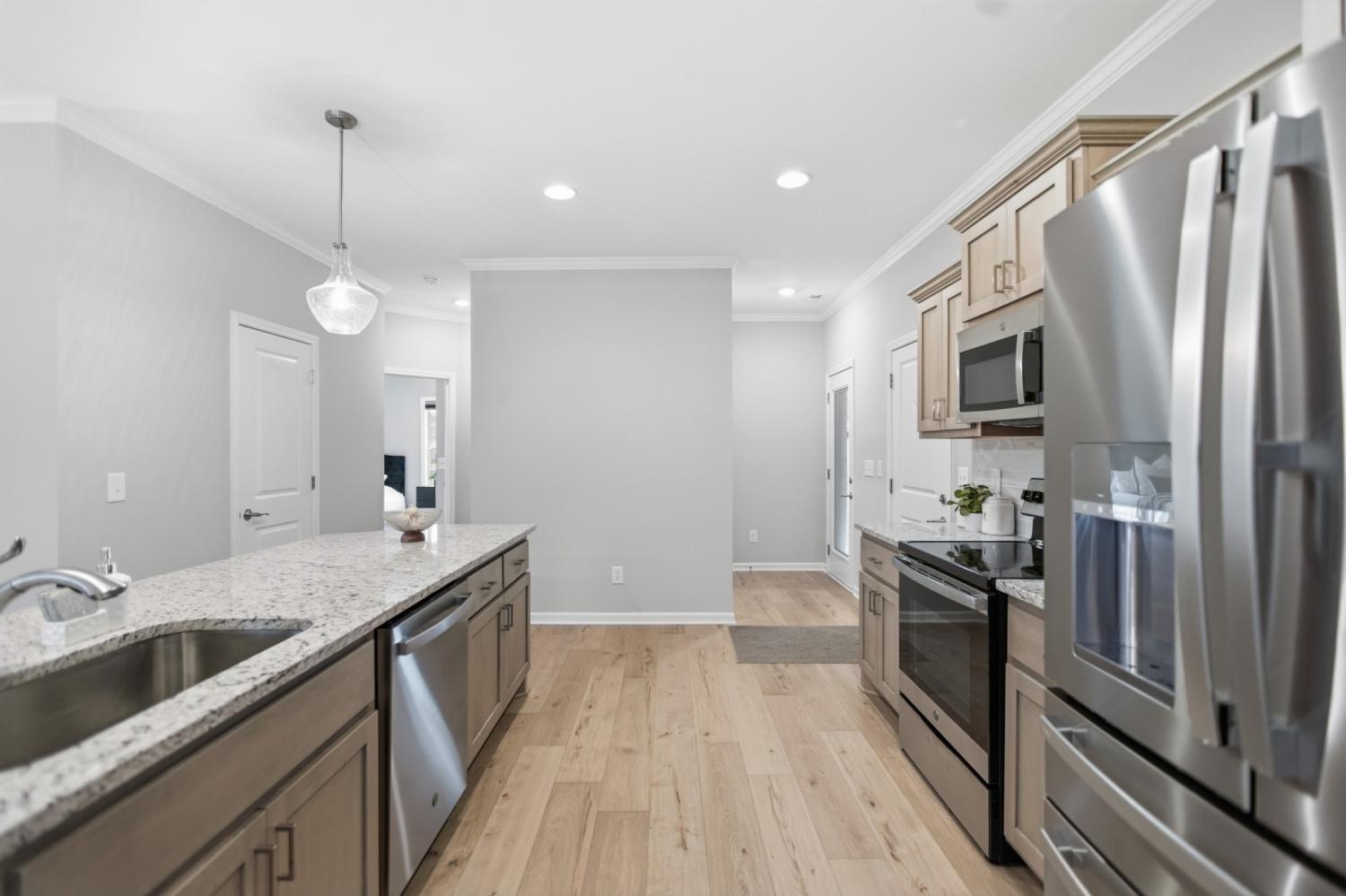 Welcome home to this exquisite 3-bedroom, 2.5-bath all-brick residence, where timeless craftsmanship meets elegant design. Step inside to discover a spacious open-concept layout that seamlessly connects the living room, kitchen, and dining areas—ideal for entertaining and everyday living. The gourmet kitchen boasts premium appliances (all of which remain), ample cabinetry, and a large island perfect for gatherings. The primary suite, conveniently located on the main level, features double vanities, a custom-tiled shower, and a relaxing soaker tub—your own private retreat. Throughout the home, you’ll find custom blinds, refined finishes, and thoughtful upgrades that elevate every detail. The oversized bonus room offers versatile space for a media room, home office, or playroom. Additional highlights include a Renewal by Andersen front door, an epoxy-coated garage floor, and a mini barn providing extra storage or workshop potential. Meticulously maintained and move-in ready, this home combines luxury, functionality, and comfort in every corner.