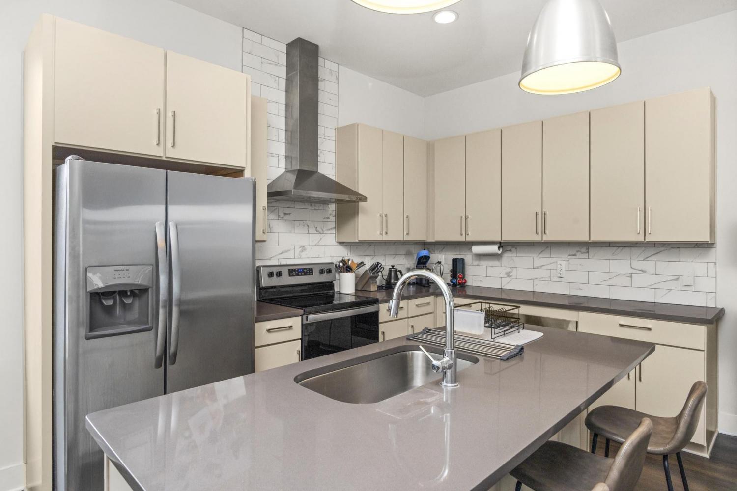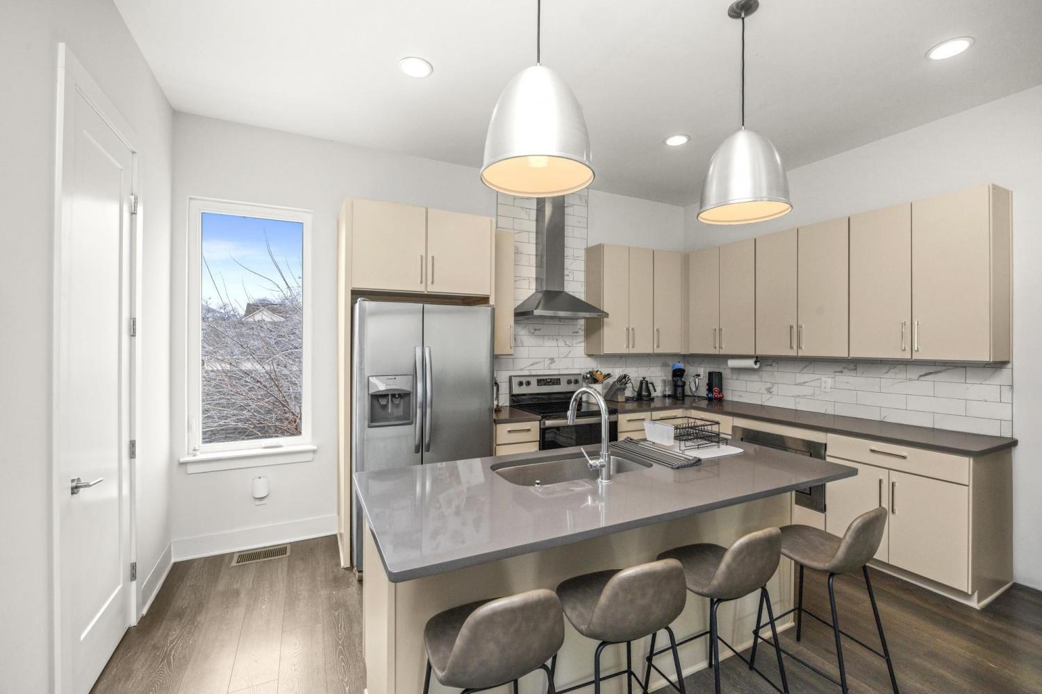 Experience the luxury and convenience of Douglas Market Lofts, where a coffee shop, boutique general store, and other commercial space is just feet from your doorstep. Located minutes to downtown Nashville and exciting new developments coming to the East Bank including the new Titans stadium, Oracle's World Headquarters and River North. The townhome offers an open concept second floor living, dining, and kitchen area filled with natural light, high ceilings, and modern fixtures and finishes. The kitchen has quartz countertops, custom cabinetry, stainless steel appliances, a large pantry with custom wood shelving. On the first and third floors, you'll find 3 bedrooms, each with en-suite bathrooms featuring tiled showers. There is a two car garage on the alleyway for convenient parking, which also includes a hardwired electric car charger! End your day on the full length rooftop deck, perfect for entertaining and enjoying beautiful sunset and downtown views.