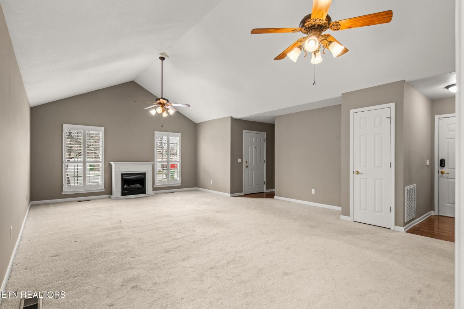 This spacious and immaculately maintained 2-bedroom, 2-full-bath condo is truly a rare find. Offering low-maintenance living in a highly convenient location and zoned for Maryville City Schools, this move-in-ready home combines quality upgrades with exceptional space. The entire condo has been recently professionally painted and renovated throughout. The inviting eat-in kitchen features new leathered granite countertops, updated sink and fixtures, modern lighting, all-wood cabinetry with soft-close drawers, pull-out shelving in both cabinets and pantry, and custom plantation shutters. All appliances convey. The open living area boasts cathedral ceilings and a cozy gas fireplace, creating a warm and welcoming atmosphere. French doors lead to a private covered porch, offering peaceful views and the relaxing sounds of birds and the nearby creek. The spacious primary suite includes a beautifully updated bath with floor-to-ceiling tiled shower, double vanity, and a custom walk-in closet. A generously sized secondary bedroom and full bath provide excellent flexibility for guests or home office needs. The two-car garage offers abundant storage and includes pull-down stairs to a fully floored attic for additional storage. Gutter guards were installed approximately one year ago. An exceptional and unexpected bonus is the over 1,500 sq ft unfinished basement, already equipped with HVAC, electrical outlets, plumbing, and double doors leading to a patio and wooded creekside backyard—perfect for future expansion, workshop space, or recreation. Additional highlights include professional landscaping, private outdoor areas, and exceptional upkeep throughout. Truly move-in ready with endless potential—this property is must-see., schedule your showing today!
