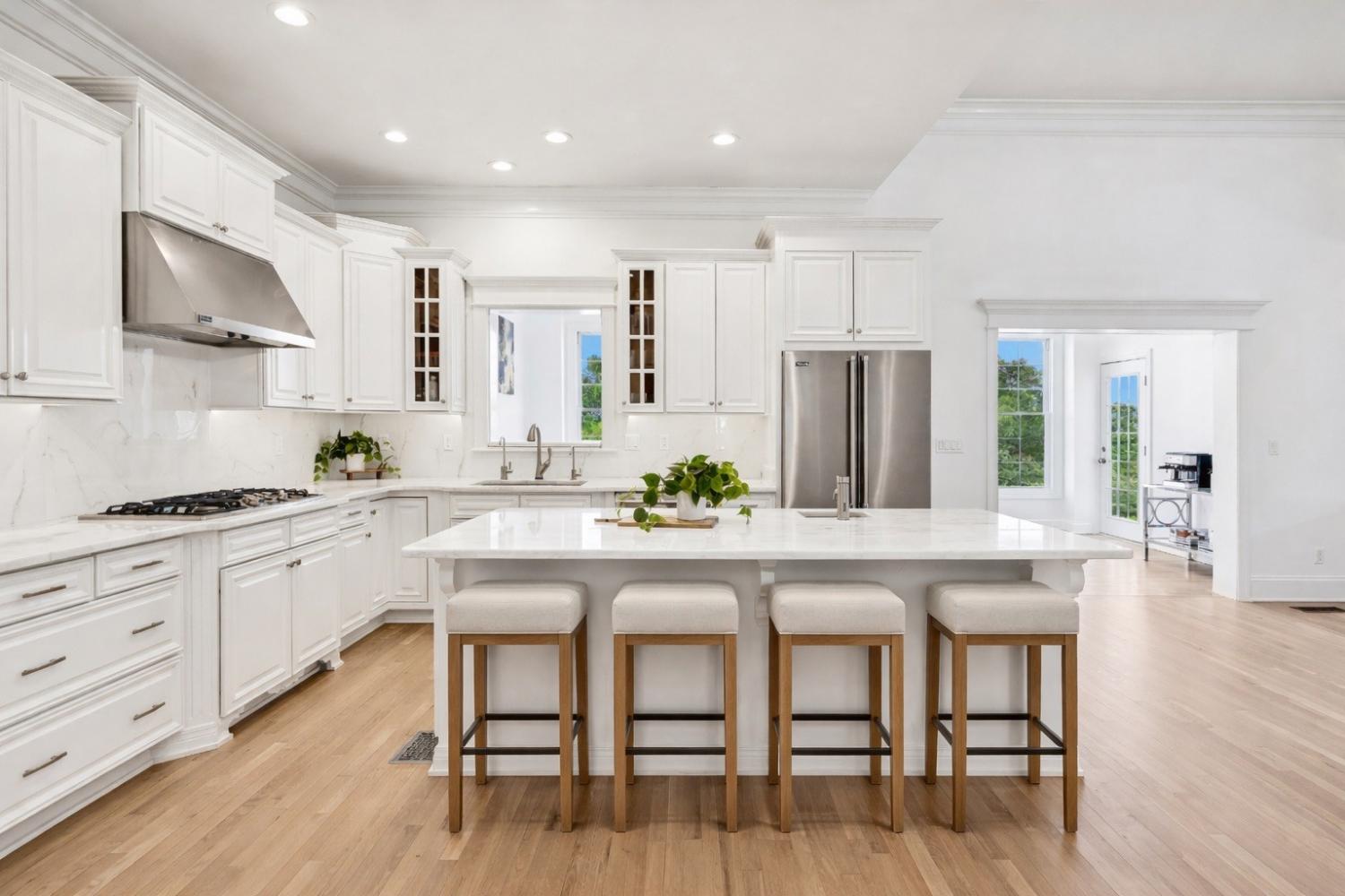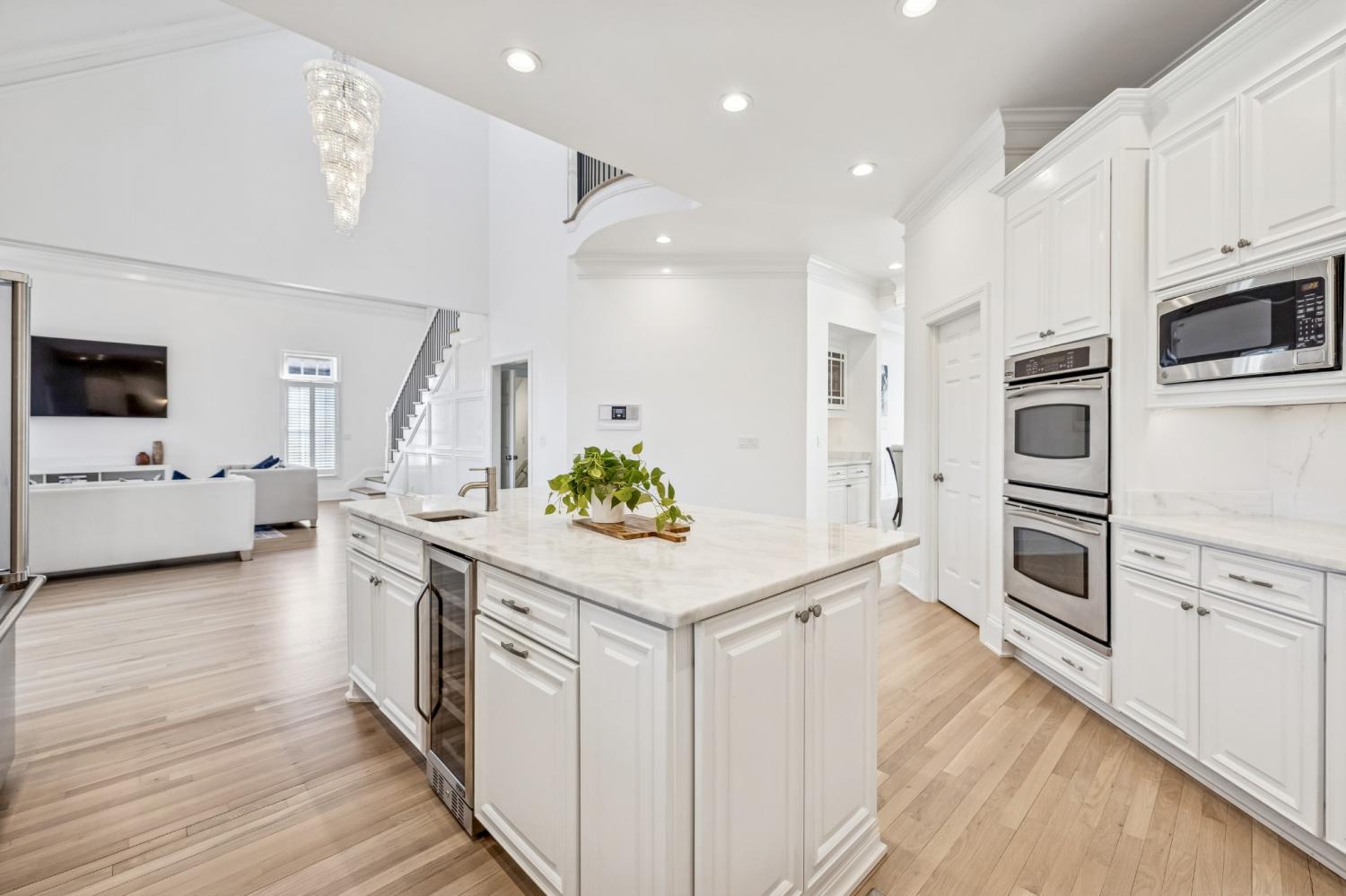 Welcome to 9572 Hampton Reserve - a Brentwood exclusive inside the gated Hampton Reserve community! This nearly 9,000 sq ft custom estate was fully redesigned and renovated in 2022. This stately three-level residence offers 7 bedrooms and 8 bathrooms, including 2 bedrooms on the main level, 3 upstairs, and 2 on the lower level with a private entrance—ideal for in-law quarters or a live-in au pair. Timeless elegance meets modern functionality with soaring 25-foot ceilings, new white oak hardwood floors, imported Italian and Brazilian marble, crystal chandeliers, and quartzite countertops throughout. The gourmet kitchen features Viking appliances, double ovens, a five-burner cooktop, Bosch dishwasher, wine cooler, custom cabinetry, and an eat-in area framed by six-foot windows overlooking a private, tree-lined backyard. Formal dining, living, and sitting rooms provide refined entertaining, while the second floor includes a bonus room and sophisticated office. Every bedroom is en-suite, and baths showcase floor-to-ceiling marble and soaking tubs. Designed for effortless entertaining, the fully finished walkout lower level offers a wine room with cigar humidor, bar with fireplace, multiple lounge areas, and seamless access to expansive outdoor living with a full outdoor kitchen and wet bar. Additional features include central vacuum, iSpring water system, instant hot water, smart home efficiency, and hypoallergenic, low-maintenance design. A circular driveway leads to a conditioned three-car garage. The backyard offers year-round landscaping, an invisible pet fence, and space for a pool. Located minutes from Brentwood, Franklin, Cool Springs, and Nashville, this one-of-a-kind estate delivers resort-style living in one of Brentwood’s most desirable gated communities. Pool renderings for marketing only. Residents enjoy proximity to I-65, top-rated schools, parks, dining, hospitals, and all while enjoying privacy, security, and convenience.