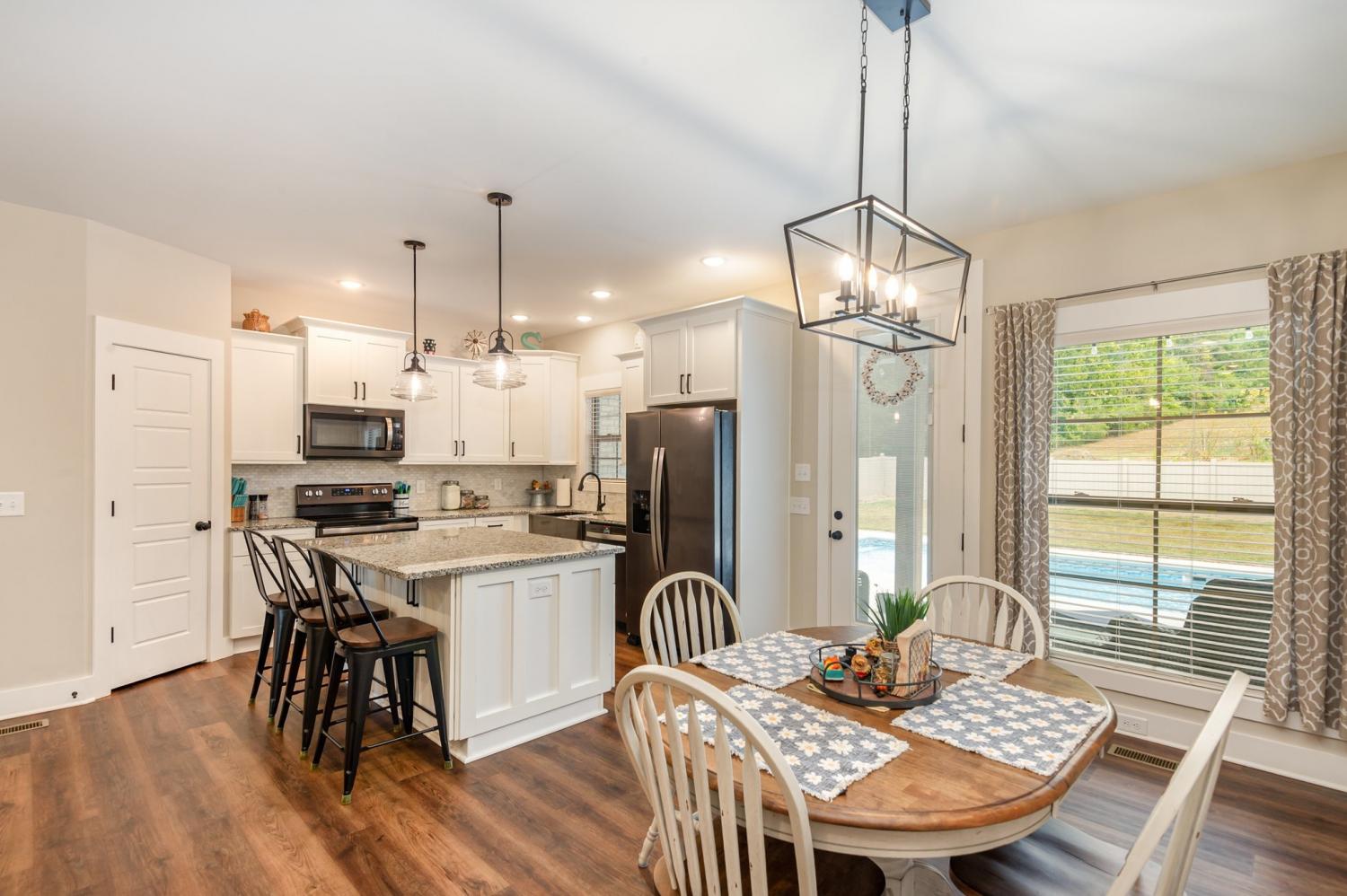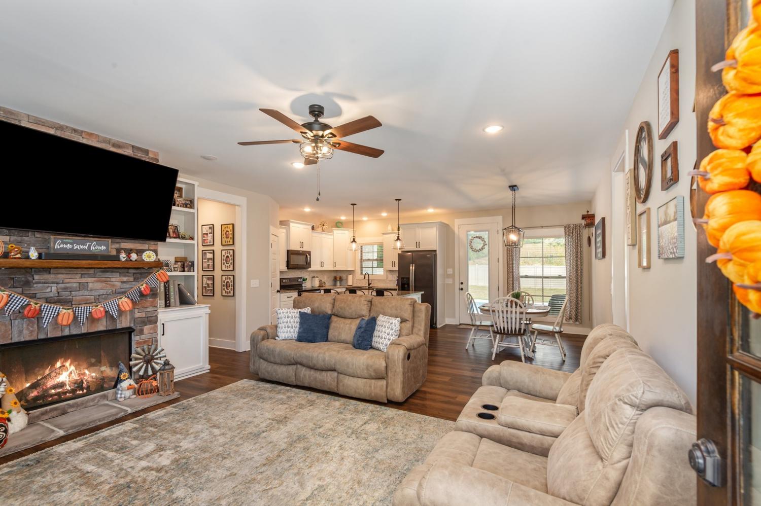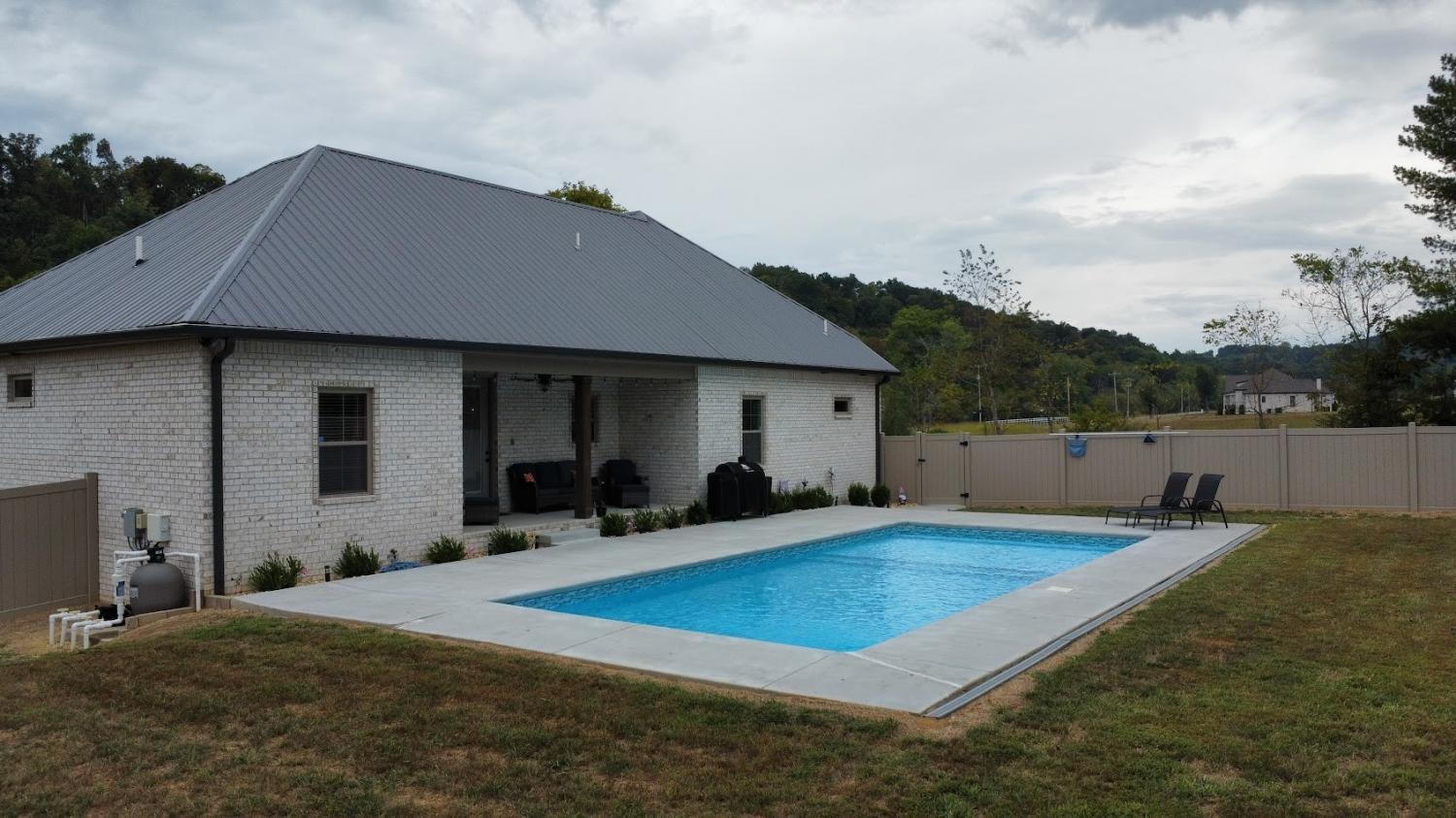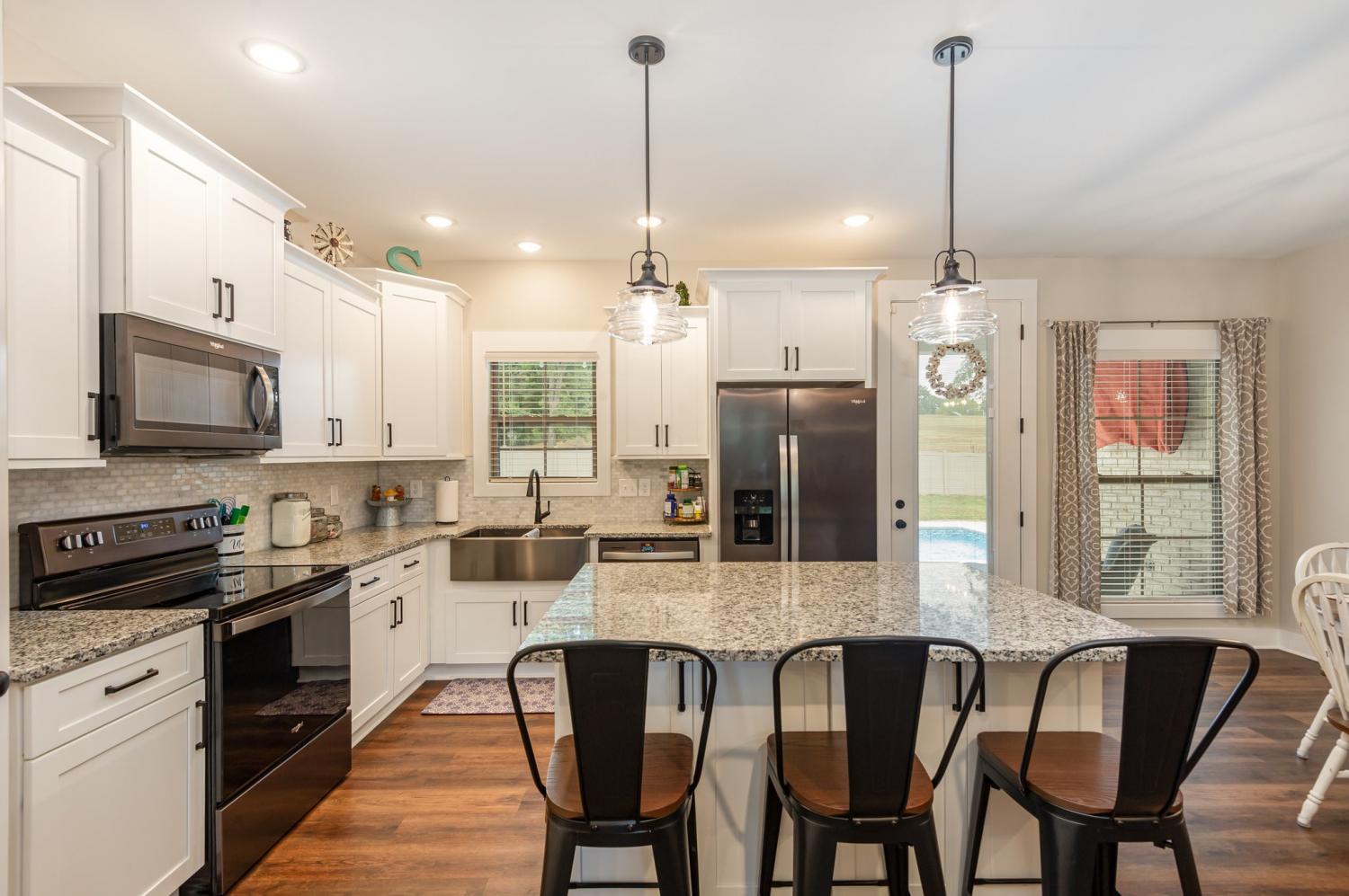 Beautiful 3 bedroom, 2 bath home only 3 years old, situated on a spacious 1-acre lot and featuring an open floor plan ideal for modern living and entertaining. The inviting living room offers a cozy gas log fireplace and flows seamlessly into the main living areas. A large rec room provides flexible space for a media room, playroom, or home gym. The private primary suite features a walk-in shower, double vanity, and an oversized walk-in closet. Additional highlights include a gas tankless water heater, dual fuel heat, built-in generator connection in emergencies and a conditioned crawlspace for added efficiency and comfort. Enjoy outdoor living with a covered patio overlooking the in-ground pool, perfect for summer gatherings, along with a covered front porch. Property also includes a 2-car garage, sidewalk access, and beautifully landscaped grounds. Conveniently located less than 7 miles to I-65, offering easy access for commuters while maintaining a peaceful setting.