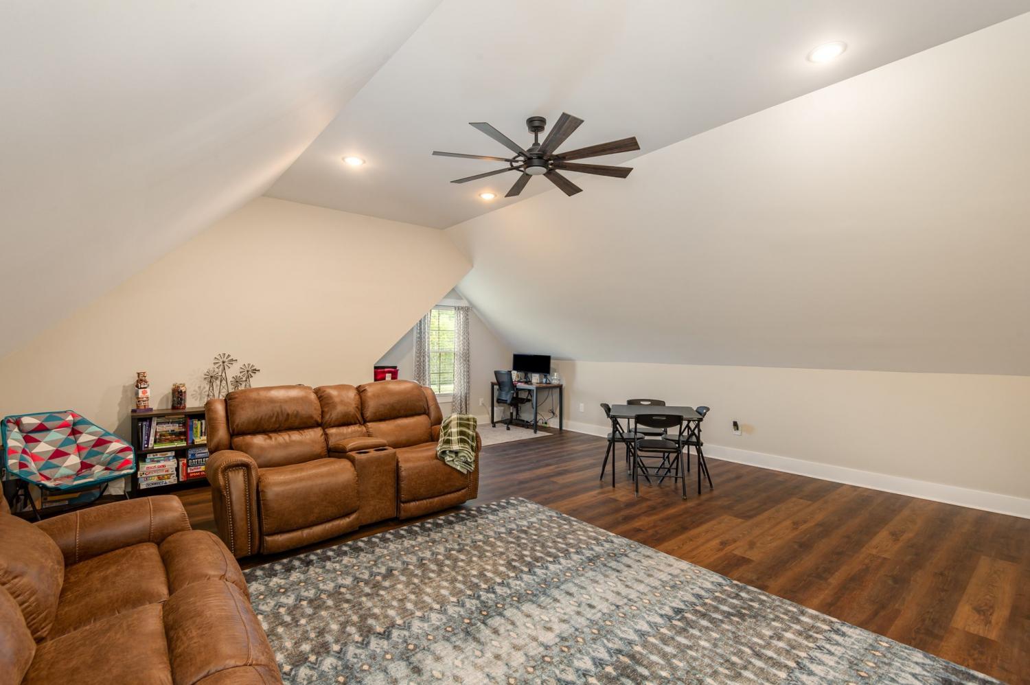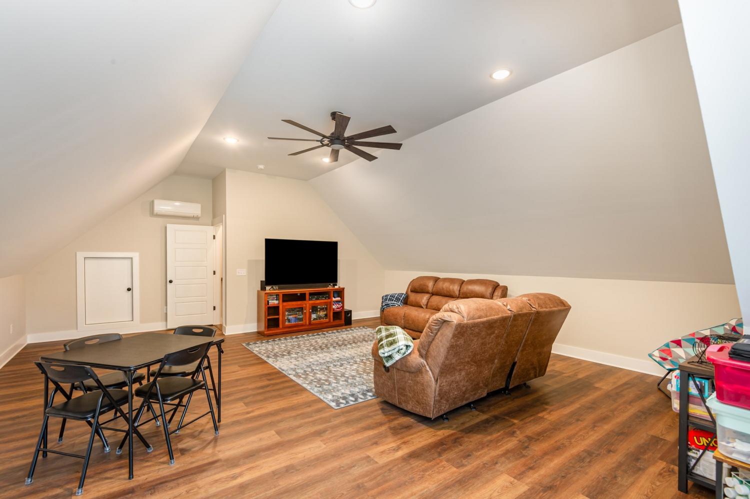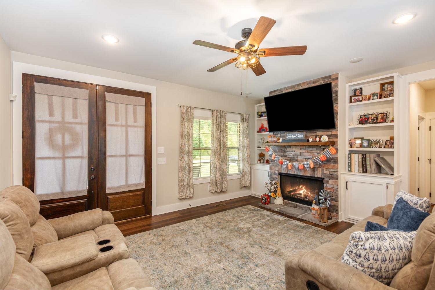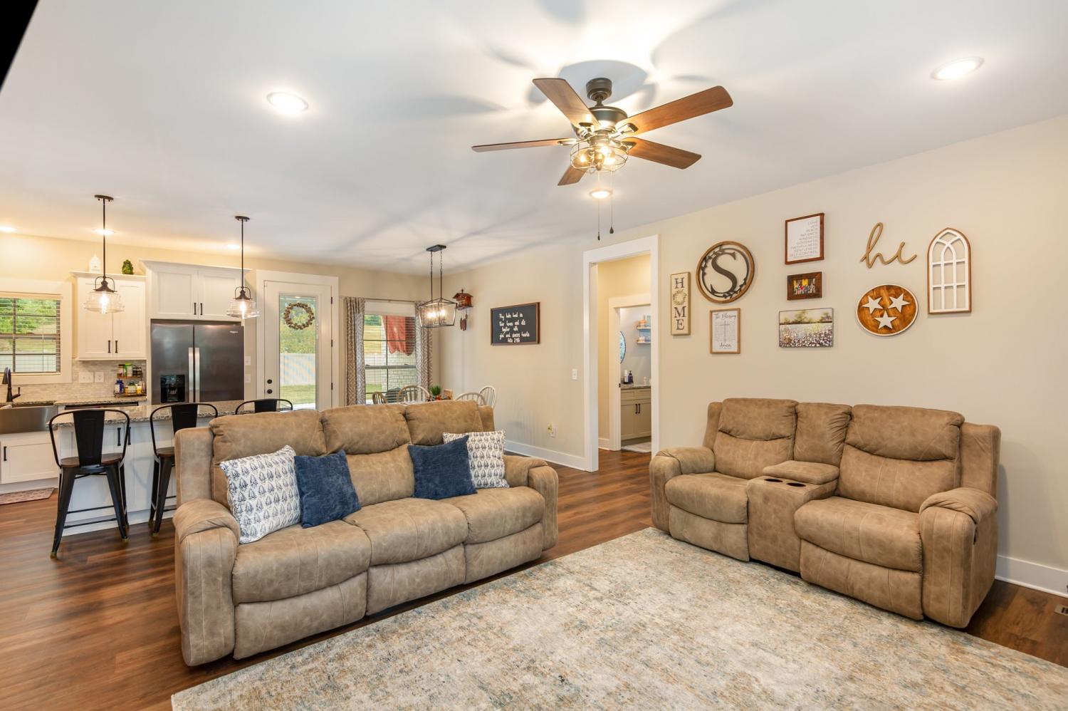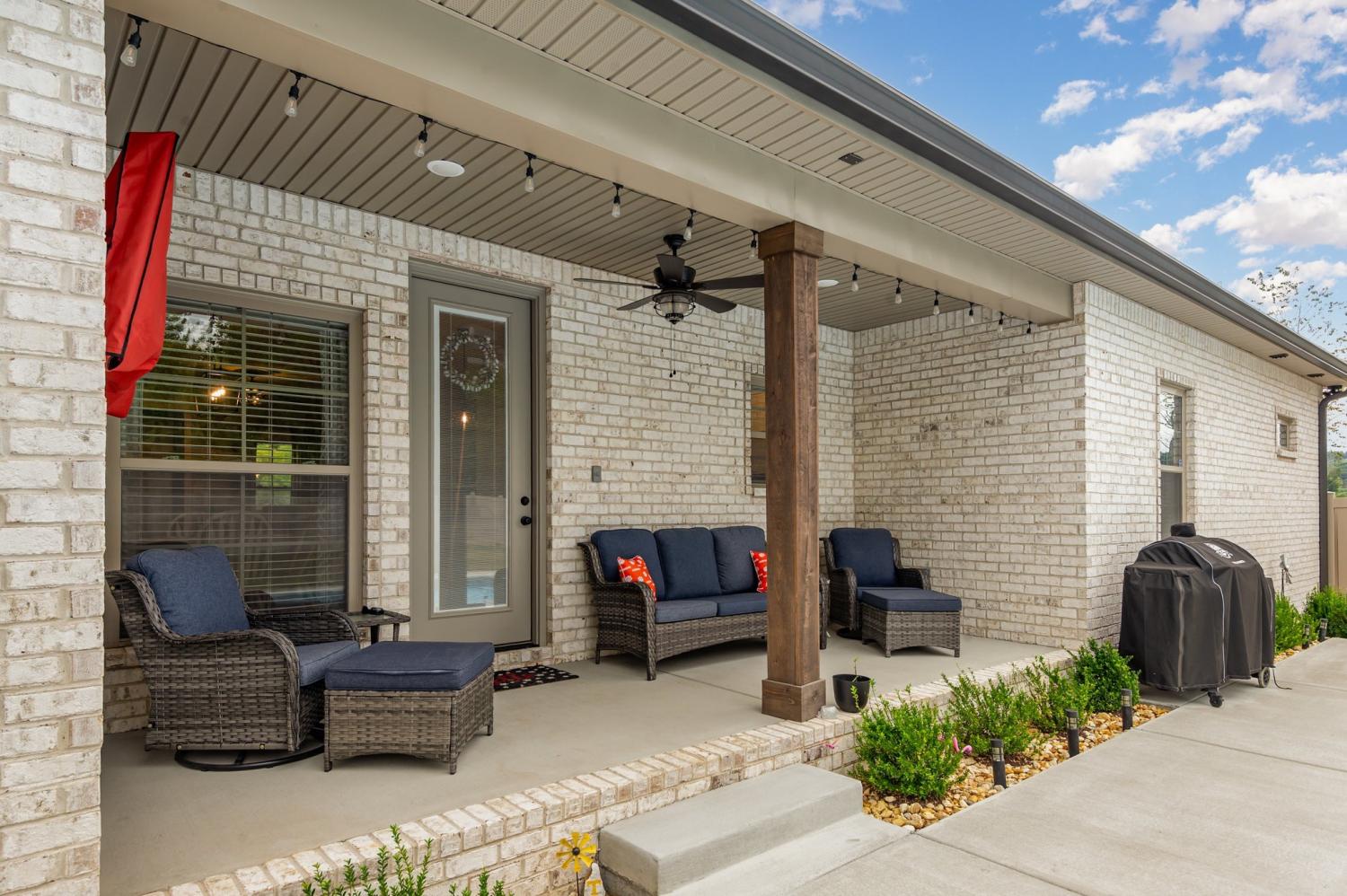 Beautiful 3 bedroom, 2 bath home only 3 years old, situated on a spacious 1-acre lot and featuring an open floor plan ideal for modern living and entertaining. The inviting living room offers a cozy gas log fireplace and flows seamlessly into the main living areas. A large rec room provides flexible space for a media room, playroom, or home gym. The private primary suite features a walk-in shower, double vanity, and an oversized walk-in closet. Additional highlights include a gas tankless water heater, dual fuel heat, built-in generator connection in emergencies and a conditioned crawlspace for added efficiency and comfort. Enjoy outdoor living with a covered patio overlooking the in-ground pool, perfect for summer gatherings, along with a covered front porch. Property also includes a 2-car garage, sidewalk access, and beautifully landscaped grounds. Conveniently located less than 7 miles to I-65, offering easy access for commuters while maintaining a peaceful setting.