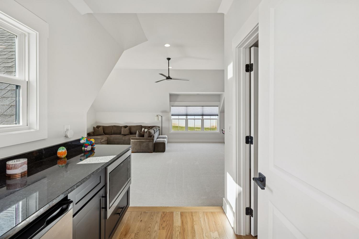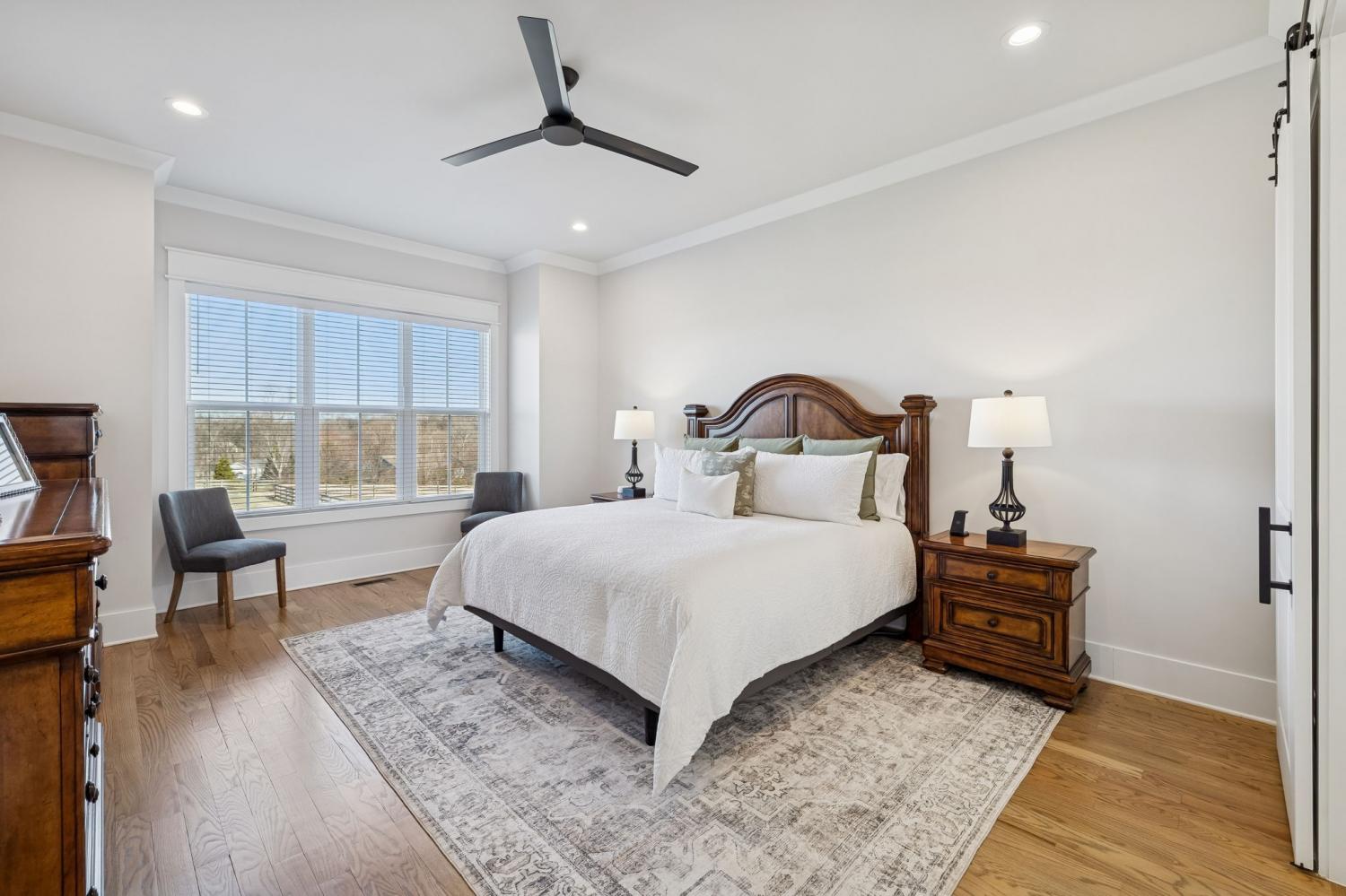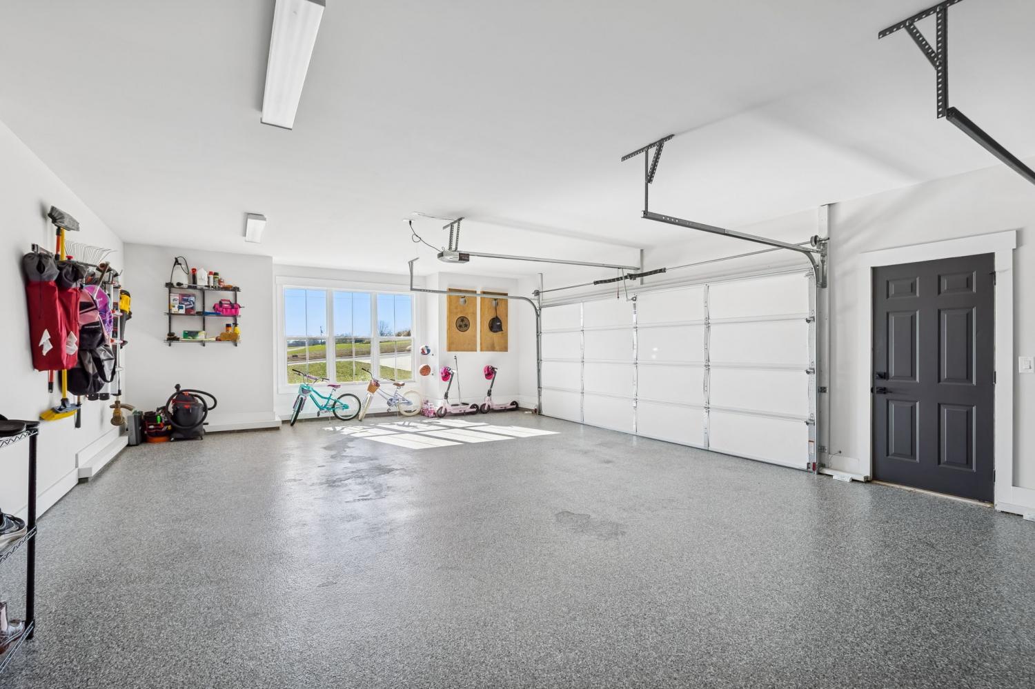 This luxury home offers a level of quality, space, and intentional design that goes beyond a typical new build. Located in a boutique neighborhood with minimal traffic and wide open surroundings, it provides peaceful living without sacrificing convenience. The home features expansive views with beautiful sunrises and sunsets, along with abundant natural light from large windows overlooking the surrounding hills. The layout is thoughtfully designed for functionality, including a massive, separate playroom ideal for kids or flexible living space. All bedrooms are en-suites. The primary and a secondary bedroom are downstairs, with two additional bedrooms upstairs. A large walk-in attic offers exceptional storage or future build-out potential, while the lengthy, wide driveway allows for ample parking and outdoor play. The epoxy-finished 3 car garage adds a polished, durable touch. Outdoor living is enhanced on a larger than normal lot, by both a covered patio that remains shaded for much of the day during warmer months, and an uncovered patio for more room for entertaining. Additional features include an encapsulated walk-in crawl space and a storm shelter, reinforcing the home’s quality and practicality. All of this is just minutes from everyday conveniences like the new Publix, restaurants, movie theater, Fischer Park, and quick access to I-65. Designed intentionally and built for everyday living, this home delivers luxury, privacy, and functionality in one exceptional package.
