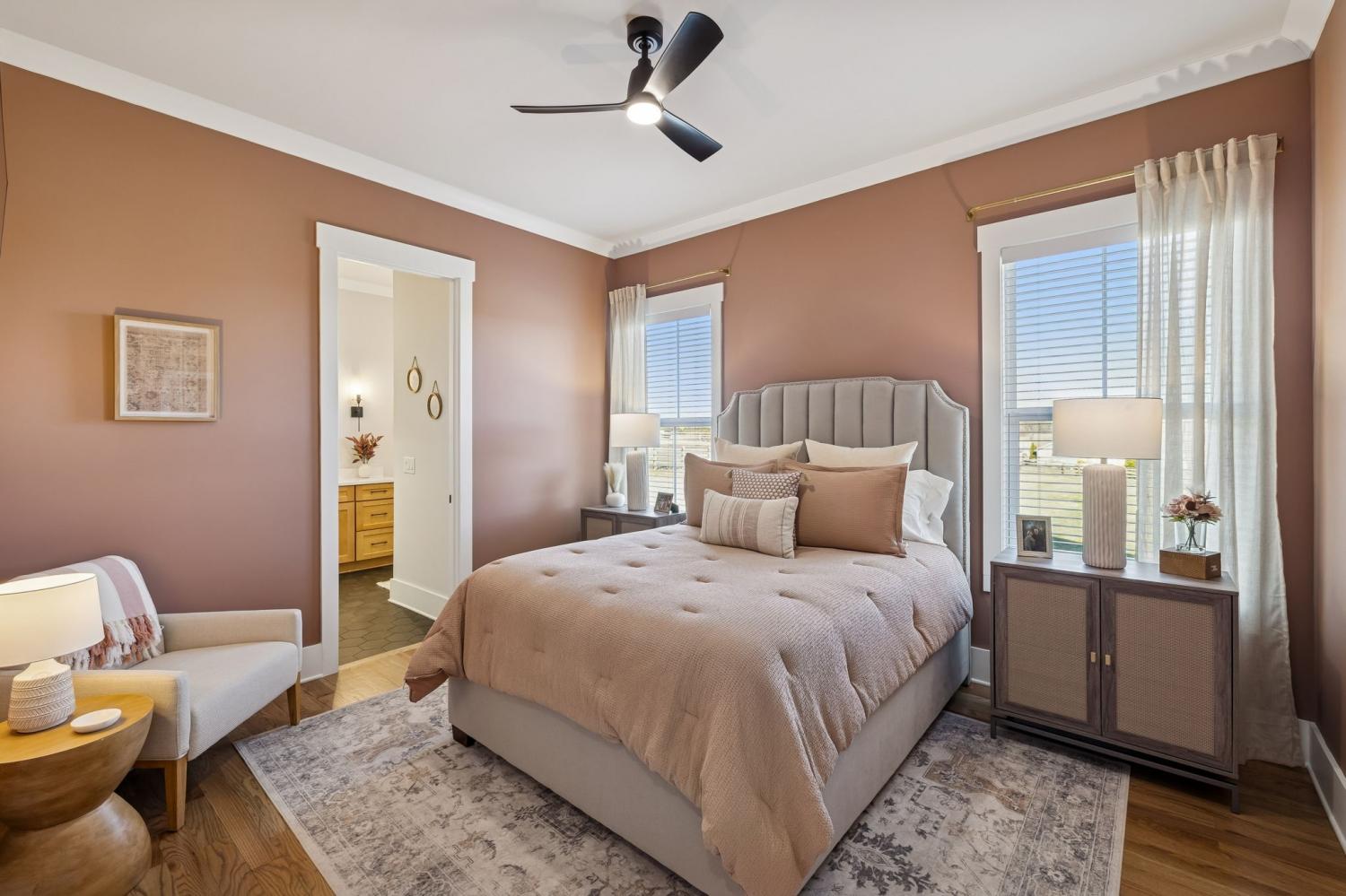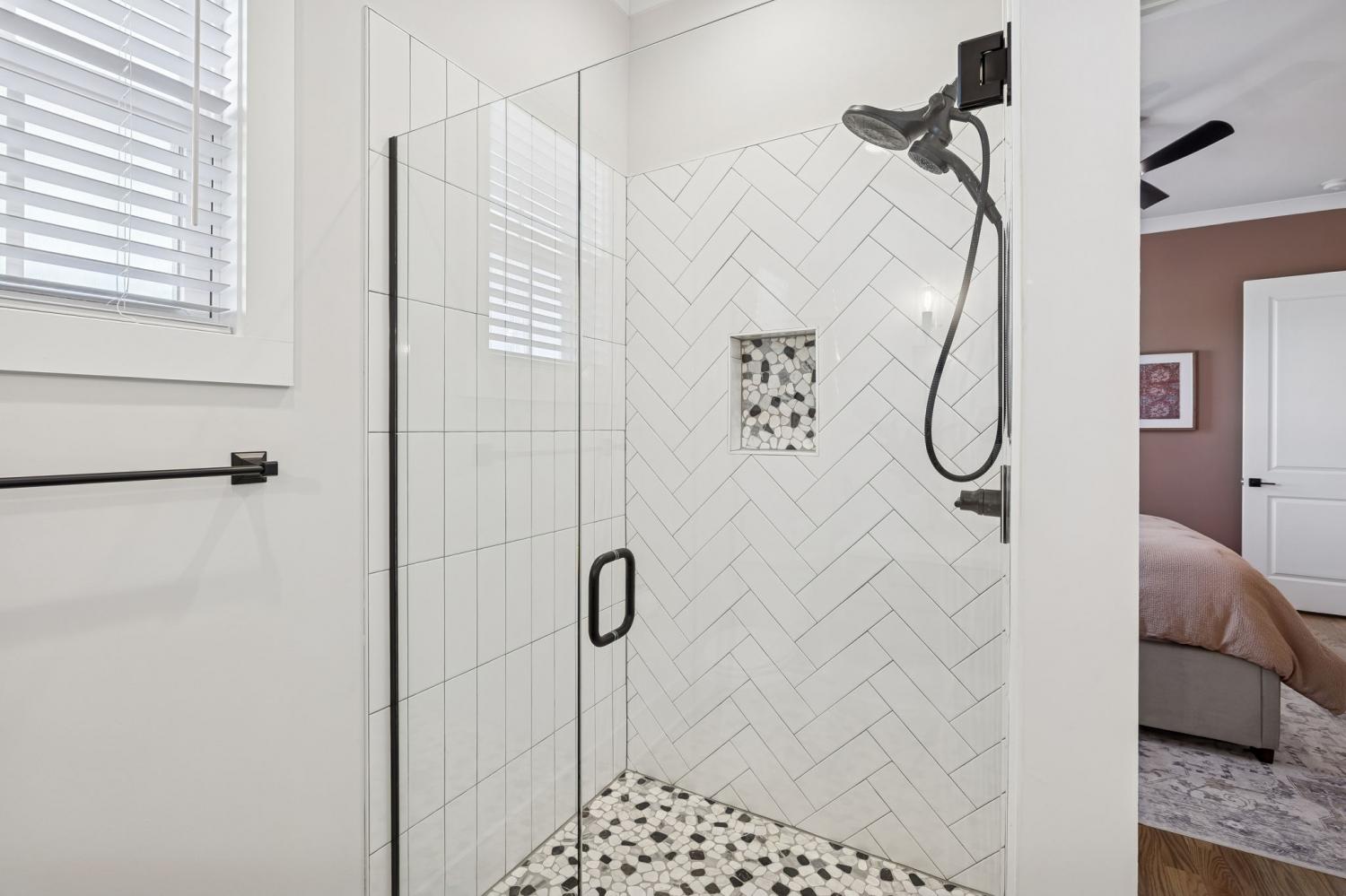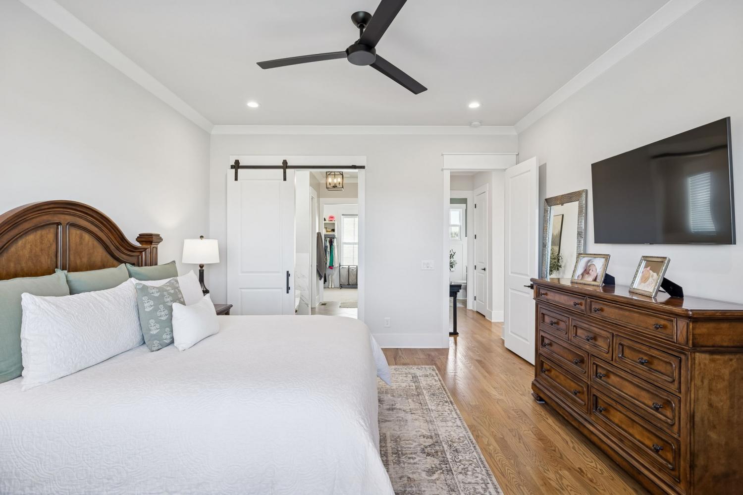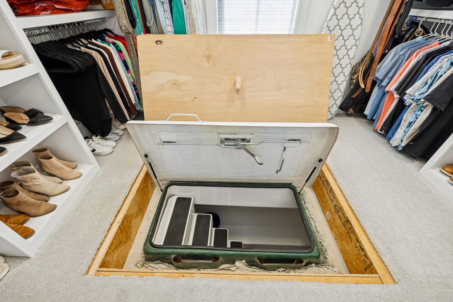 This luxury home offers a level of quality, space, and intentional design that goes beyond a typical new build. Located in a boutique neighborhood with minimal traffic and wide open surroundings, it provides peaceful living without sacrificing convenience. The home features expansive views with beautiful sunrises and sunsets, along with abundant natural light from large windows overlooking the surrounding hills. The layout is thoughtfully designed for functionality, including a massive, separate playroom ideal for kids or flexible living space. All bedrooms are en-suites. The primary and a secondary bedroom are downstairs, with two additional bedrooms upstairs. A large walk-in attic offers exceptional storage or future build-out potential, while the lengthy, wide driveway allows for ample parking and outdoor play. The epoxy-finished 3 car garage adds a polished, durable touch. Outdoor living is enhanced on a larger than normal lot, by both a covered patio that remains shaded for much of the day during warmer months, and an uncovered patio for more room for entertaining. Additional features include an encapsulated walk-in crawl space and a storm shelter, reinforcing the home’s quality and practicality. All of this is just minutes from everyday conveniences like the new Publix, restaurants, movie theater, Fischer Park, and quick access to I-65. Designed intentionally and built for everyday living, this home delivers luxury, privacy, and functionality in one exceptional package.