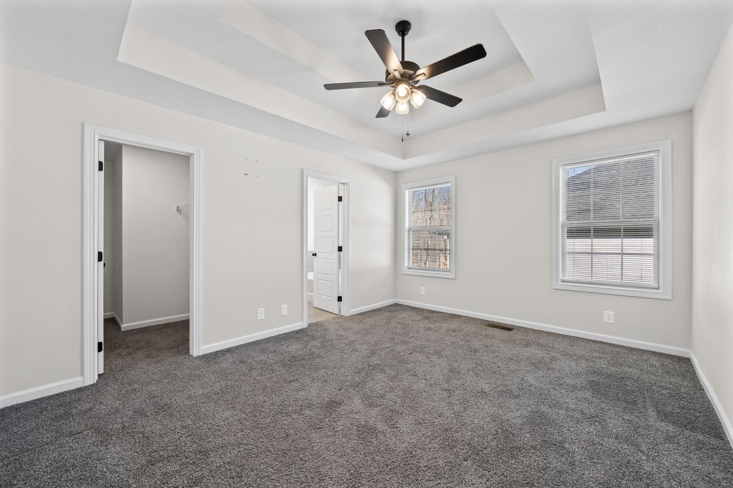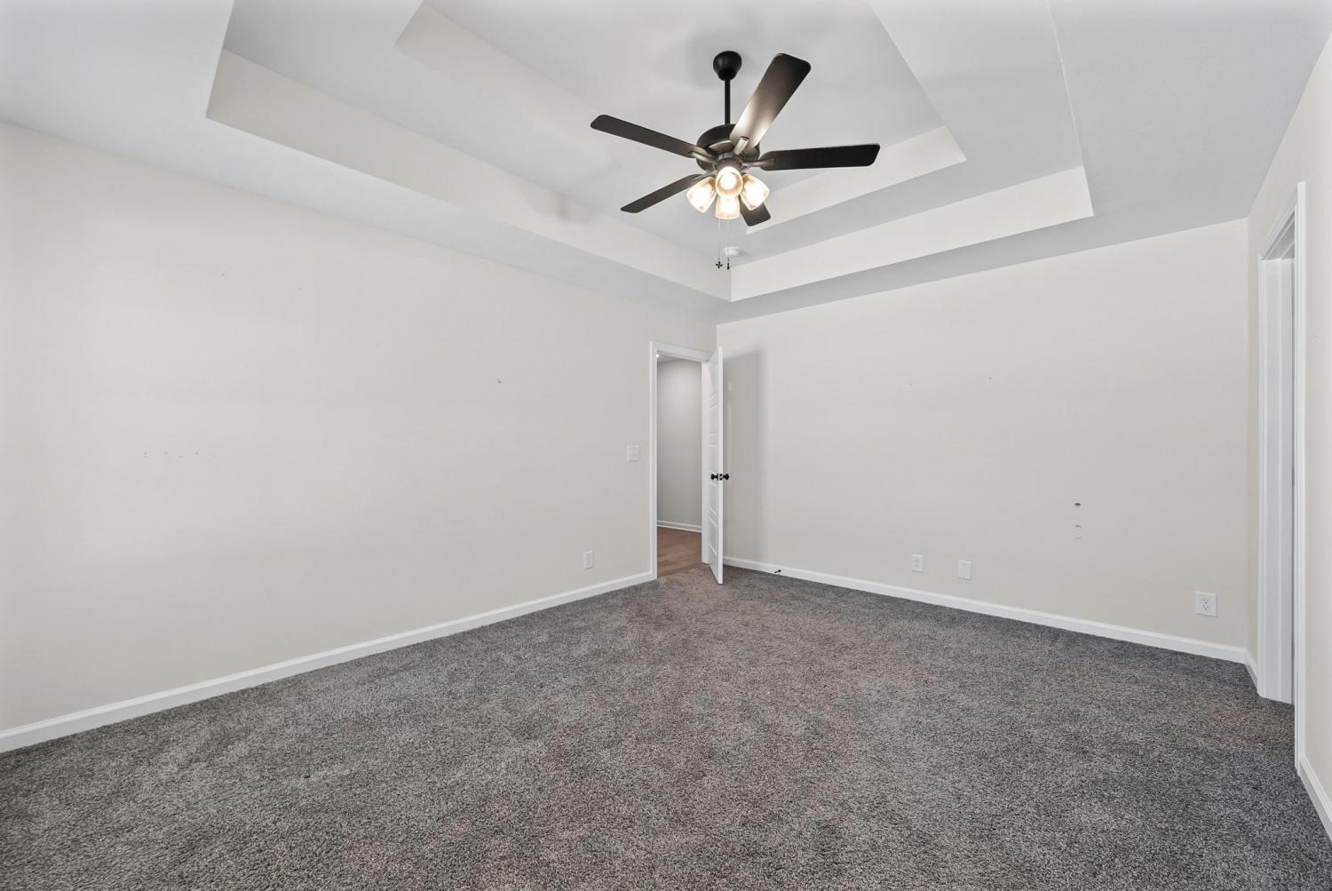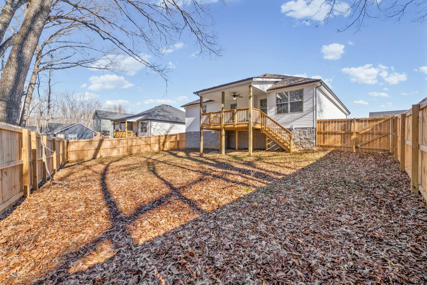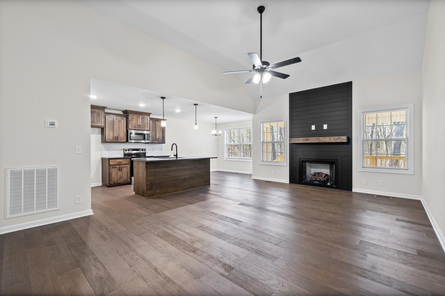 Like new and move in ready, this home has been well cared for inside and out. The manicured lawn and clean curb appeal set the tone as you arrive. Step inside to an open concept layout with high ceilings and ceiling fans throughout, creating a bright and easy flow from room to room. The living area centers around a black shiplap fireplace that adds character without feeling overdone and works well for both everyday living and hosting friends. The kitchen opens to the main living space, making it simple to stay connected while cooking or entertaining. The primary bedroom is located on the main level and features a tray ceiling and plenty of space for furniture. The primary bathroom includes double vanities, a separate tub and shower, and a layout that feels functional and well planned. Outside, enjoy a covered deck that looks out over a privacy fenced back yard with no back yard neighbors. Whether you are relaxing after work or hosting a weekend get together, the outdoor space offers privacy and room to enjoy the setting. This home checks the boxes with its layout, condition, and outdoor space, making it a great option for anyone looking for a home that still feels new without the wait.