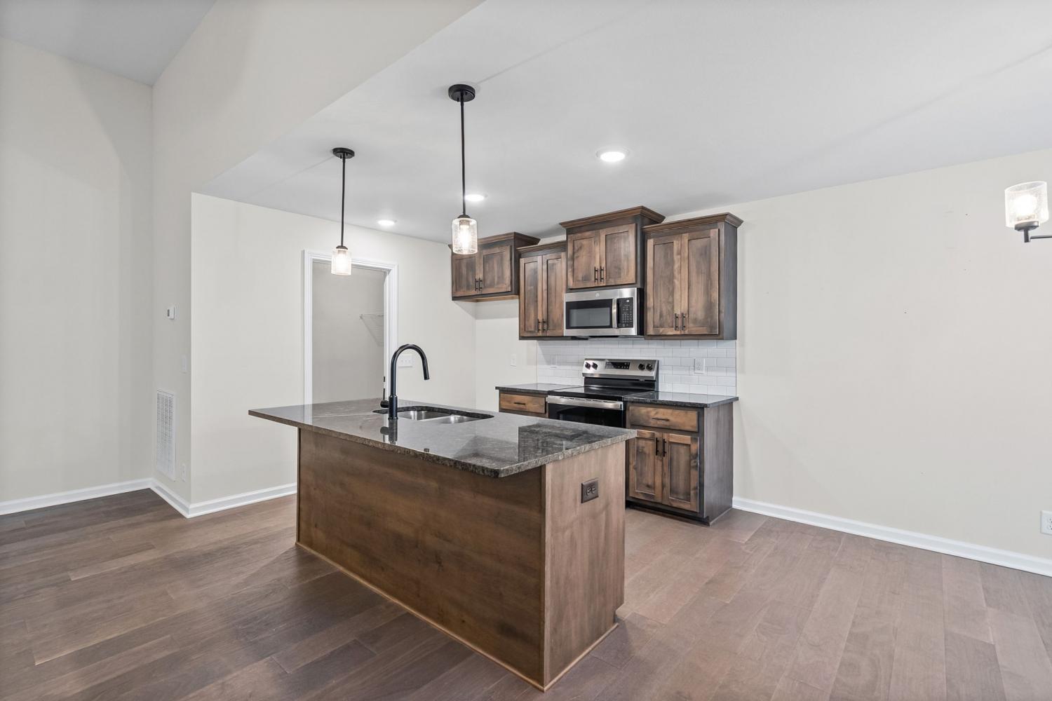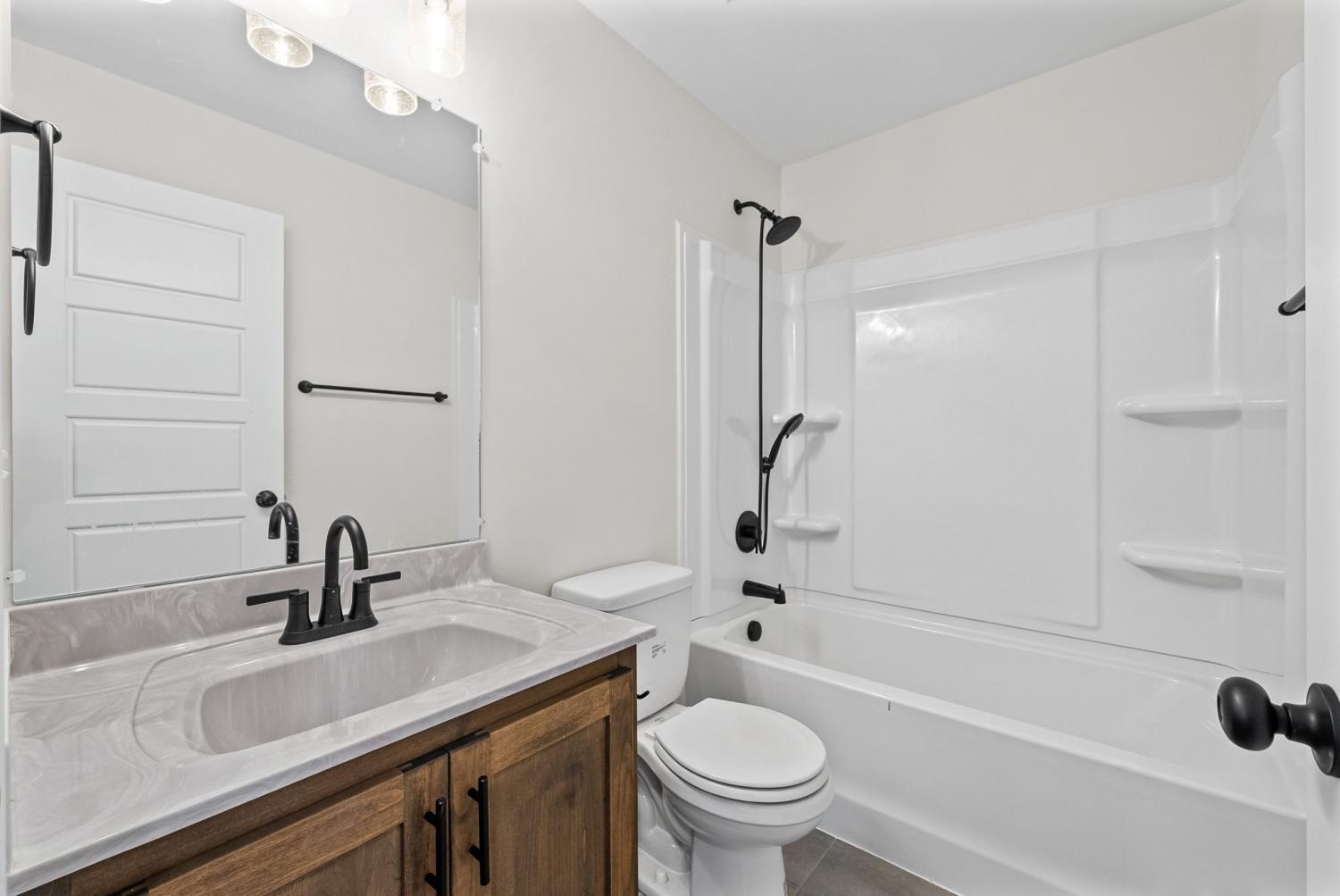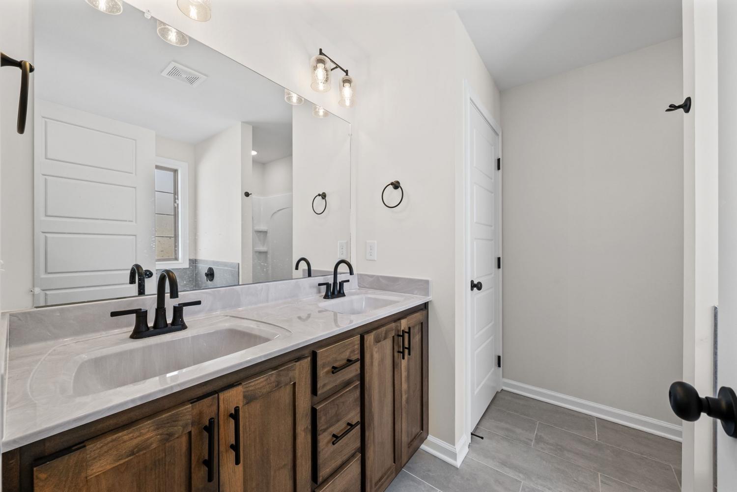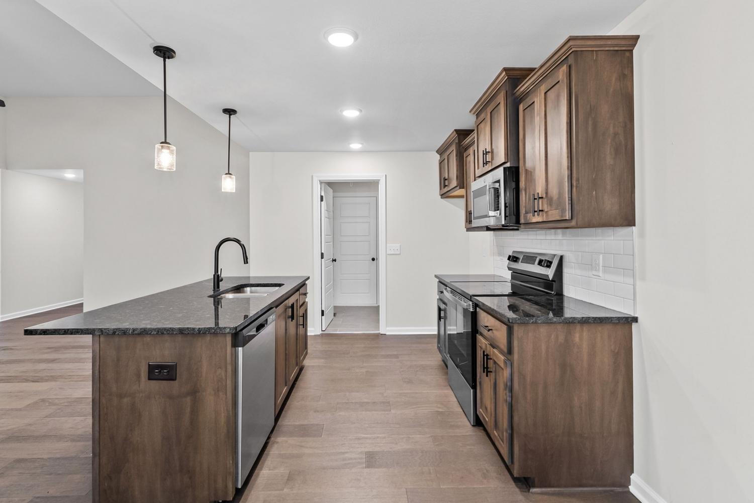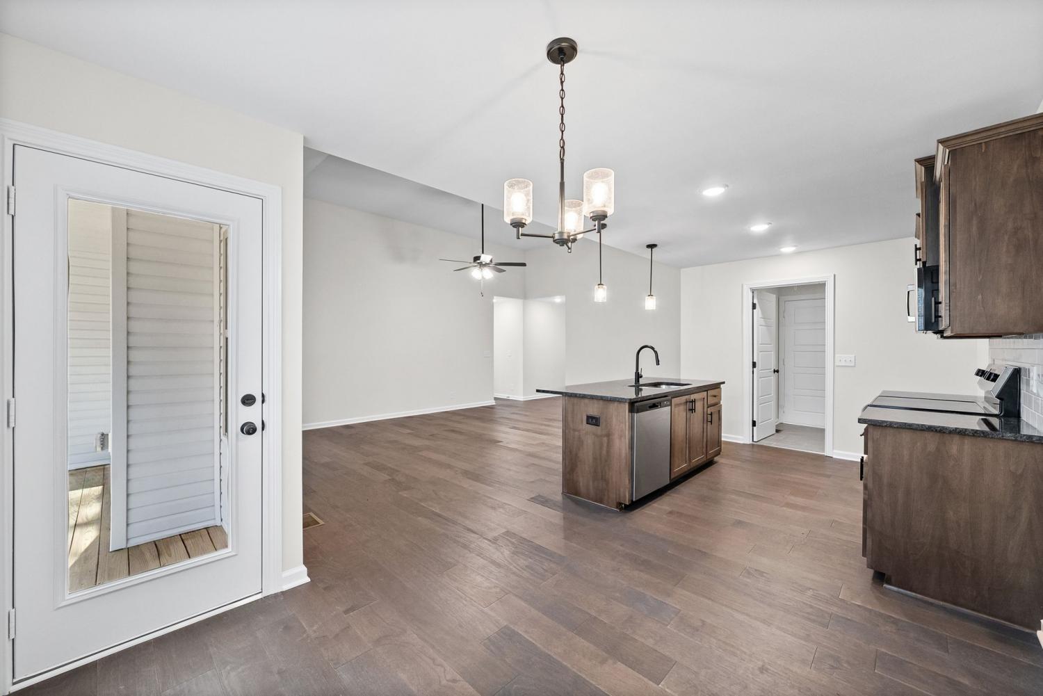 Like new and move in ready, this home has been well cared for inside and out. The manicured lawn and clean curb appeal set the tone as you arrive. Step inside to an open concept layout with high ceilings and ceiling fans throughout, creating a bright and easy flow from room to room. The living area centers around a black shiplap fireplace that adds character without feeling overdone and works well for both everyday living and hosting friends. The kitchen opens to the main living space, making it simple to stay connected while cooking or entertaining. The primary bedroom is located on the main level and features a tray ceiling and plenty of space for furniture. The primary bathroom includes double vanities, a separate tub and shower, and a layout that feels functional and well planned. Outside, enjoy a covered deck that looks out over a privacy fenced back yard with no back yard neighbors. Whether you are relaxing after work or hosting a weekend get together, the outdoor space offers privacy and room to enjoy the setting. This home checks the boxes with its layout, condition, and outdoor space, making it a great option for anyone looking for a home that still feels new without the wait.