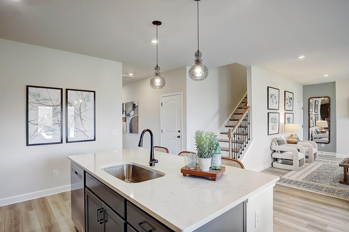 Step into this Woodruff plan at Canebrake at Hickory Hills in Old Hickory, TN—designed to grow with you. Whether you're hosting friends or just managing a busy household, the open-concept main level delivers the space and flow you need. The extended kitchen counters and white cabinets add both style and function, while the center island offers a natural hub for meals, homework, or casual conversation. A downstairs bedroom and full bath offer the perfect setup for guests or multi-generational living. Upstairs, the iron spindle staircase leads to a generous loft—ideal for movie nights, gaming, or simply spreading out. Two secondary bedrooms each include walk-in closets, while the large owner’s suite offers a private escape with its own walk-in closet and spacious bath.
