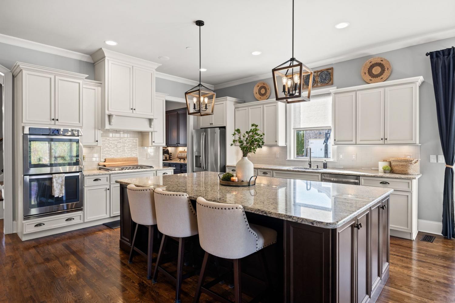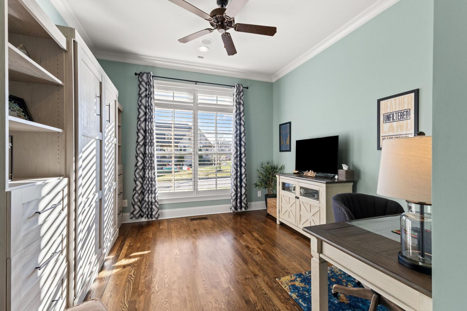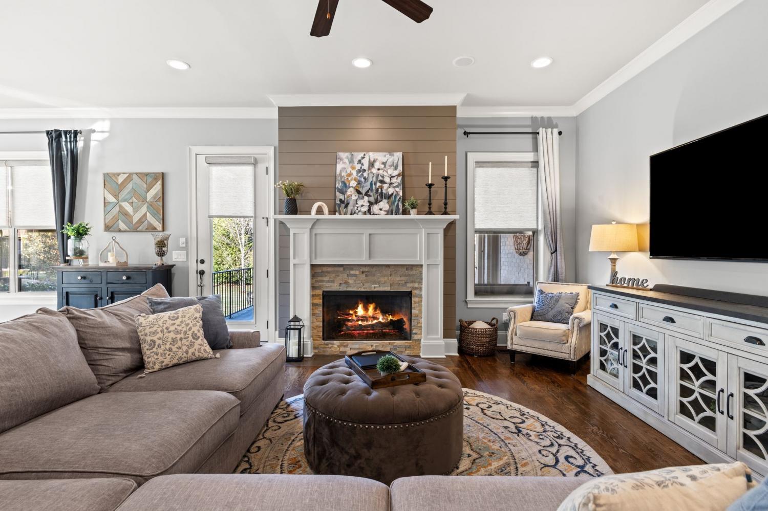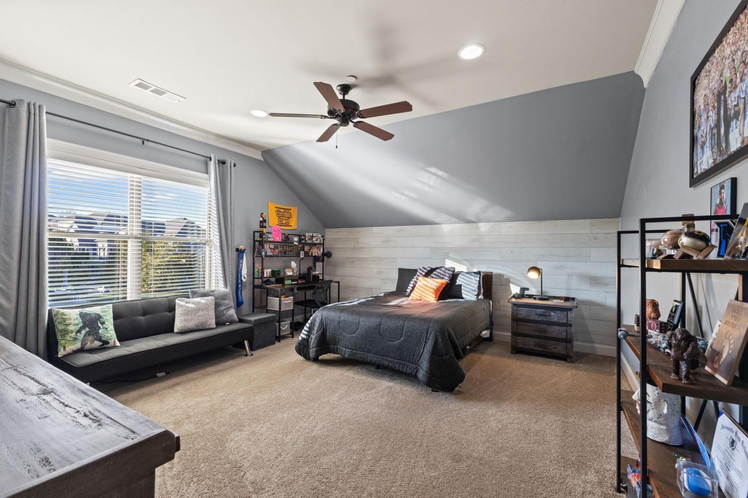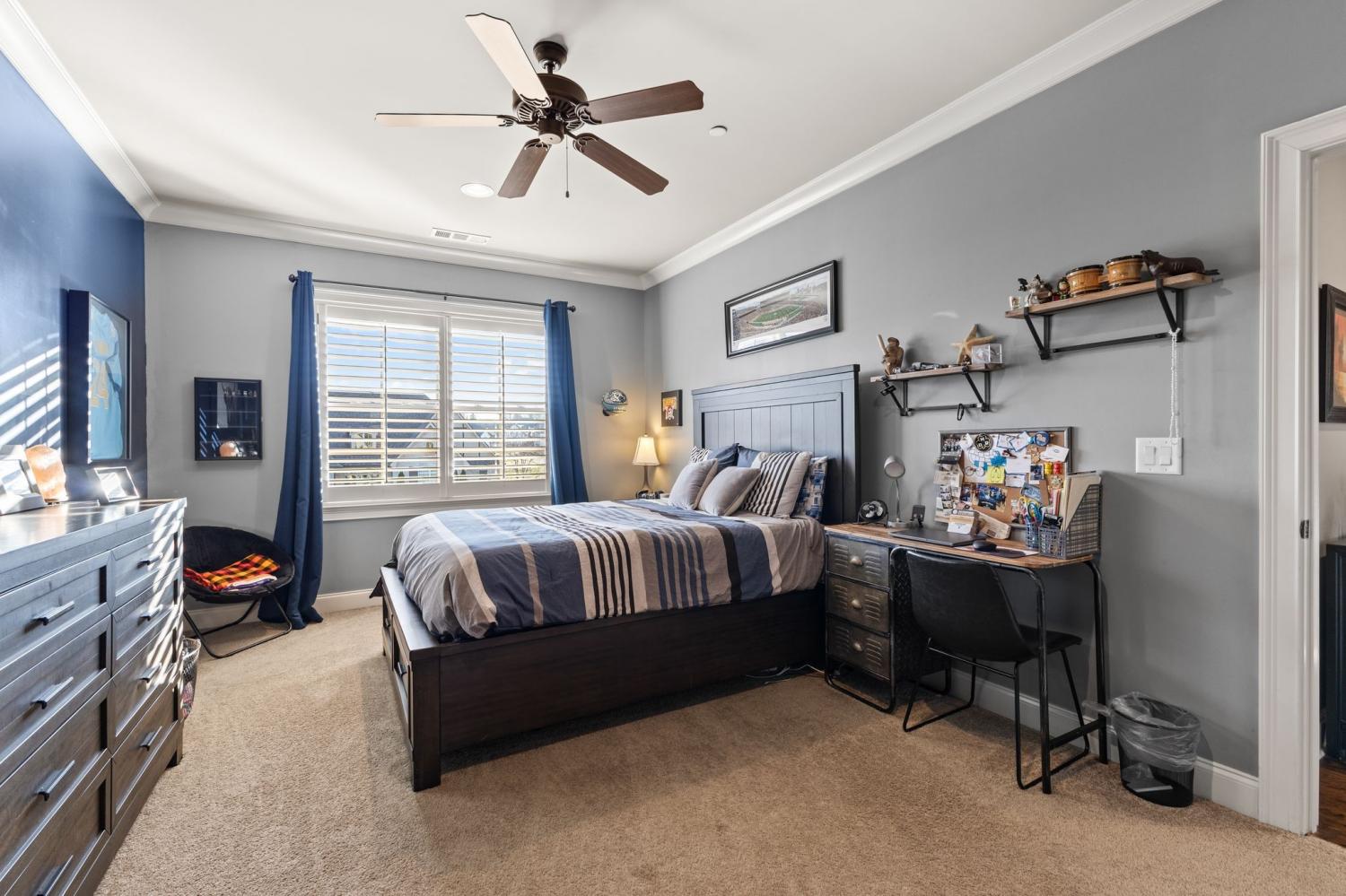 2625 Benington Place is a stunning luxury home, built by Grove Park construction, located in the beautiful and highly sought-after Benington subdivision. This home is thoughtfully designed for comfortable living and effortless entertaining. The open floor plan is filled with natural light from an abundance of windows, including a charming window over the kitchen sink. The gourmet kitchen features a large island that is perfect for gatherings and a convenient butler’s pantry for added storage and prep space. Move-in ready with upscale finishes throughout. The home also offers a tankless water heater and walk-in attic storage. Dedicated flex space off the rec room is ideal for creating an extra hangout space. Whether you are looking to use that space for a dedicated home gym, movie room, playroom, or other, the possibilities are endless. In this flex space, the seller is using it as a home gym and is leaving the projector TV screen on wall & projector. Enjoy outdoor living with a covered back porch overlooking a flat backyard, complete with a paver patio, outdoor fireplace, grill, and beverage cooler—ideal for making memories with family and friends. The secondary bedroom downstairs offers a built in Murphy bed that will stay with the home. Seller doubles use of this room for a home office.