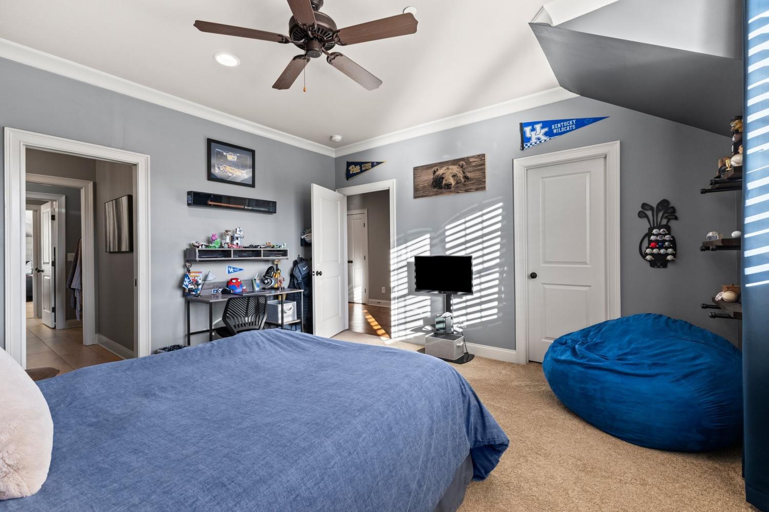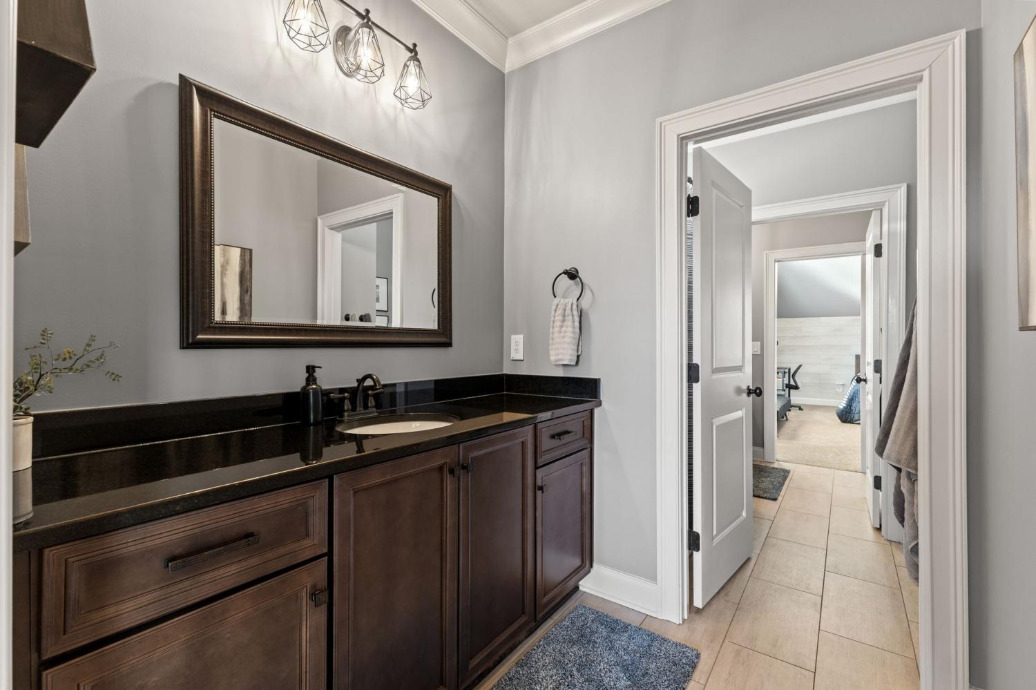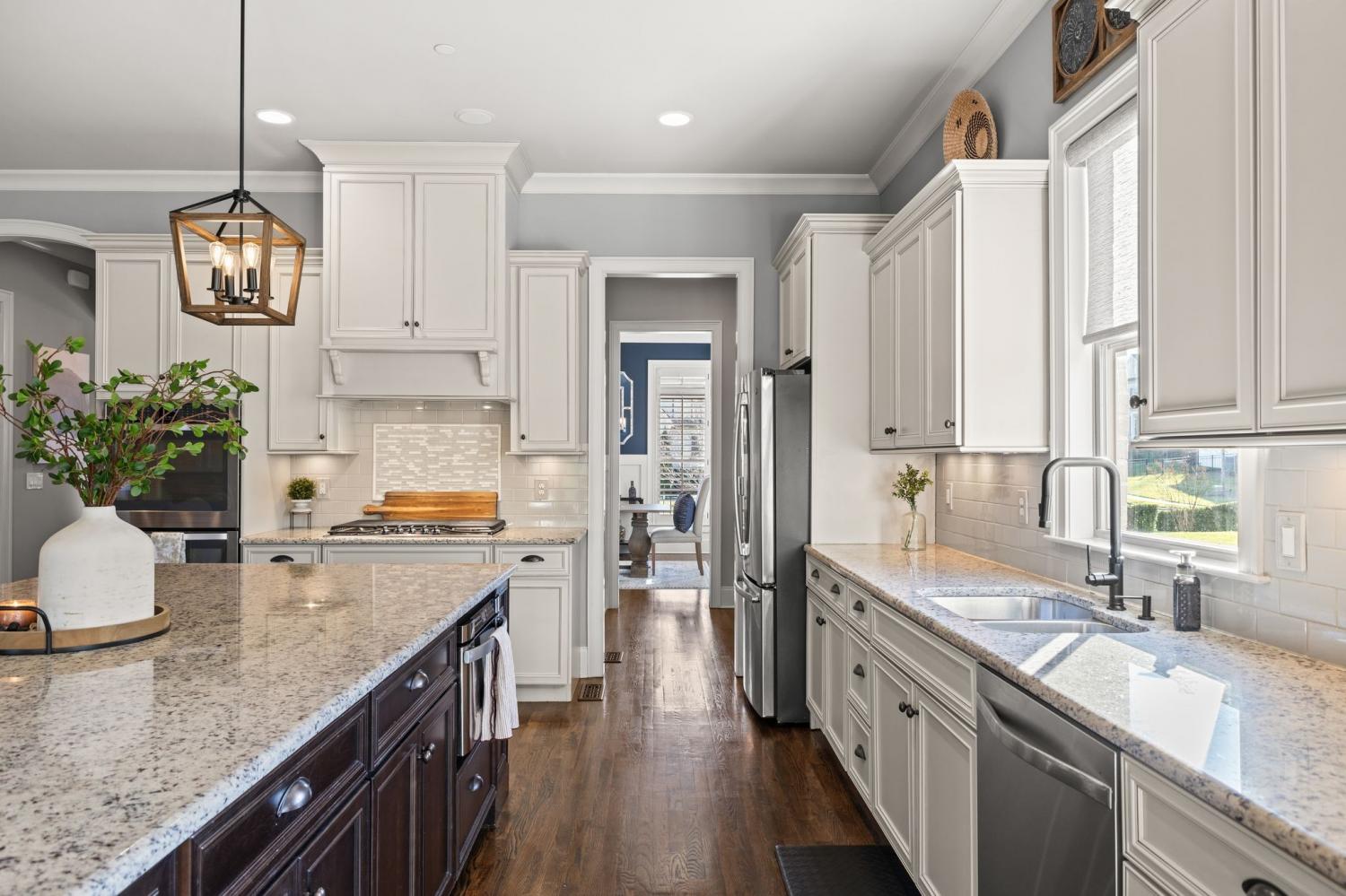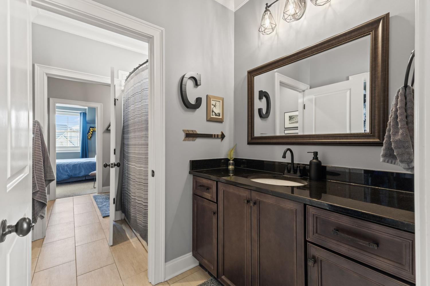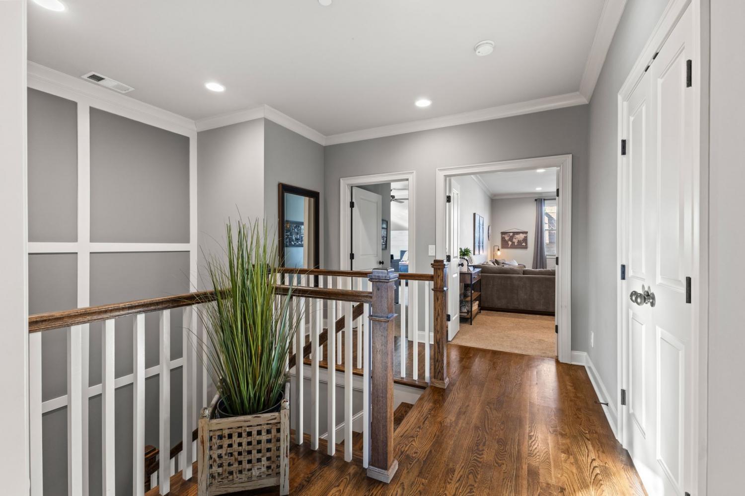 2625 Benington Place is a stunning luxury home, built by Grove Park construction, located in the beautiful and highly sought-after Benington subdivision. This home is thoughtfully designed for comfortable living and effortless entertaining. The open floor plan is filled with natural light from an abundance of windows, including a charming window over the kitchen sink. The gourmet kitchen features a large island that is perfect for gatherings and a convenient butler’s pantry for added storage and prep space. Move-in ready with upscale finishes throughout. The home also offers a tankless water heater and walk-in attic storage. Dedicated flex space off the rec room is ideal for creating an extra hangout space. Whether you are looking to use that space for a dedicated home gym, movie room, playroom, or other, the possibilities are endless. In this flex space, the seller is using it as a home gym and is leaving the projector TV screen on wall & projector. Enjoy outdoor living with a covered back porch overlooking a flat backyard, complete with a paver patio, outdoor fireplace, grill, and beverage cooler—ideal for making memories with family and friends. The secondary bedroom downstairs offers a built in Murphy bed that will stay with the home. Seller doubles use of this room for a home office.