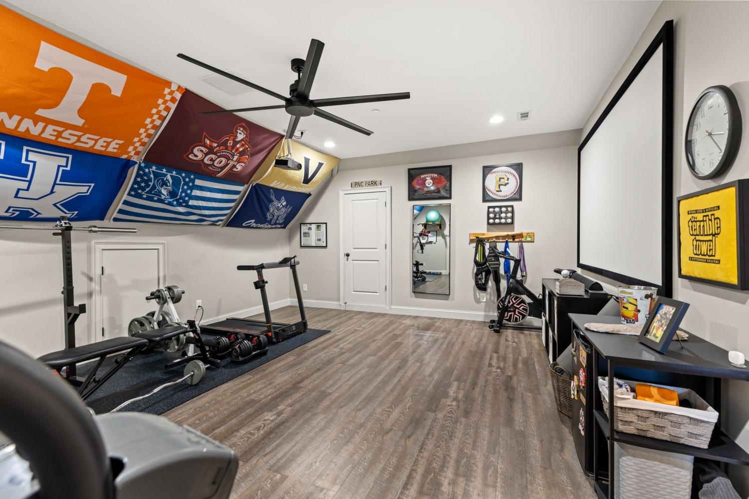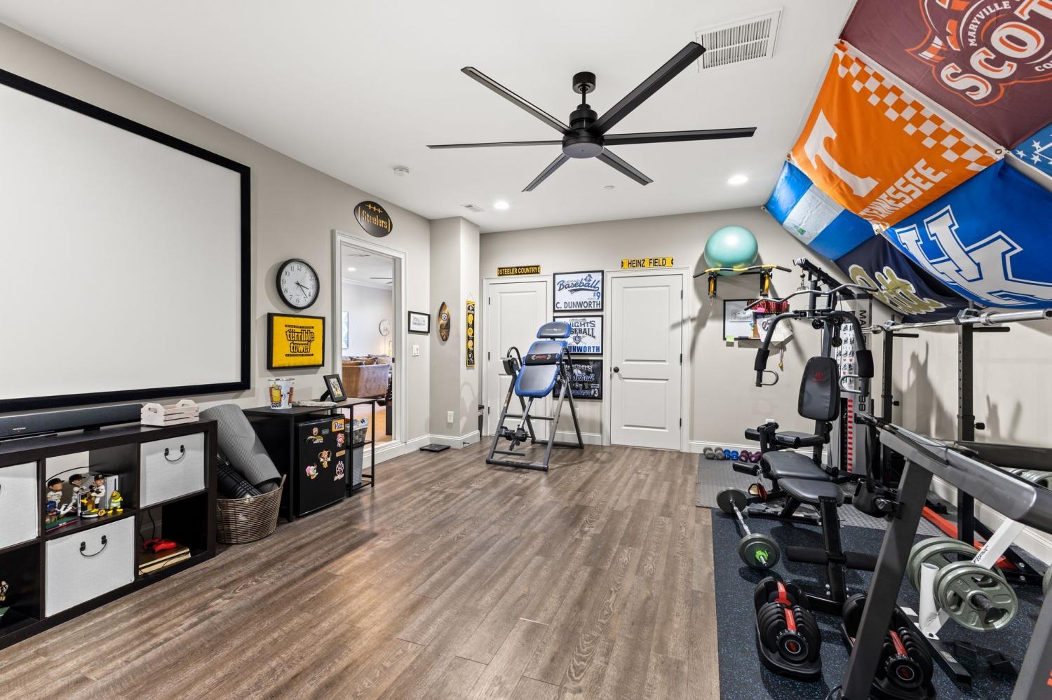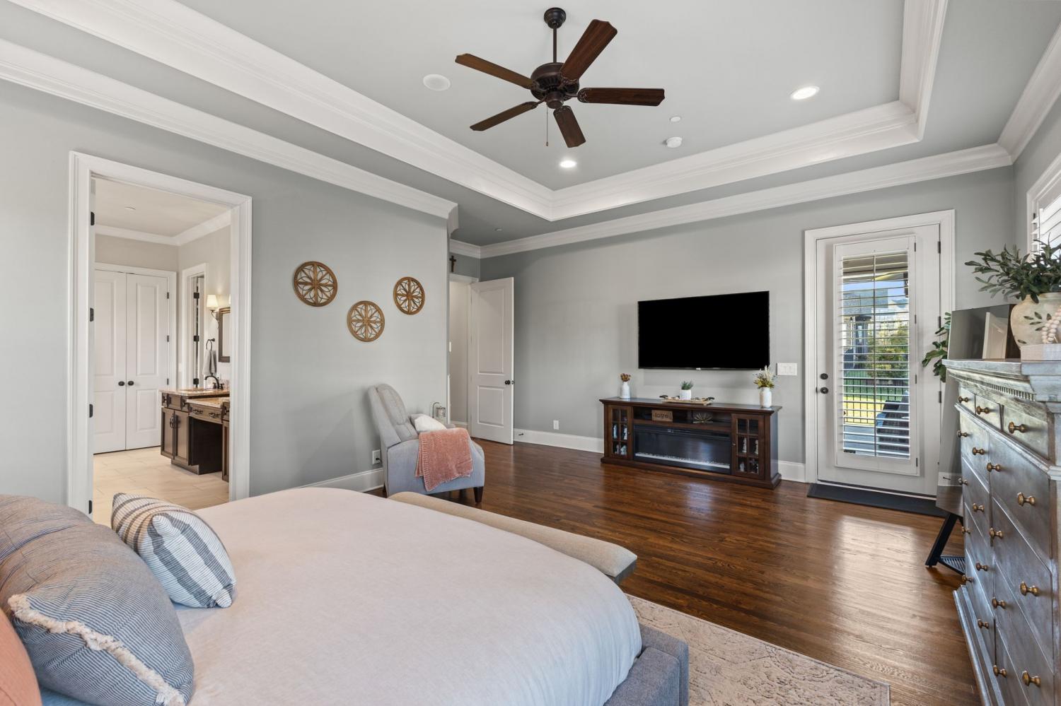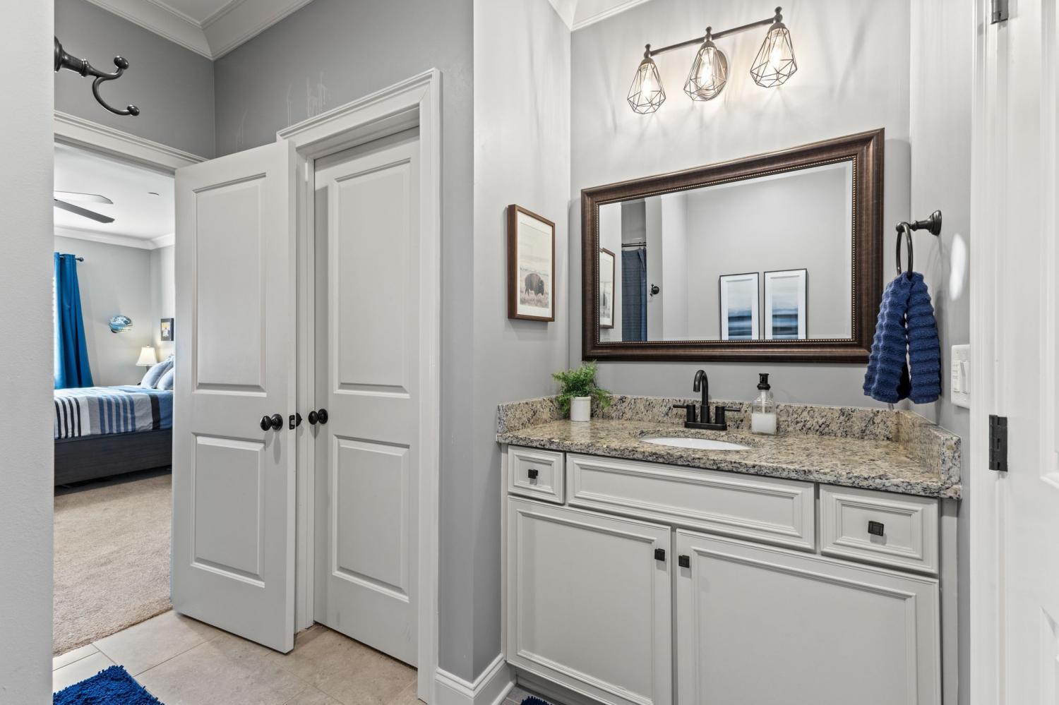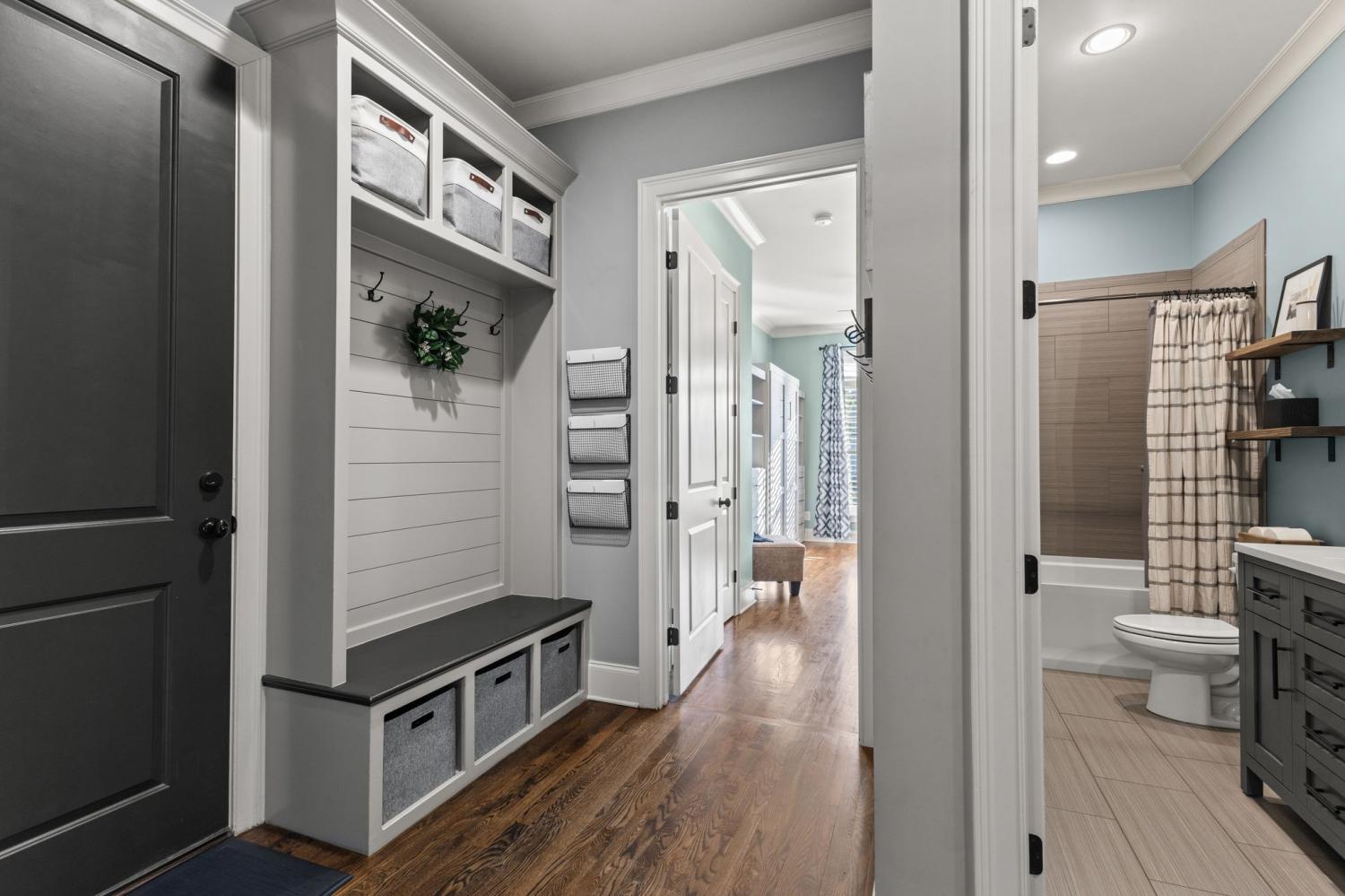 2625 Benington Place is a stunning luxury home, built by Grove Park construction, located in the beautiful and highly sought-after Benington subdivision. This home is thoughtfully designed for comfortable living and effortless entertaining. The open floor plan is filled with natural light from an abundance of windows, including a charming window over the kitchen sink. The gourmet kitchen features a large island that is perfect for gatherings and a convenient butler’s pantry for added storage and prep space. Move-in ready with upscale finishes throughout. The home also offers a tankless water heater and walk-in attic storage. Dedicated flex space off the rec room is ideal for creating an extra hangout space. Whether you are looking to use that space for a dedicated home gym, movie room, playroom, or other, the possibilities are endless. In this flex space, the seller is using it as a home gym and is leaving the projector TV screen on wall & projector. Enjoy outdoor living with a covered back porch overlooking a flat backyard, complete with a paver patio, outdoor fireplace, grill, and beverage cooler—ideal for making memories with family and friends. The secondary bedroom downstairs offers a built in Murphy bed that will stay with the home. Seller doubles use of this room for a home office.
