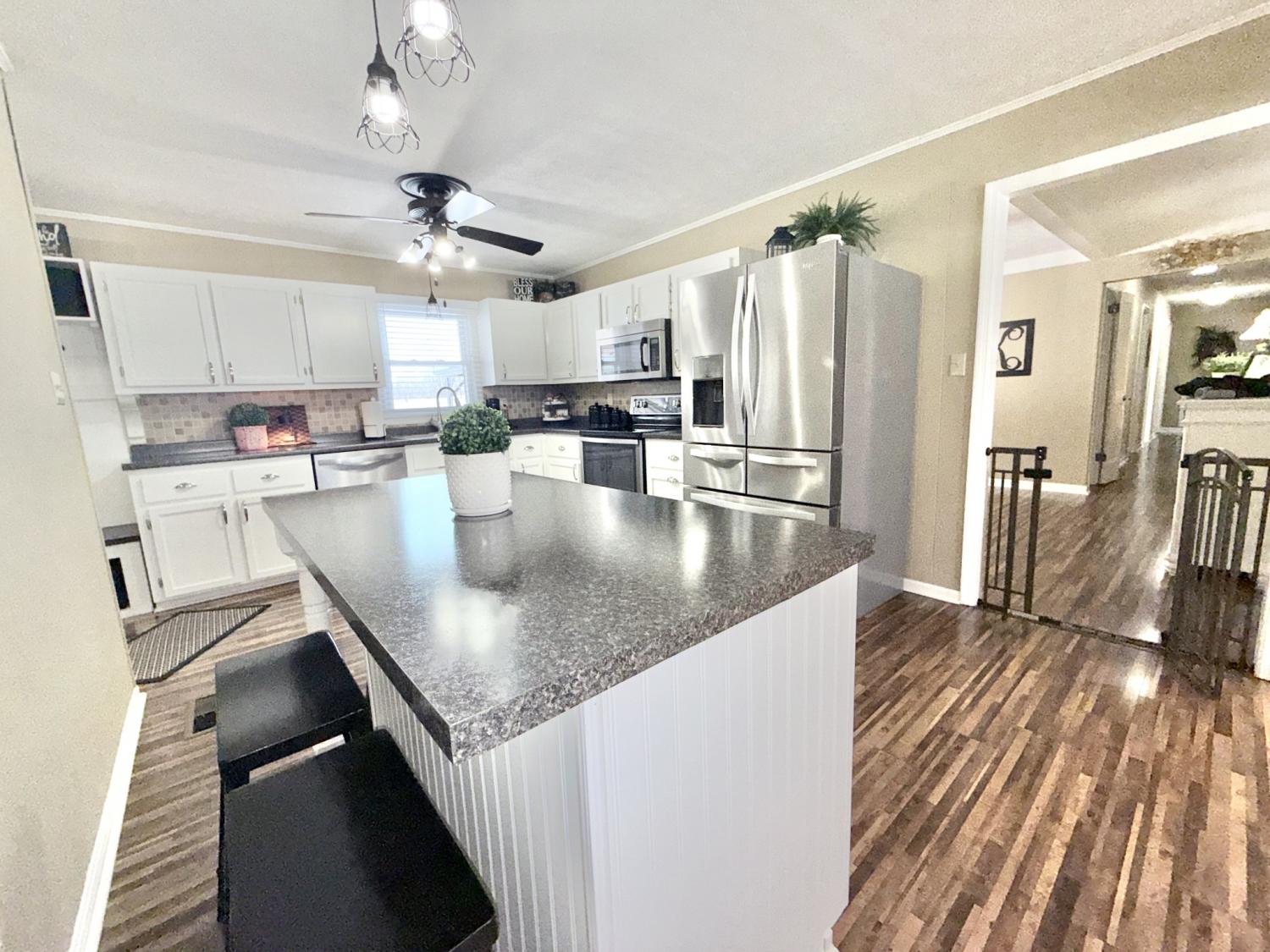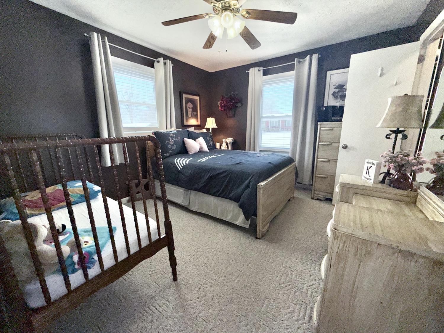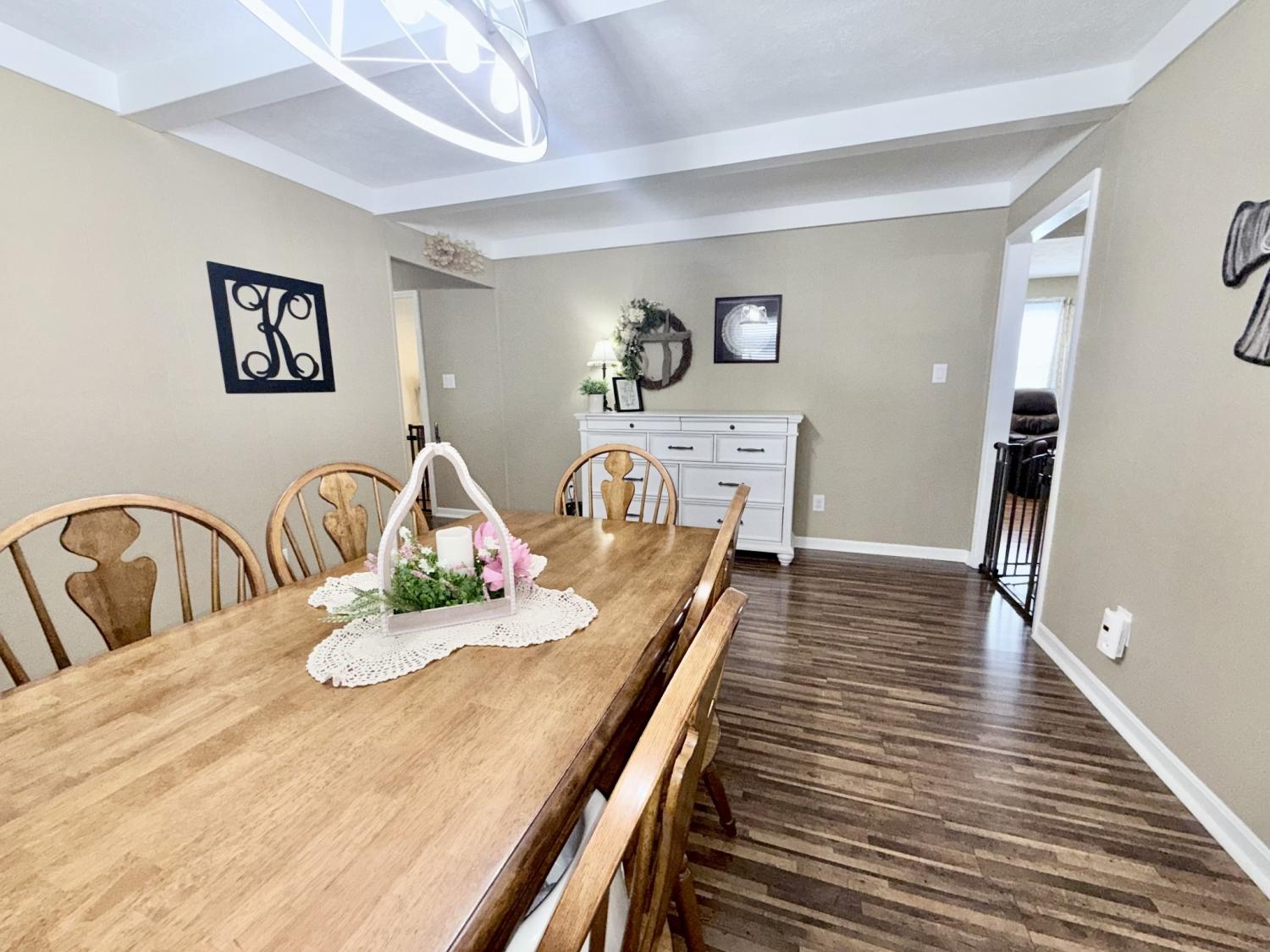 Welcome home to this well-maintained, classic all-brick beauty featuring 4 spacious bedrooms with generous closets and approximately 1,650 sq. ft. of living space. Enjoy updated LVT flooring throughout the main living areas, updated windows, and modern light fixtures. The renovated kitchen, laundry room, and primary bath add both style and function. An attached two-car garage offers everyday convenience, while the detached 576 sq. ft. garage/workshop is perfect for hobbies or special projects. Step outside to the oversized covered deck—ideal for sipping hot chocolate or grilling burgers with the family—and a fully fenced backyard ready for play or pets. The dining room offers flexibility and could easily serve as a second family room or home office. Located in an established neighborhood with a true sense of community and within walking distance to the community college, this home delivers comfort, versatility, and a location that truly works for you.