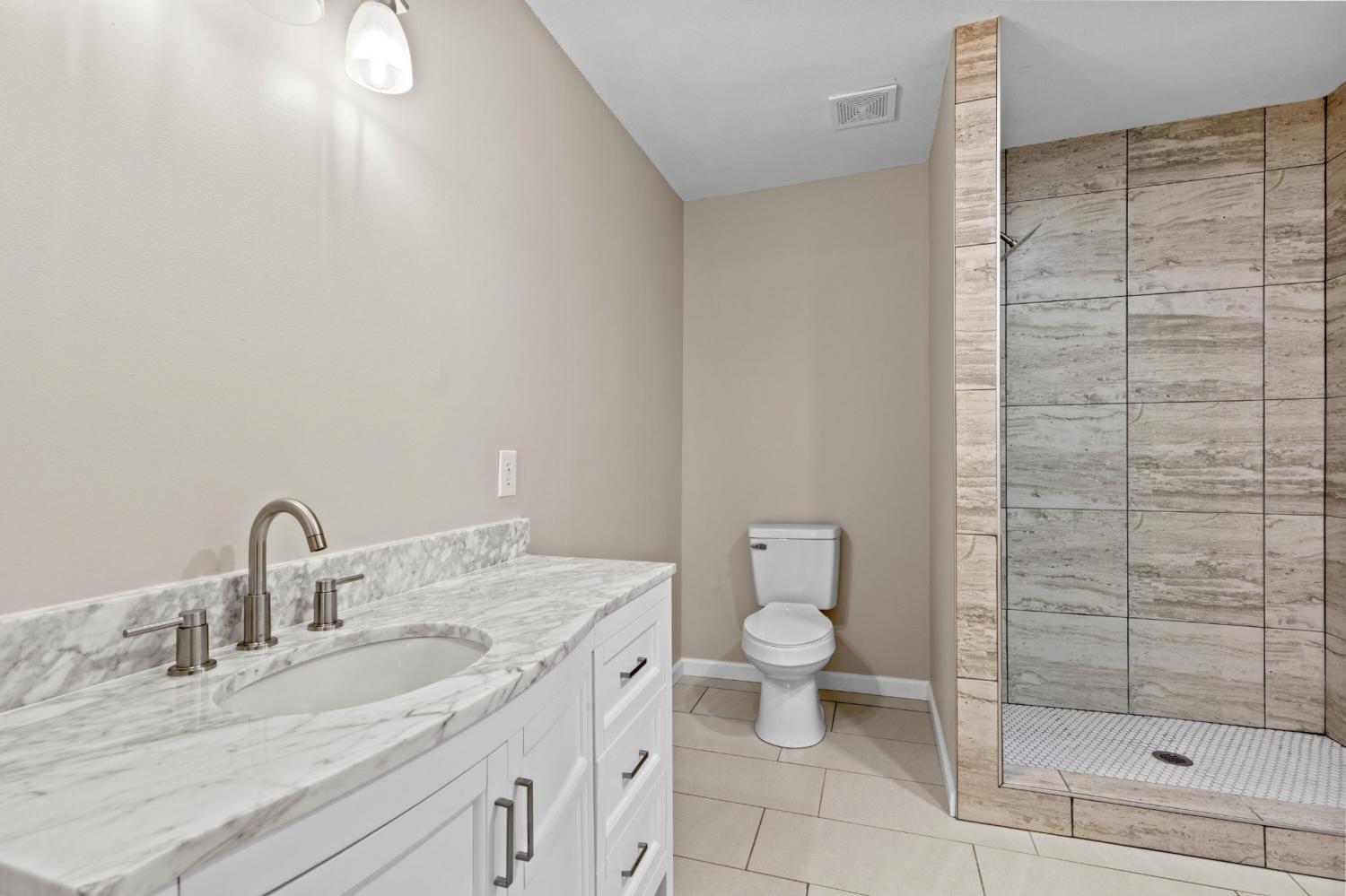 Welcome to 1114 McBrien Rd., a thoughtfully designed 4-bedroom, 2.5-bath home set on just under half an acre, offering space, privacy, and flexibility. With three separate entrances, this property provides versatile living options ideal for everyday living or hosting guests. Inside, a spacious living room creates a comfortable gathering space, while the kitchen features a warm wooden backsplash, ample cabinetry, and a dedicated pantry for storage. A sunroom filled with natural light offers a peaceful retreat and features sliding doors that open to a private balcony/deck, creating a seamless connection between indoor and outdoor living. The primary suite is a true retreat, complete with sliding doors that lead to a private deck overlooking the expansive yard—perfect for morning coffee or evening relaxation. The primary bathroom impresses with stone accents, a walk-in shower, and a soaking tub designed for unwinding. Three additional bedrooms share a full bathroom, and a convenient half bath is perfectly situated for guests. With generous living spaces and multiple outdoor areas, this home blends comfort, functionality, and room to breathe.