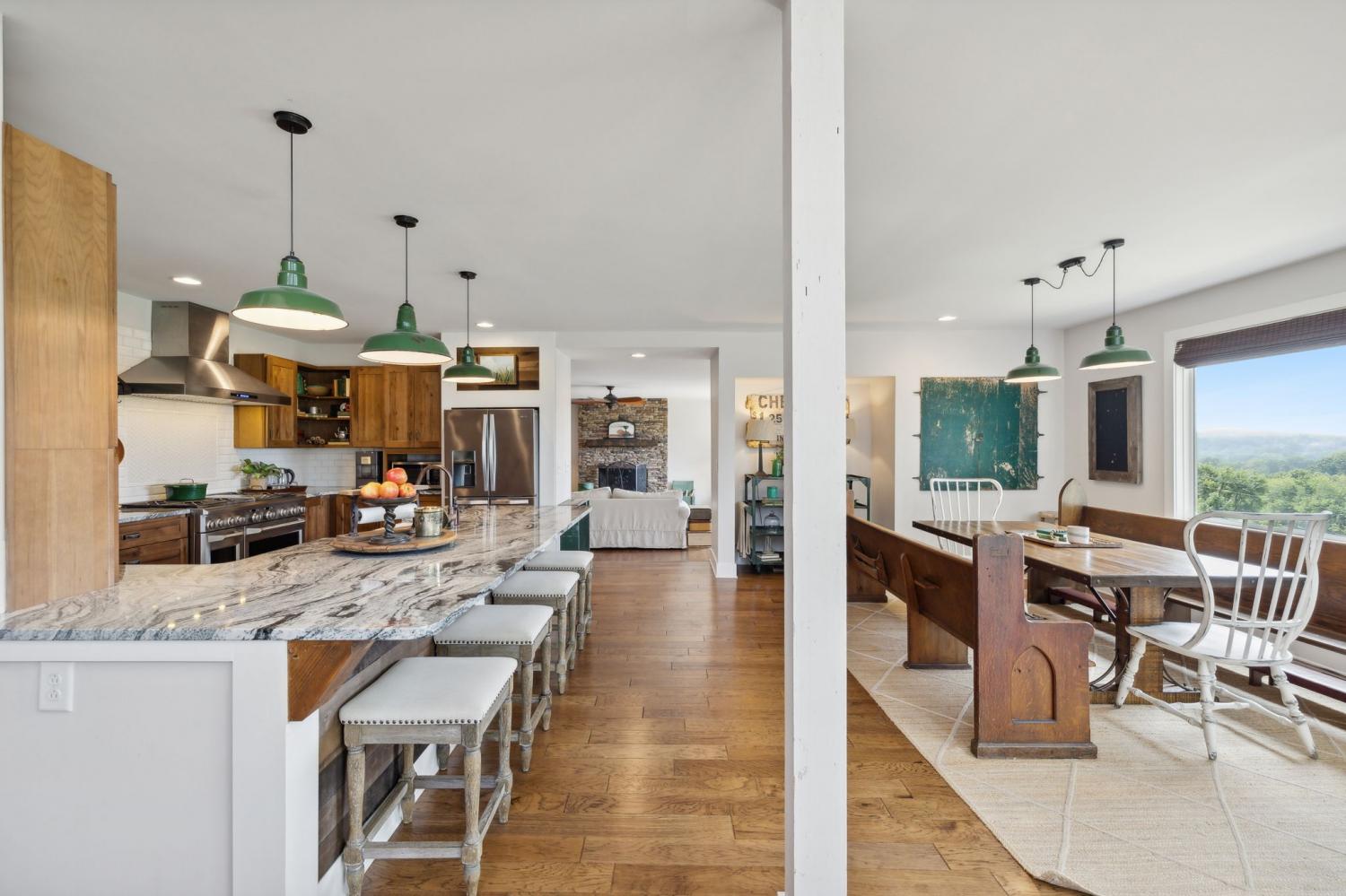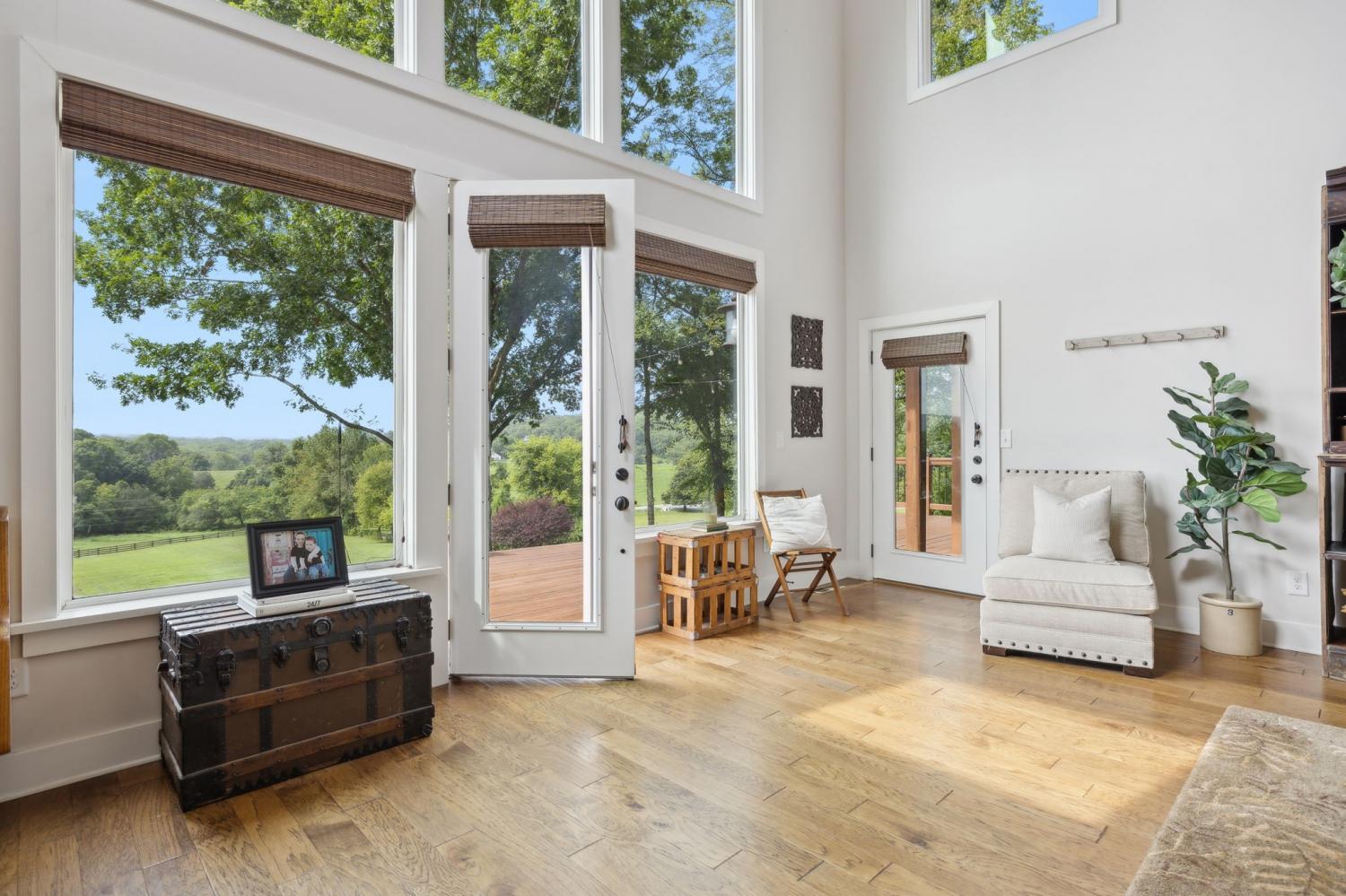 Private hilltop retreat with breathtaking views for miles! This home is situated on acreage with a in a highly sought after Arrington location, just ten minutes to Arrington the vineyards and only twenty minutes to Downtown Franklin. The home is truly unique, featuring soaring vaulted ceilings and a thoughtful blend of modern updates as well as timeless character. With custom finishes throughout, the home is laid out to accentuate the views and natural light, while also utilizing an open and functional floor plan with multiple living and entertaining spaces. The chefs kitchen features custom wood cabinets, granite countertops, stainless steele appliances, and a six burner gas stove! Engineered hardwood floors and fireplaces offer a thoughtful blend of modern updates as well as timeless character. Outdoor living is standout with a large deck and dedicated outdoor entertainment area with fireplace, perfect for enjoying the peaceful setting and unbeatable views. There is room to store all the toys in the oversized detached 3-car garage that is built extra deep for storage. The location gives you the best of both worlds with its private setting that offers a sense of seclusion, while only being a short drive to Franklin, Brentwood, and immediate area conveniences. A great opportunity for buyers seeking acreage, views, and a home with substantial custom upgrades.