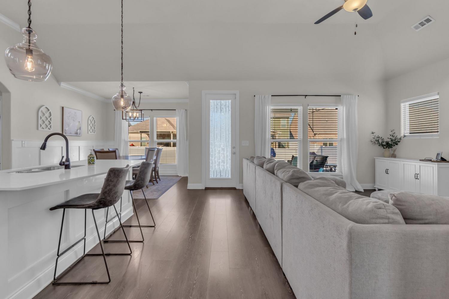 Is it Too Soon to Think About Lazy Days around the Pool? I Don't Think So...Designed for everyday comfort and effortless living, this thoughtfully planned home offers three spacious bedrooms and two full baths on the main level, creating an ideal setup for both privacy and convenience. Upstairs, a generously sized fourth bedroom is paired with an oversized bonus space and walk-in attic storage—perfect for a home office, guest suite, playroom, or flex space to grow with your needs. The primary suite is a true retreat, featuring a spa-inspired bath with a walk-through shower, double vanities, and a relaxing soaking tub. A functional drop zone just off the laundry room adds ease to daily routines. Enjoy outdoor living year-round on the covered front and back porches overlooking a fenced backyard, ideal for relaxing, entertaining, or pets at play. Located in a vibrant community offering a pool, clubhouse, playground, and dog park, this home blends comfort, space, and lifestyle in one exceptional package. Photos do not fully capture the appeal of this floorplan—an in-person showing is highly recommended.