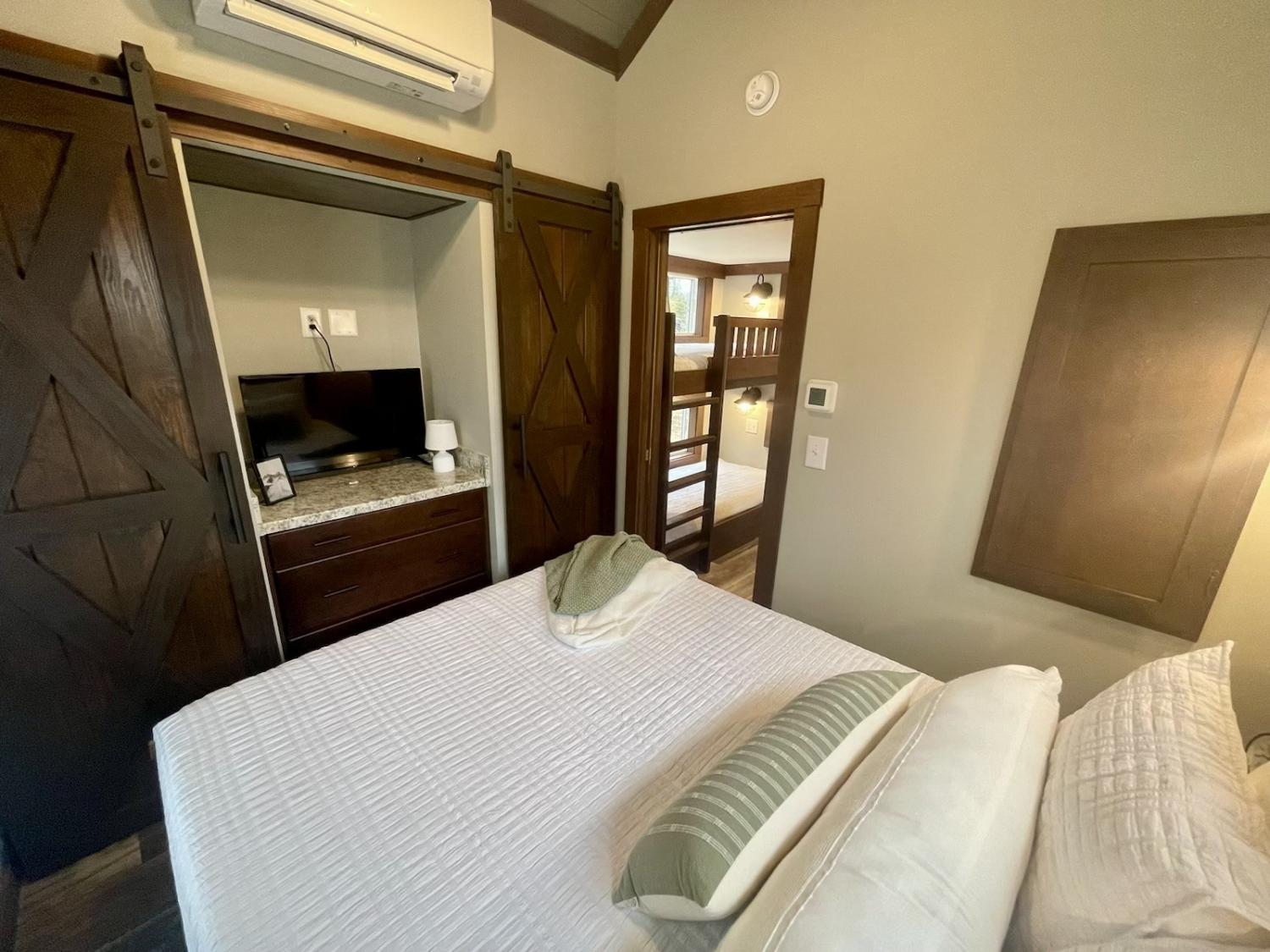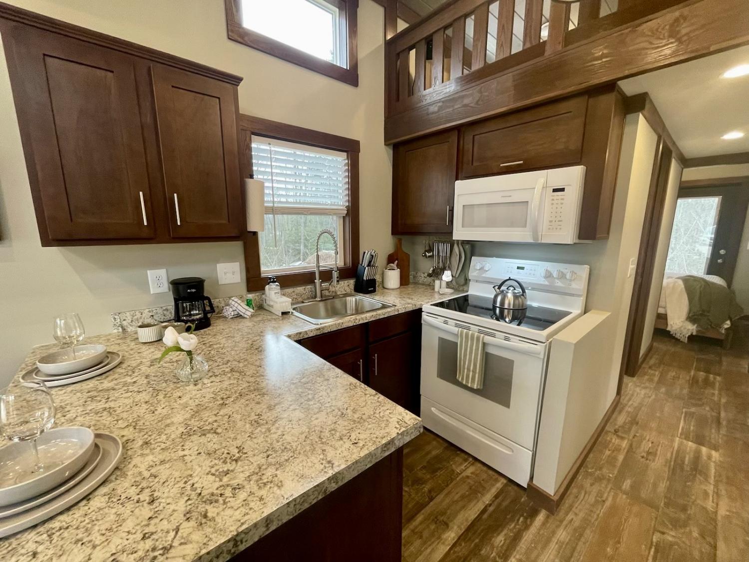 Welcome to this charming Tennessee Tiny Home, nestled in a gated community of The Retreat at Water’s Edge. The Overland, a bright & cheerful tiny home wrapped in creamy tones & calming lake house vibes is on the quite side of the community just across the street from the lake. This home is made for laid-back lake days, star-filled nights, & cozy evenings by the fire pit. Greeted by the covered front porch, perfect for morning coffee & soaking in the views, the door opens to the bright living space big enough for a full size couch and electric fire place & bar stools at the island, perfect morning breakfast spot in the modern kitchen with granite countertops, full size appliances, including a dishwasher, and washer & dryer making clean up a breeze. Invite your friends & family over because this tiny home sleeps 6 with a queen in the primary, two twin bunks in the hallway & two more twins in the upstairs loft enough space for everyone. So many ways to unwind & enjoy nature, grill out on the spacious deck, gather around the private firepit glowing with string lights, or take a walk to the lake just across the street. This Tiny Home comes move-in ready, fully furnished & stylishly decorated and has a previous STR history. It is only a year and a half old and very well taken care of. Come see how this Tiny Home combines cozy mountain living with big charm! Community is a gated wooded retreat with so much to offer like a 75 acre lake perfect for paddle boarding, swimming and fishing plus, kids love the playground, community pavilions, firepits and kayak rentals. It offers amazing hiking throughout the community, waterfall hike is just down the road and South Cumberland Park offers over 200 miles of outstanding hiking trails, leading to overlooks, waterfalls and great climbing areas!! Whether you’re looking for a vacation rental or a mountain home getaway to relax, recharge, or reconnect, Overland offers the perfect escape—peaceful, welcoming, and effortlessly cozy.