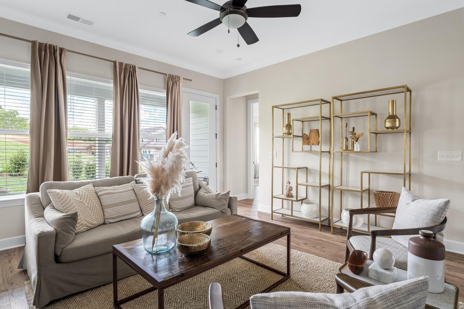 Lot 5 is our Harpeth plan that is an END UNIT with a walk out BASEMENT REC ROOM with TONS of natural light. Beautiful GAS fireplace, 10' Ceilings, 8' doors on 1st Floor and 9' Ceilings in Basement. The basement has 1 bedroom and a huge Rec Room plus full bath and tons of storage space. Hardwood surface throughout first floor. Gourmet kitchen w/ GAS cooktop with decorative Stainless Steel vent hood, quartz countertops, backsplash to the ceiling, laundry room with sink, COVERED back deck off great room, white James Hardi cement board siding exterior with white windows and black gutters, 4 lite 8 -foot front entry door, BLINDS installed on All operable windows, and so much more! LOW, LOW interest rates with using our builders preferred lender only for a limited time. Ask the sales agent for more information.