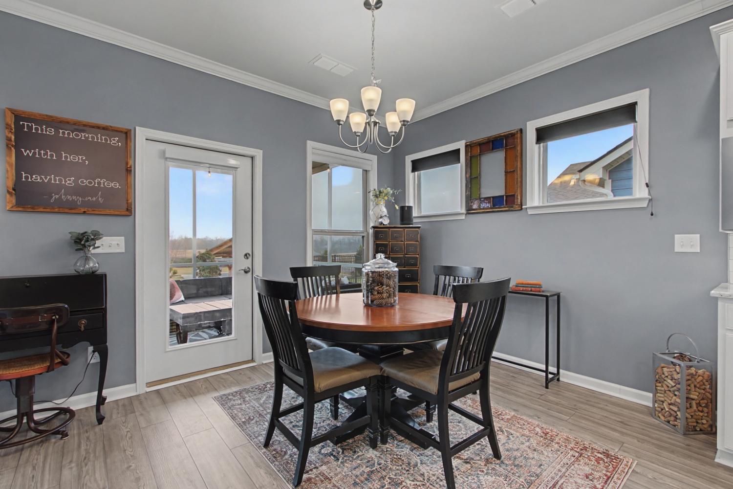 Rarely available upgraded elevation, like new, popular Abbeyville floor plan that shows like a model in Del Webb Southern Springs 55+ active adult community five minutes from shopping, dining, post office, banks, emergency room, and Towhee Golf Club. Open concept floor plan, crown molding, gas fireplace, granite countertops, tile backsplash, farmhouse sink, pantry, and gas range. Flex room that could be used as a 3rd sleeping space, office, library, TV room, hobby room, so many possibilities with glass french doors for privacy. Screened lanai and patio overlooking the private backyard. Laminate wood flooring in kitchen and main living area. Primary bath with double sink vanities, tile shower, separate water closet, and extra large walk-in closet. Garage has 4 ft extension and Guardian Polyaspartic coating on the floor. Pull down attic stairs with floored attic space. The community has both indoor and outdoor pools, pickle ball and tennis courts, gas fire pit, pavilion with gas grills and patio tables, clubhouse with fitness center and fitness classes, ball rooms, kitchen, conference room, card/game room, massage room, men's and women's locker rooms, and a dog park. Over 70 clubs and special interest groups, special programs, presentations, concerts, Southern Springs choir and band, as well as photography, painting, quilting, solo clubs, coffee club, Veteran's club, and so much more. Living in Southern Springs is like vacationing at a very active resort. Thirty-five minutes to/from BNA.