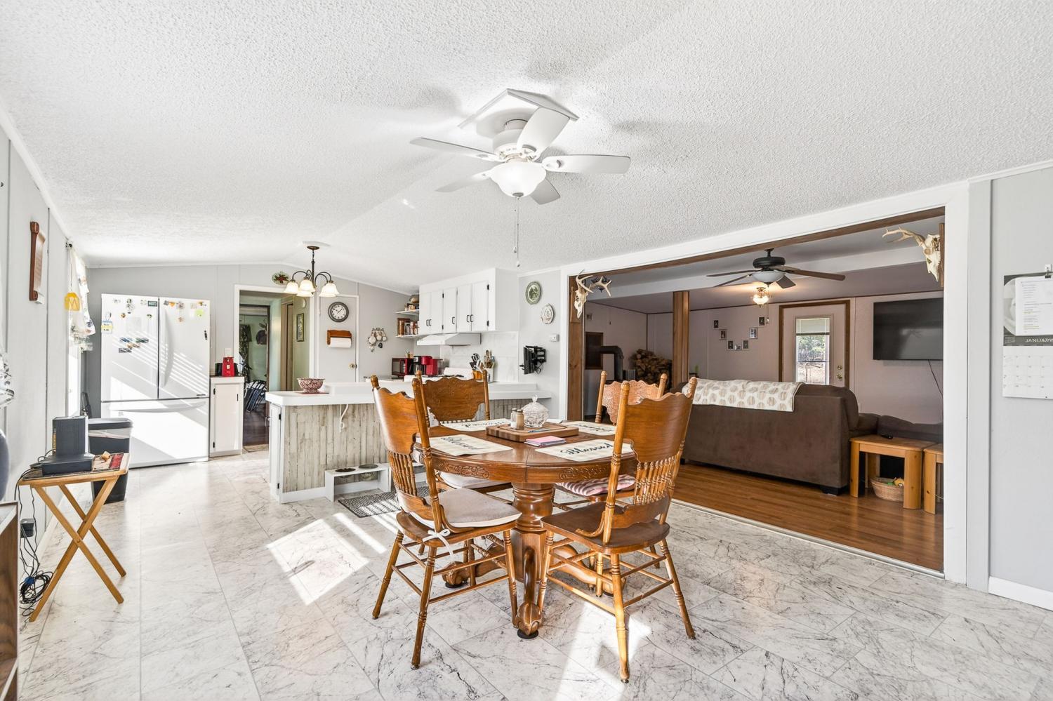 Welcome to your own slice of country living where space, privacy, and possibility come together on 12.2 beautiful acres. This well-maintained 3-bedroom, 2-bath manufactured home offers comfortable living with a flexible bonus room perfect for an office, hobby space, or guest area. Enjoy mornings overlooking a stocked pond and evenings watching the sunset across open pasture—ideal for a mini farm or animals. The property is fully equipped with a detached two-car garage, two additional carports, a workshop, and a barn, providing endless storage and workspace. Inside, recent updates include windows, roof, HVAC, and select new flooring, while 2x6 wall construction and a permanent foundation add peace of mind. A Generac generator ensures reliability, and prior Orkin termite treatment adds extra confidence. This property delivers a relaxed rural lifestyle with room to live, work, and grow.
