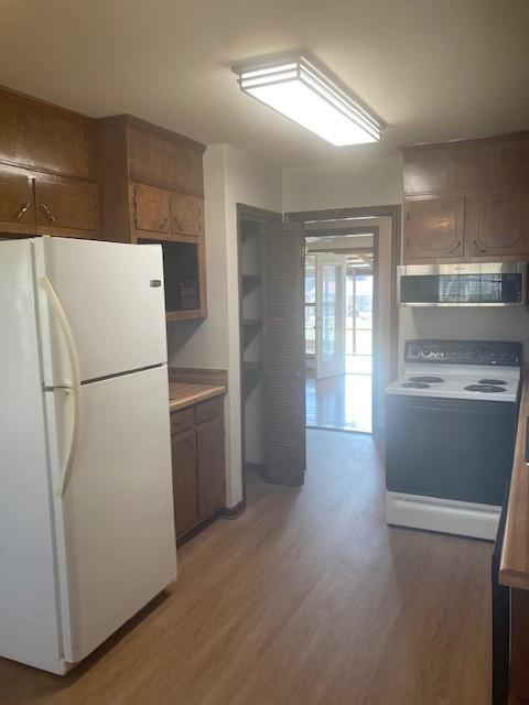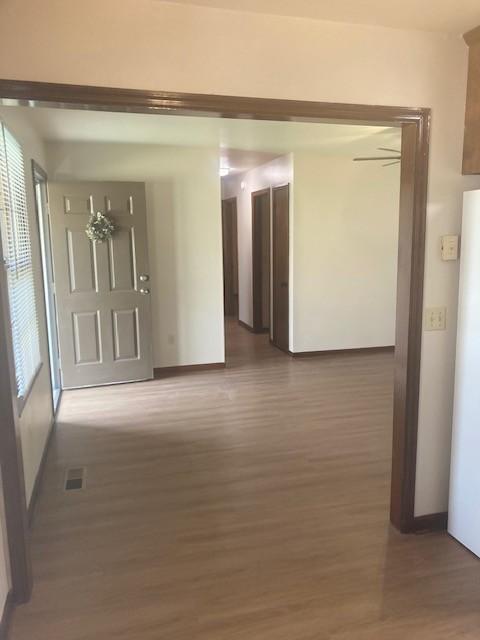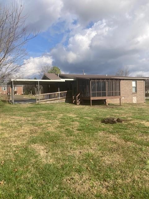 Four bedrooms, main bedroom can be a secluded peaceful area with bathroom, with walk in shower and access to screened in porch. Has covered carport and ramp access to house. Concrete driveway. Covered front porch, storm doors, 2 outside storage buildings, Eat in kitchen with new ceiling fans and light fixtures throughout. Appliances include stove, refrigerator, dishwasher and new microwave over stove. Butcher board countertops. Large living room and 3 more bedrooms on other end of house with full bathroom and amble closet space. No Pets please!