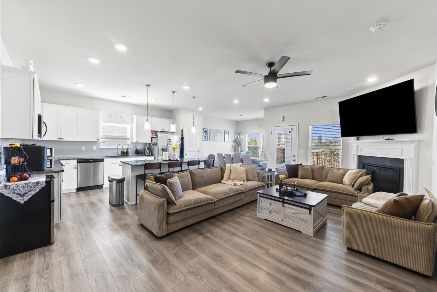 A spacious open-concept living area filled with natural light, stainless steel appliances, large island and fireplace.The primary suite is on the first floor, private backyard which backs up to a well-manicured pond, Home is conveniently located near parks, schools, shopping, and dining,