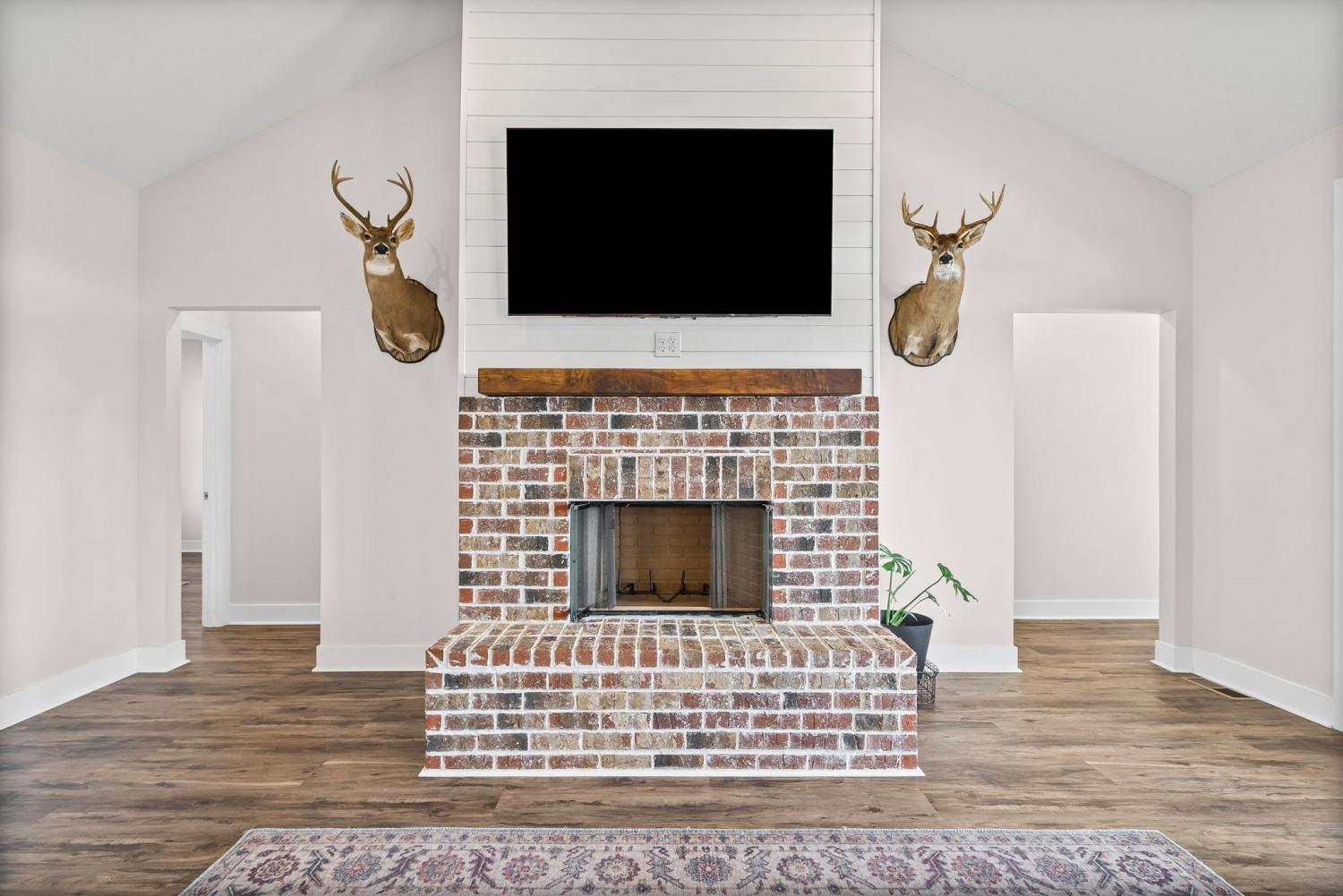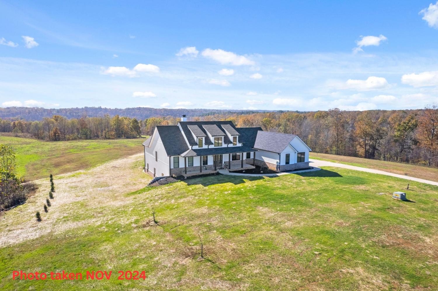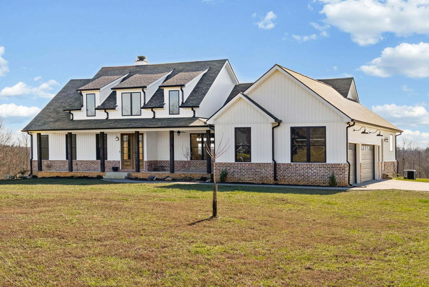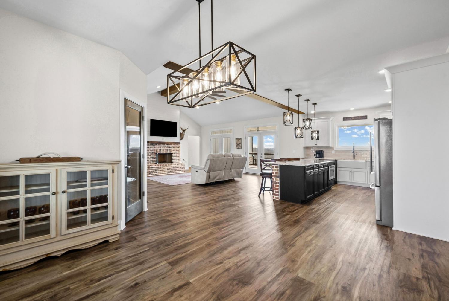 Welcome to your private estate on 47 Acres! Custom built in 2024; this sprawling 2,799 SqFt ranch home is beautifully surrounded by acres of hardwoods and is set back from the road for ultimate privacy. French doors welcome you into the vaulted entryway. A flex room, perfect for a home office or formal dining room, is conveniently located off the entryway. Luxury vinyl floors flow from the front door into the spacious living area where wood beams and a brick fireplace accent the space beautifully. Two sets of French doors allow the best view of your acreage, oversized back porch, back patio and backyard. The chef’s kitchen is adorned with a Thor double oven gas range with griddle, pot filler, large farmhouse sink and an extra-large island with storage and a built-in microwave. A large open dining area and walk-in pantry with custom door complete the open-concept space. The primary suite features a wood beam to compliment the vaulted ceiling, French doors to the back patio, two large walk-in closets, and luxury vinyl flooring while the primary bathroom boasts separate vanities, extra storage cabinetry, tiled shower and a free-standing tub with surround tile. Bedroom two features its own full bathroom, perfect for guests, while bedrooms three and four share a joined full bathroom. The main level is completed by a half bath, a tiled laundry space with sink and extra storage cabinetry and a three-car garage. Outside you will find a giant covered deck with propane line installed for a grill, and a large patio. The home features a tankless hot water system, full home filtration system and downstairs, a full unfinished walkout basement (2,799 SqFt) with plumbing for future bathroom. The property has an abundance of deer and wildlife and is in greenbelt to help save on property taxes. The large 30x50 (1,500 SqFt) shop/barn has all the space you will ever need for equipment storage. Home recently appraised for $1,425,000.00.