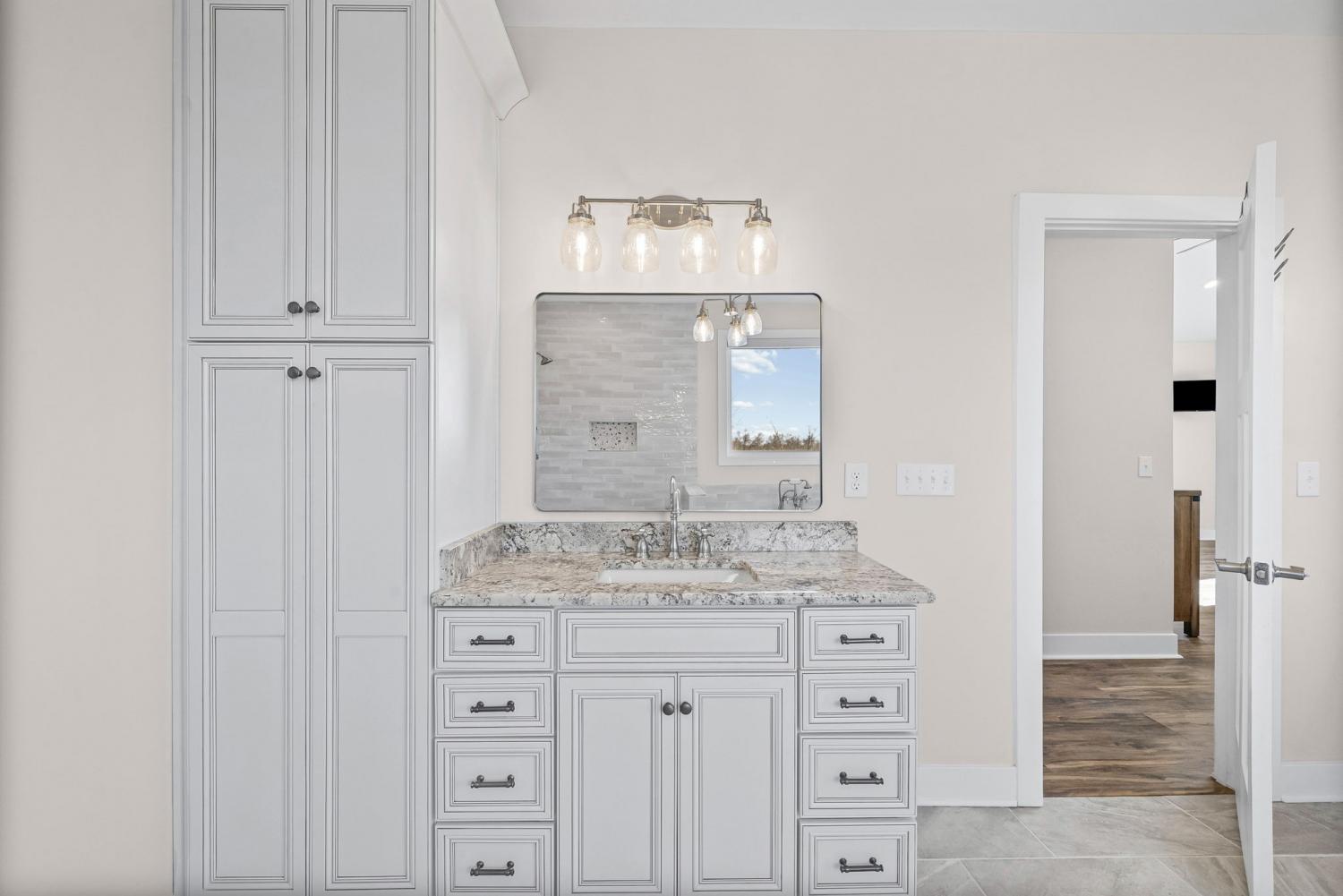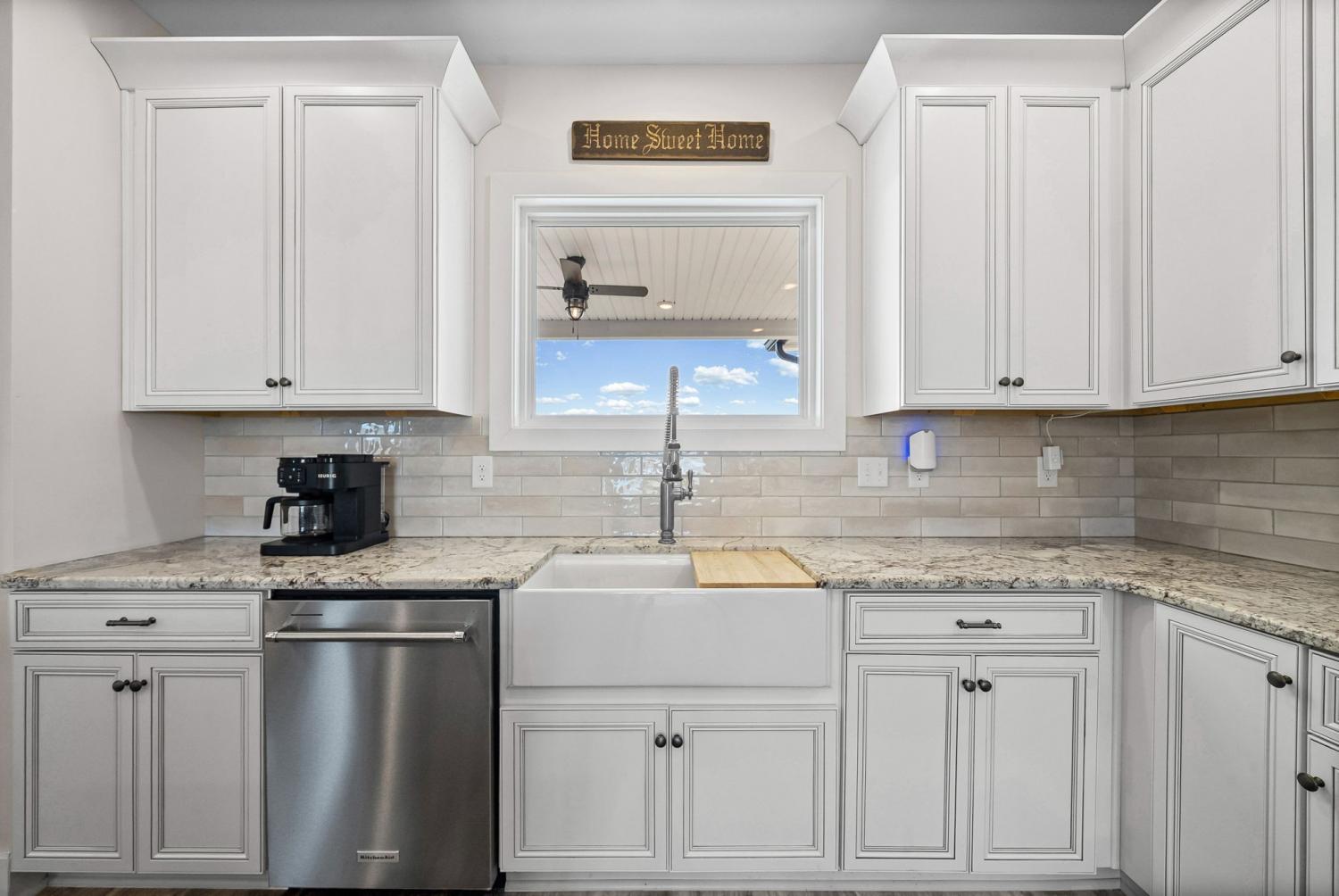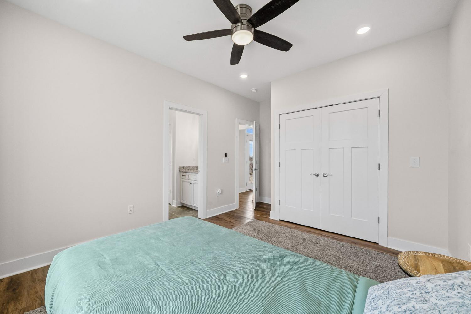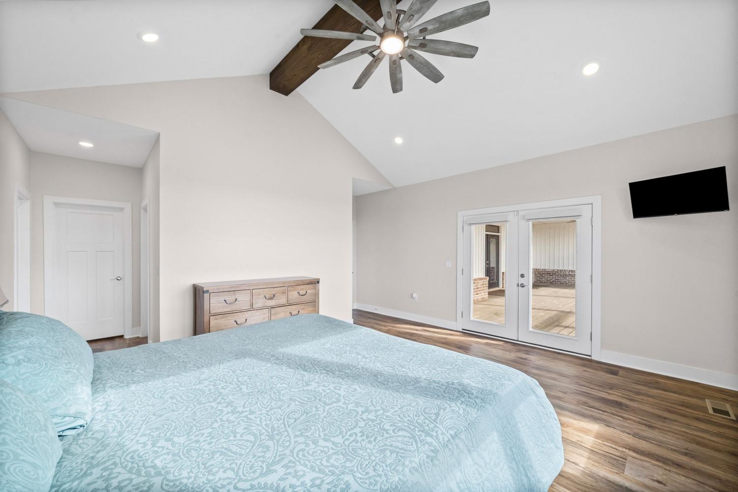 Welcome to your private estate on 47 Acres! Custom built in 2024; this sprawling 2,799 SqFt ranch home is beautifully surrounded by acres of hardwoods and is set back from the road for ultimate privacy. French doors welcome you into the vaulted entryway. A flex room, perfect for a home office or formal dining room, is conveniently located off the entryway. Luxury vinyl floors flow from the front door into the spacious living area where wood beams and a brick fireplace accent the space beautifully. Two sets of French doors allow the best view of your acreage, oversized back porch, back patio and backyard. The chef’s kitchen is adorned with a Thor double oven gas range with griddle, pot filler, large farmhouse sink and an extra-large island with storage and a built-in microwave. A large open dining area and walk-in pantry with custom door complete the open-concept space. The primary suite features a wood beam to compliment the vaulted ceiling, French doors to the back patio, two large walk-in closets, and luxury vinyl flooring while the primary bathroom boasts separate vanities, extra storage cabinetry, tiled shower and a free-standing tub with surround tile. Bedroom two features its own full bathroom, perfect for guests, while bedrooms three and four share a joined full bathroom. The main level is completed by a half bath, a tiled laundry space with sink and extra storage cabinetry and a three-car garage. Outside you will find a giant covered deck with propane line installed for a grill, and a large patio. The home features a tankless hot water system, full home filtration system and downstairs, a full unfinished walkout basement (2,799 SqFt) with plumbing for future bathroom. The property has an abundance of deer and wildlife and is in greenbelt to help save on property taxes. The large 30x50 (1,500 SqFt) shop/barn has all the space you will ever need for equipment storage. Home recently appraised for $1,425,000.00.