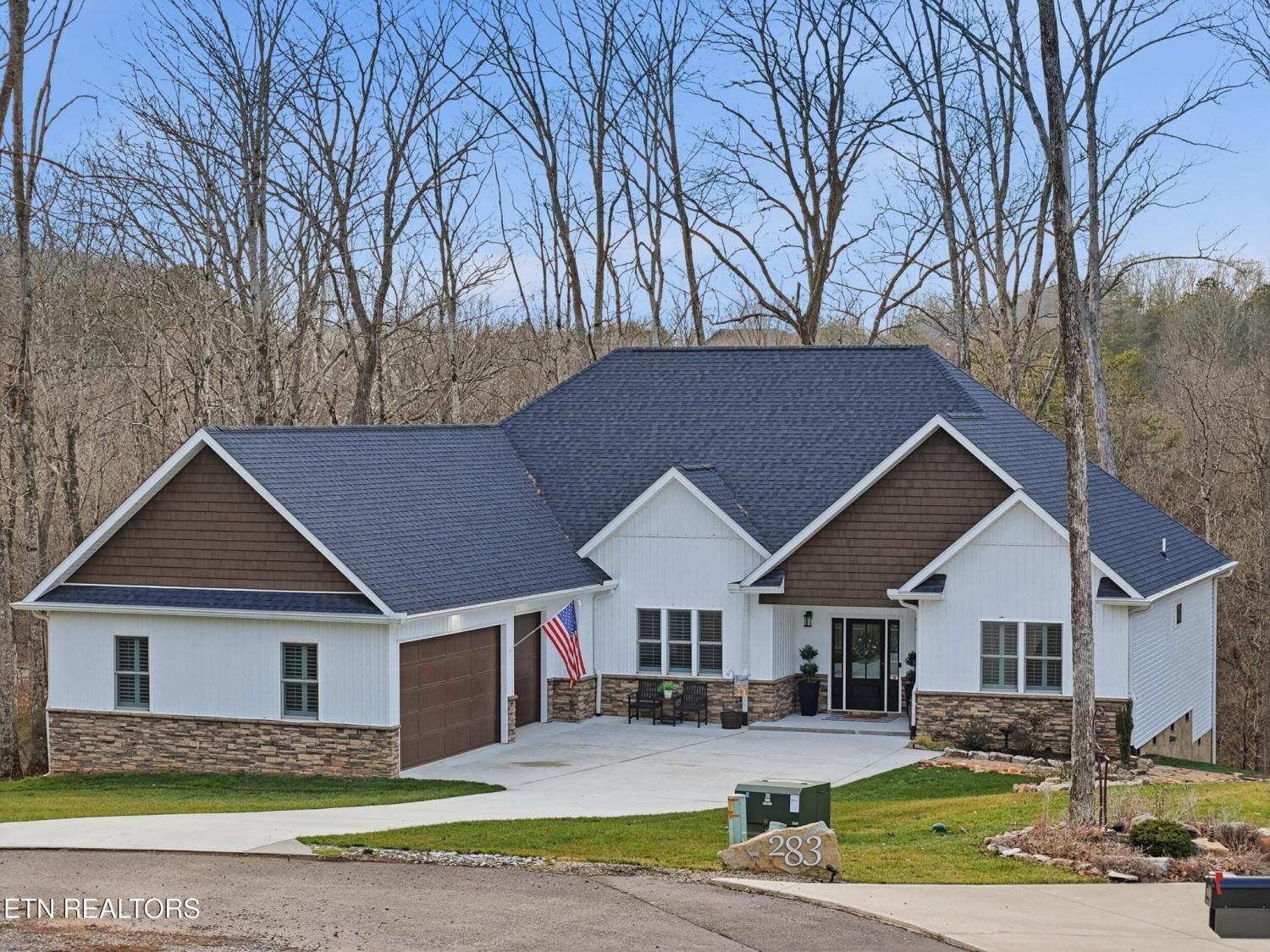 Modern One-Level Living in Tellico Village | Built 2023 Welcome to this beautifully upgraded, one-level home located at the end of a quiet cul-de-sac in the heart of Tellico Village. Built in 2023, this home offers the perfect opportunity to enjoy newer construction without the wait, plus the added benefit of thoughtful upgrades already completed by the current owners. Set against a private wooded backdrop, the home backs up to a protected undisturbed preserve providing lasting privacy and a peaceful natural setting. A scenic creek runs the full length of the preserve, creating a tranquil view you can enjoy year-round. Inside, the home features an open and modern layout designed for both comfort and entertaining. The kitchen has been enhanced with custom cabinetry and a large island—perfect for gatherings, meal prep, or casual dining. Additional upgrades include a custom-built mudroom, plantation shutters throughout ,a tankless water heater, and a whole-house water filtration system for added convenience and peace of mind. Storage is effortless with a Versa Lift motorized attic lift in the garage, making it easy to access attic storage space. Outside, the front yard showcases attractive flagstone walkways and professionally designed hardscaping with frost-resistant landscaping, adding to the home's curb appeal. This home offers the perfect blend of modern design, thoughtful upgrades, and serene natural surroundings—all in one of Tellico Village's most desirable settings. A rare opportunity to enjoy move-in-ready living with long-term peace of mind. Buyer to verify all information to buyer's satisfaction.