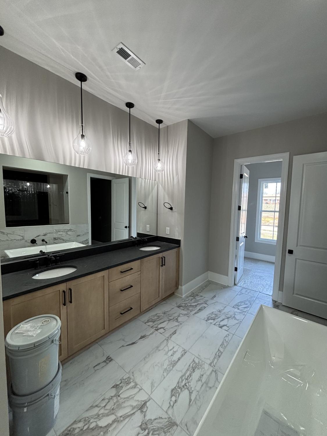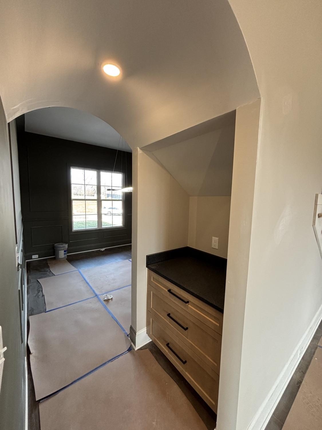 Welcome to Short’s Crossing, Smyrna’s newest community, ideally located along West Jefferson Pike—just minutes from I-840, scenic parks, major shopping, and top local amenities. This thoughtfully designed home is packed with high-end upgrades and architectural detail throughout. The main-level office/dining room features a dramatic color-drenched finish, while arched entryways and a barrel ceiling in the breakfast nook add timeless character. The living area is anchored by an electric fireplace with elegant board-and-batten detailing that extends to the vaulted ceiling. The kitchen showcases custom cabinetry, including a mini butler’s pantry cabinet, and the home continues to impress with a coffee bar in the primary suite and a wet bar in the bonus room—perfect for entertaining. Two bedrooms are located on the main level, each privately zoned with its own full bath, along with a convenient half bath for guests. Upstairs, you’ll find a spacious bonus room with a full door providing walk-out access to attic storage, a pocket office or additional storage space, two additional bedrooms, and a full bath. The primary bathroom is a true retreat, featuring a large walk-in shower with a built-in bench, a stunning 60" x 36" freestanding tub positioned in front of the shower, and an 8-foot split vanity offering ample space for makeup, hair tools, and storage. This home blends craftsmanship, functionality, and elevated design in one of Smyrna’s most exciting new communities.