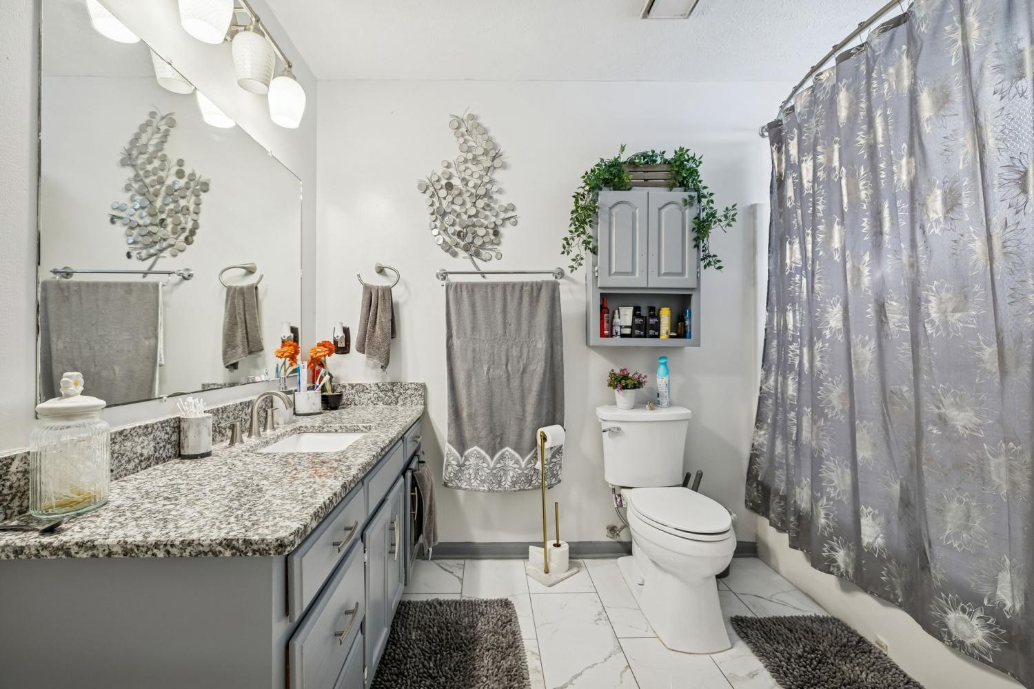 Save up to 1% of your loan amount as a closing cost credit when you use seller's suggested lender! This move-in ready home offers a fantastic location just 20 minutes from downtown Nashville, minutes to all the shopping and dining in Hermitage, and easy access to I-40 and Percy Priest Lake. Step inside to a spacious living room with high ceilings and a cozy fireplace, creating a warm and inviting atmosphere. The living area flows seamlessly into the dining space and open kitchen, which features ample cabinetry, granite countertops, stainless steel appliances, and a tiled backsplash. The primary suite is conveniently located on the main level and includes an ensuite bathroom and walk-in closet. Upstairs, you’ll find three additional spacious bedrooms and another full bathroom, offering plenty of room for family, guests, or a home office. Outside, enjoy a screened-in back deck plus additional patio space overlooking a large fenced-in backyard. With a tree line behind the home and no rear neighbors, you’ll love the added privacy. A two-car garage completes this well-maintained home that’s ready for its next owners!
