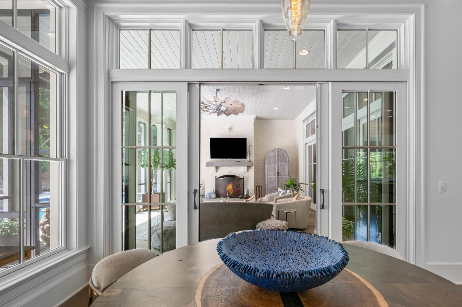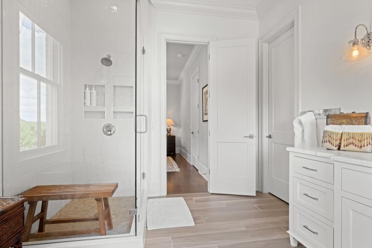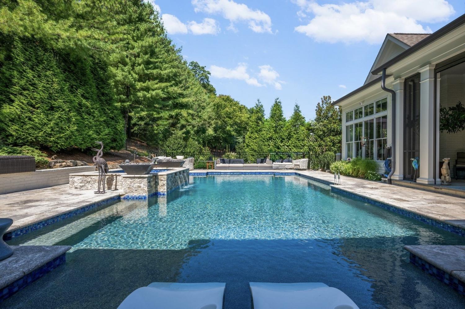 Modern luxury meets exceptional privacy in this stunning estate, located in Windstone—one of Brentwood's most sought-after gated communities. Tucked into a peaceful hidden valley yet convenient to Franklin, Cool Springs, Brentwood, and all of Williamson County. Built in 2016 and ideally situated near the rear of the community, the home offers six bedrooms, all with en suite baths, plus private guest quarters with a separate entrance. The main-level primary suite features vaulted ceilings with exposed beams and a spa-like bath with dual-entry shower and dual walk-in closets. The gourmet kitchen boasts Wolf gas range, abundant cabinetry and expansive counter space, perfect for entertaining. A finished walk-out basement includes a family room, wet bar, fitness room, full bath, ample storage, and a concrete storm shelter/safe room. Additional highlights include dual laundry rooms, a full-room cedar closet, and a four-car garage with individual stalls. Enjoy outdoor living on the covered patio with fireplace and remote screens overlooking a custom pool and spa, surrounded by mature trees and lush landscaping. Equipped with Control4 smart home features and a 50kW whole-home generator. Windstone amenities include a community pool, clubhouse, and gym. Zoned for Scales Elementary, Brentwood Middle, and Brentwood High.