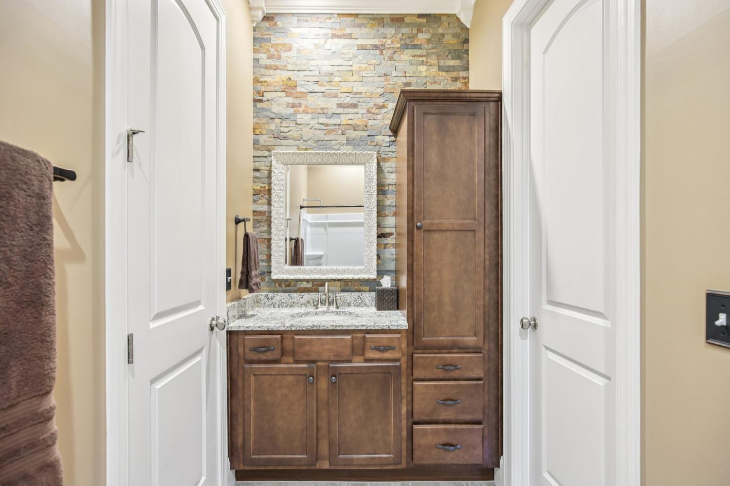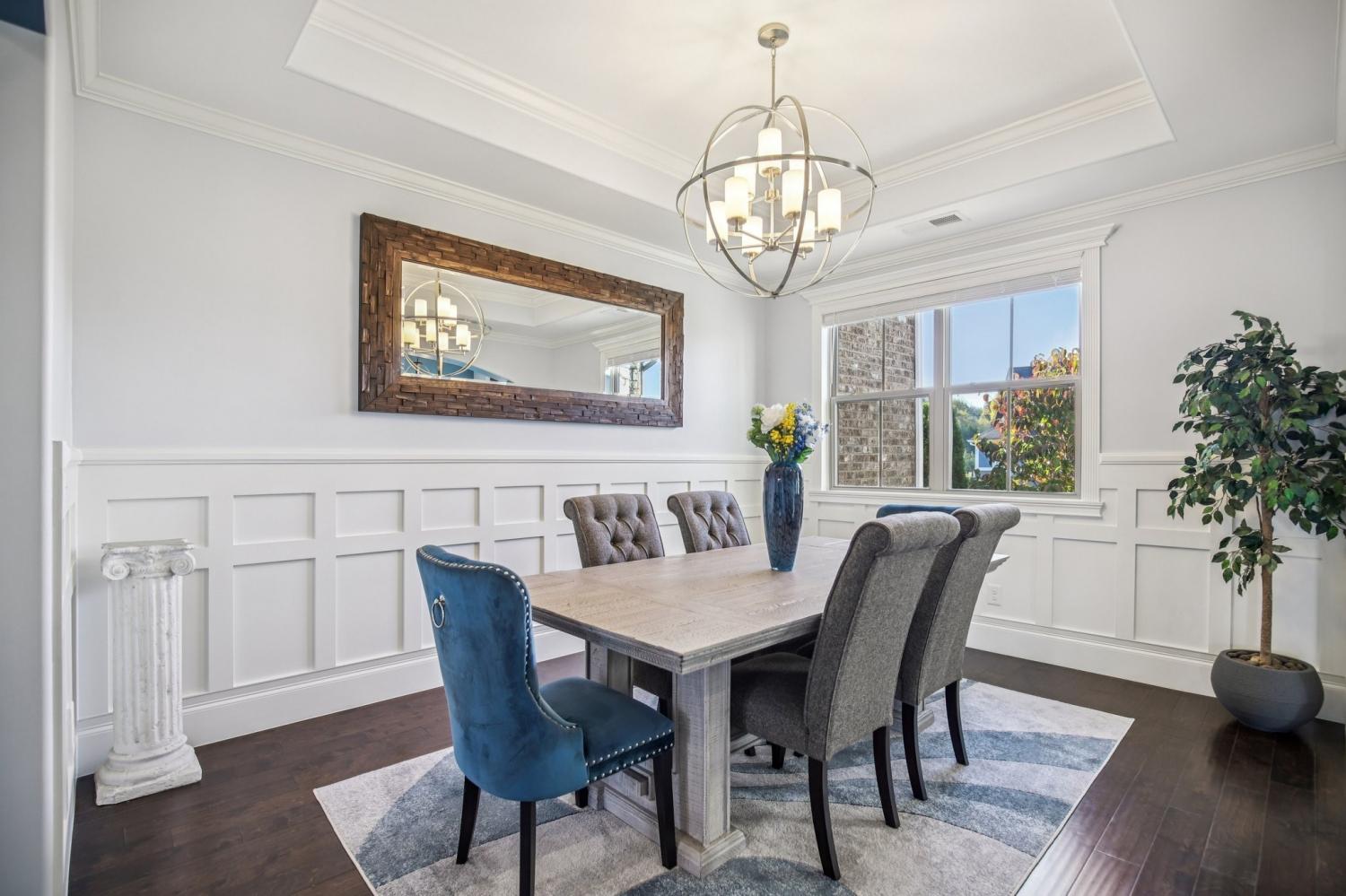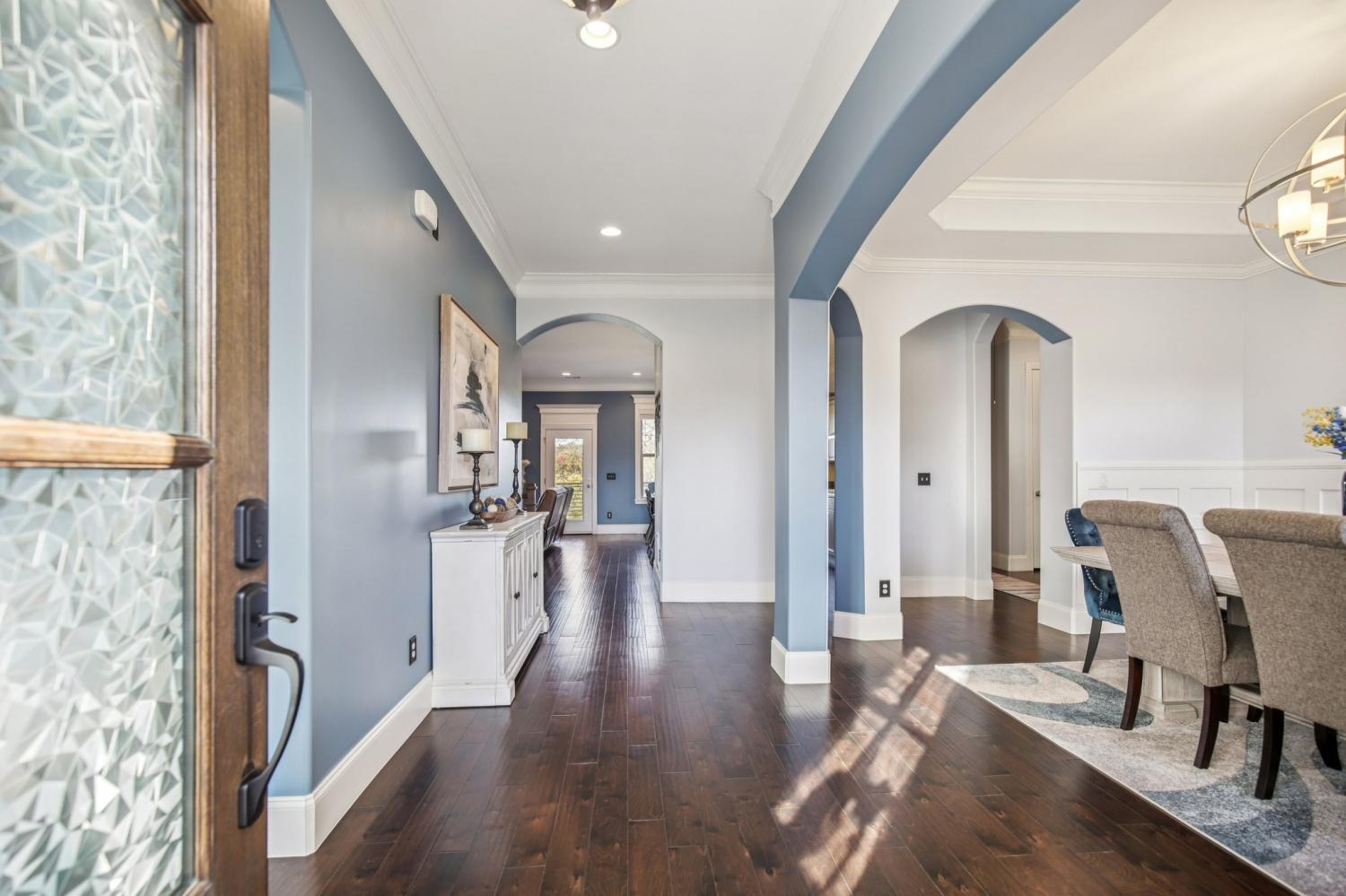 Back to Active- Previous contract with home sale contingency fell through. PRICE REDUCTION FOR QUICK SALE!! SELLERS OFFERING $7500 TOWARDS BUYERS CLOSING COSTS WITH ACCEPTABLE OFFER! This must-see home offers exceptional curb appeal with a charming turret and beautifully maintained landscaping featuring rock accents, lighting, an irrigation system, and a solid poured concrete foundation. Nestled on a large, private lot with a mature tree line, this one-owner, pet-free, and smoke-free home has been immaculately maintained from top to bottom. Inside, discover elegant arched hallways, 10-foot ceilings with 8-foot doors, accent walls, crown molding, and wainscoting that add warmth and character throughout. The open-concept layout is perfect for entertaining, highlighted by a stunning stone fireplace and large windows that fill the home with natural light. The gourmet kitchen features granite countertops, stainless steel appliances, and ample cabinetry. The first-floor primary suite offers a spacious closet and a luxurious frameless shower. Bedrooms 2 and 3, two full baths, a half bath, and laundry are also conveniently located on the main level. The finished basement includes an additional bedroom and full bath, plus abundant unfinished storage space ideal for a workshop or future expansion. Additional features include an alarm system, in-ground gutters, Cat6 network wiring, and an attached garage. Conveniently located close to shopping and restaurants, this exceptional property combines luxury, privacy, and convenience, truly a rare find! No offers with a home sale contingency will be considered unless the home is currently under contract.