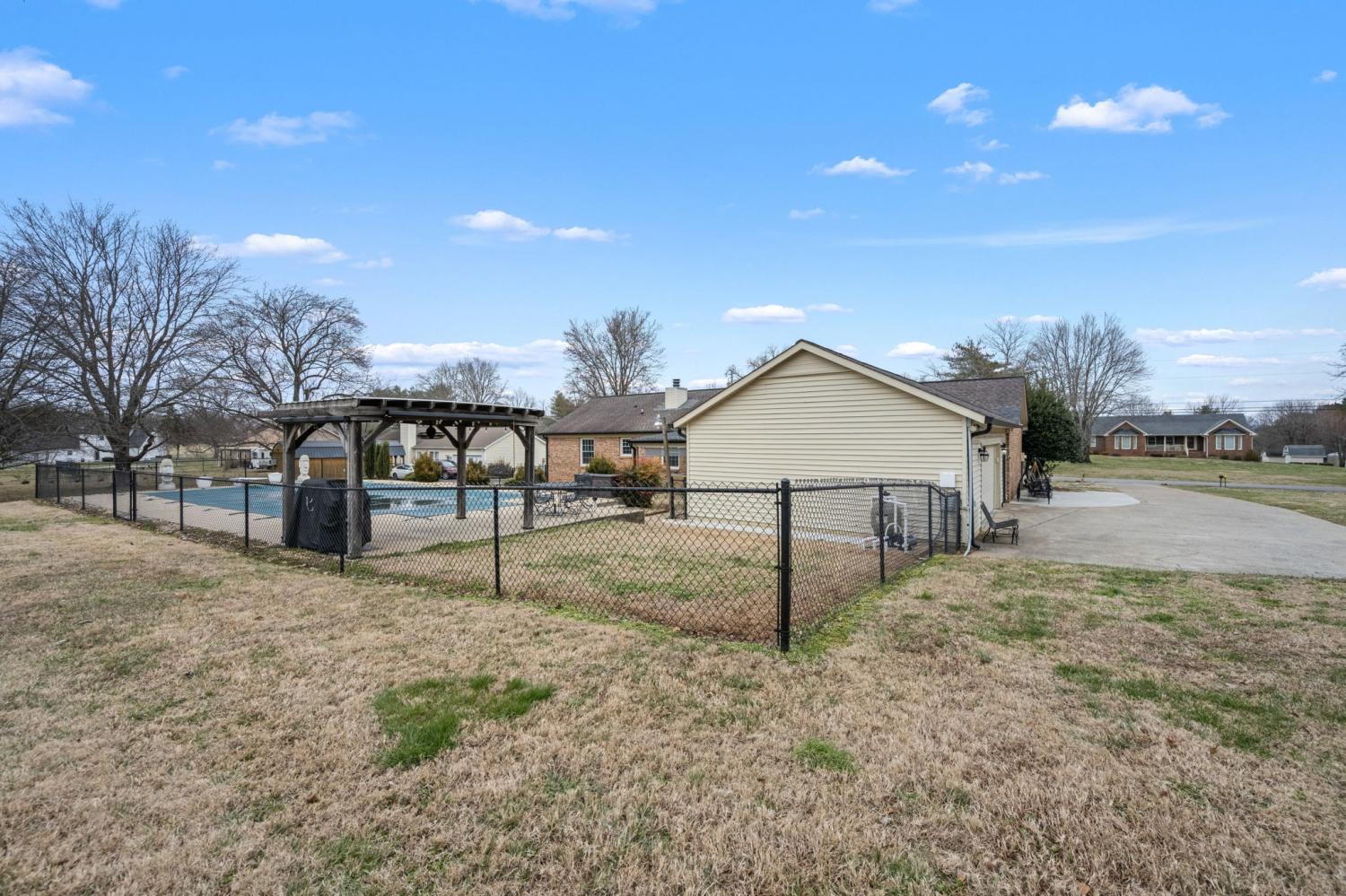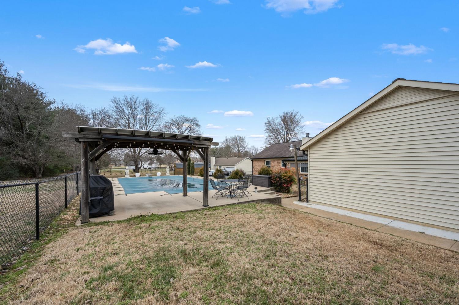 Designed for entertaining, this home offers generous living spaces with Southern charm throughout. This 3-bedroom, 2-bath brick home features a large den along with a welcoming living room highlighted by a cozy wood burning fireplace—perfect for hosting gatherings or enjoying relaxed mornings at home. Step outside to an inviting 20x40 in-ground pool, ideal for summer entertaining, while the concrete driveway and 2-car garage provide ample parking for guests. A detached studio shed with electricity and heating/cooling adds exceptional versatility, perfect for a home office, game room, or creative space. Conveniently located near Riverbend Country Club, this home delivers the space, comfort, and amenities sought for both everyday living and entertaining.