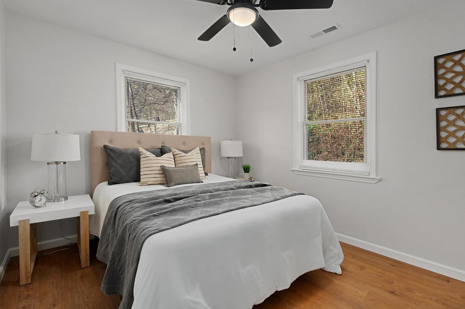 Fantastic remodel in the heart of Rossville only 10 minutes from downtown Chattanooga. The owner had a wonderful vision for updating this 2 or 3 bedroom South Missionary Ridge area home and finishing out the daylight basement to create additional living space that your tenants will truly appreciate. Some additional improvements include the roof (2024), added central HVAC upstairs and a mini-split down, all new drywall, painting inside and out, new interior and exterior doors, some new windows, new water heater, new insulation, new cabinetry, new appliances, new countertops, new flooring, shiplap accents, recessed lighting, landscaping and more. The home now exudes curb appeal with its covered front porch and brick and stone exterior. Your tour of the inside begins with the living room that now has LVP flooring and an enlarged doorway to the open kitchen and dining area. The kitchen now has quartz countertops, grey soft-close cabinetry, stainless appliances and access to the rear patio with the wooded hillside as your private backdrop. There are two bedrooms on this level - both with LVP flooring, ceiling fans and closets. The owner wisely kept the original stone floor and tub/shower surround as a nod to its mid-century origins. Head downstairs where you will find the new flex space which includes the family room with sliding glass doors to the driveway, a large office or 3rd bedroom, a half bath and a laundry room. This space could easily be used as a bedroom suite or makes an equally appealing gathering spot. All of this, and you are close to schools, shopping and restaurants and are just minutes from Chattanooga's Southside. Whether you are looking for a convenient primary residence or an investment property, then this could be the opportunity you have been seeking, so please call for more information and to schedule your private showing. Information is deemed reliable but not guaranteed. Tenant to verify any and all information they deem important.