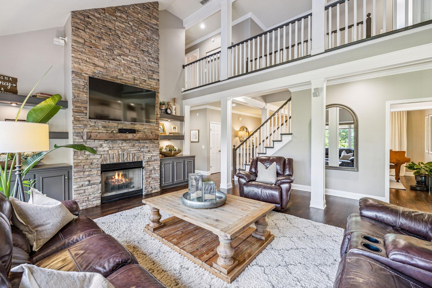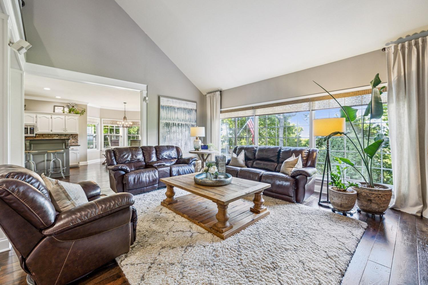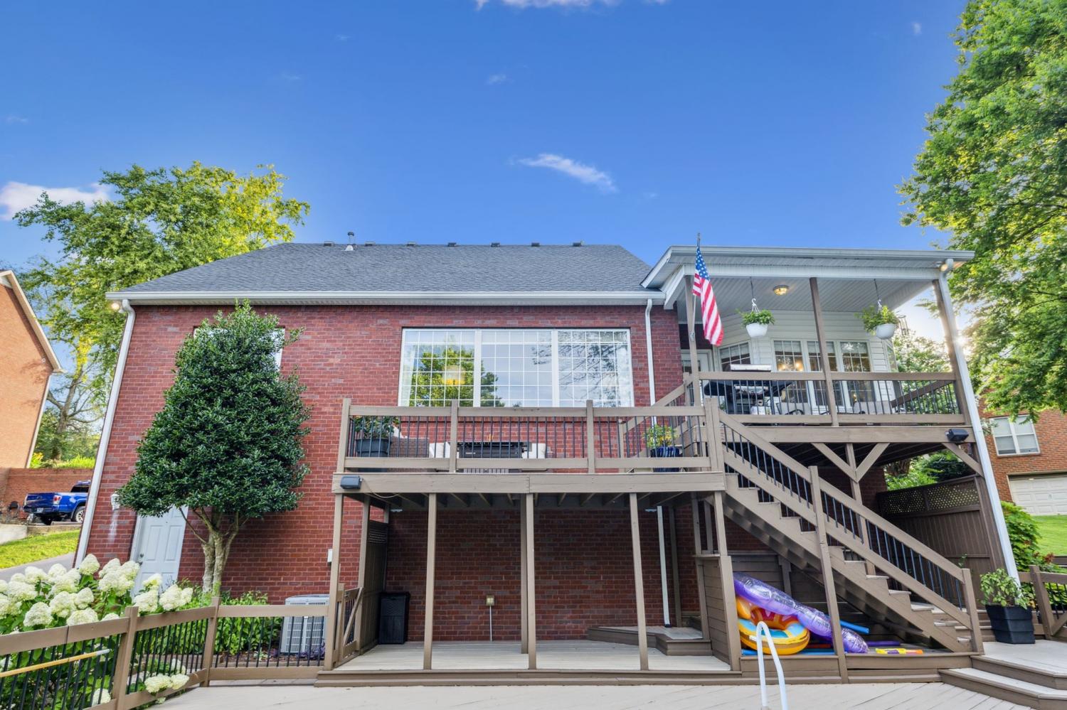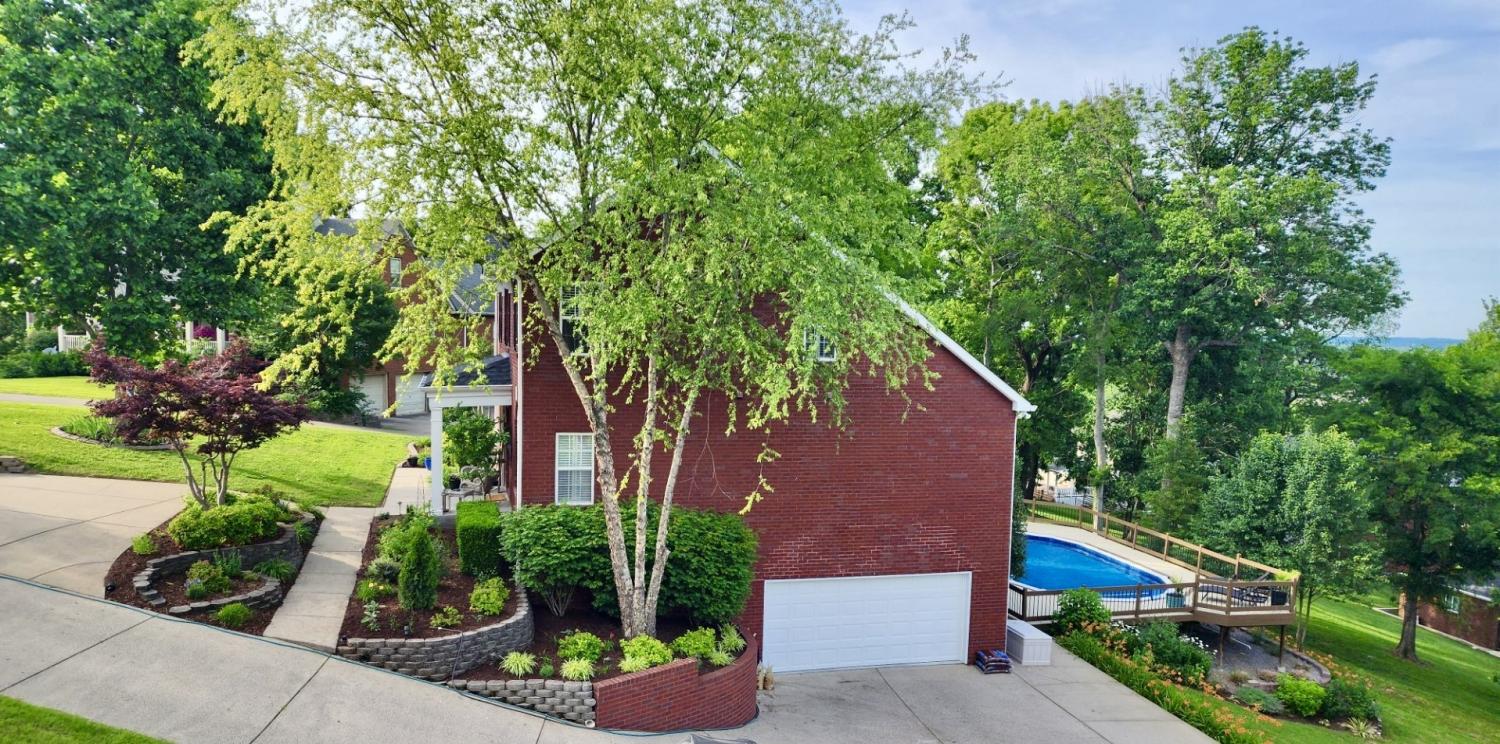 Stunning! This updated 4 BR, 2.5 BA home with bonus room offers comfort, style and is immaculate. Step inside a welcoming foyer and formal dining room, both featuring elegant hardwood floors and a striking light fixture. The spacious den is highlighted by a soaring stone fireplace, built-in bookcases, and offers amazing views of the backyard oasis. The updated kitchen boasts crisp white cabinetry, gleaming granite countertops, and top-of-the-line appliances, including a gas range/oven, microwave, dishwasher, and refrigerator, all complemented by a convenient pantry with custom shelving. A unique second front entrance features a built-in storage cubby leading to a utility room with a modern table and wood shelving. A serene first floor primary suite featuring his closet and her large custom walk-in closet, an updated bath with dual vanities, new granite countertops and tile flooring, walk-in shower and a standalone soaking tub. Upstairs, two generous guest bedrooms connected by a convenient Jack and Jill bath, plus a third guest bedroom and a versatile bonus room. The walk-out basement is exceptionally clean, offering over 966 square feet of additional living space, ready to be customized. Includes an oversized two-car heated garage, a comfortable sitting area, and a dedicated tool and equipment room. Step outside to your private paradise! The backyard features a covered porch, a grilling area, and a viewing deck overlooking an 18x33 foot swimming pool with additional space pre-wired for a hot tub. The expansive pool deck provides ample space for lounging and entertainment offering breathtaking views. This beautifully landscaped home is situated on a quiet cul-de-sac, has a concrete driveway with a convenient turnaround area. Enjoy easy access to all modern amenities and I-24, 22 minutes to downtown Nashville, 28 minutes to BNA airport, minutes to the new Tanger Outlet Mall, restaurants and healthcare making this home a secluded haven.