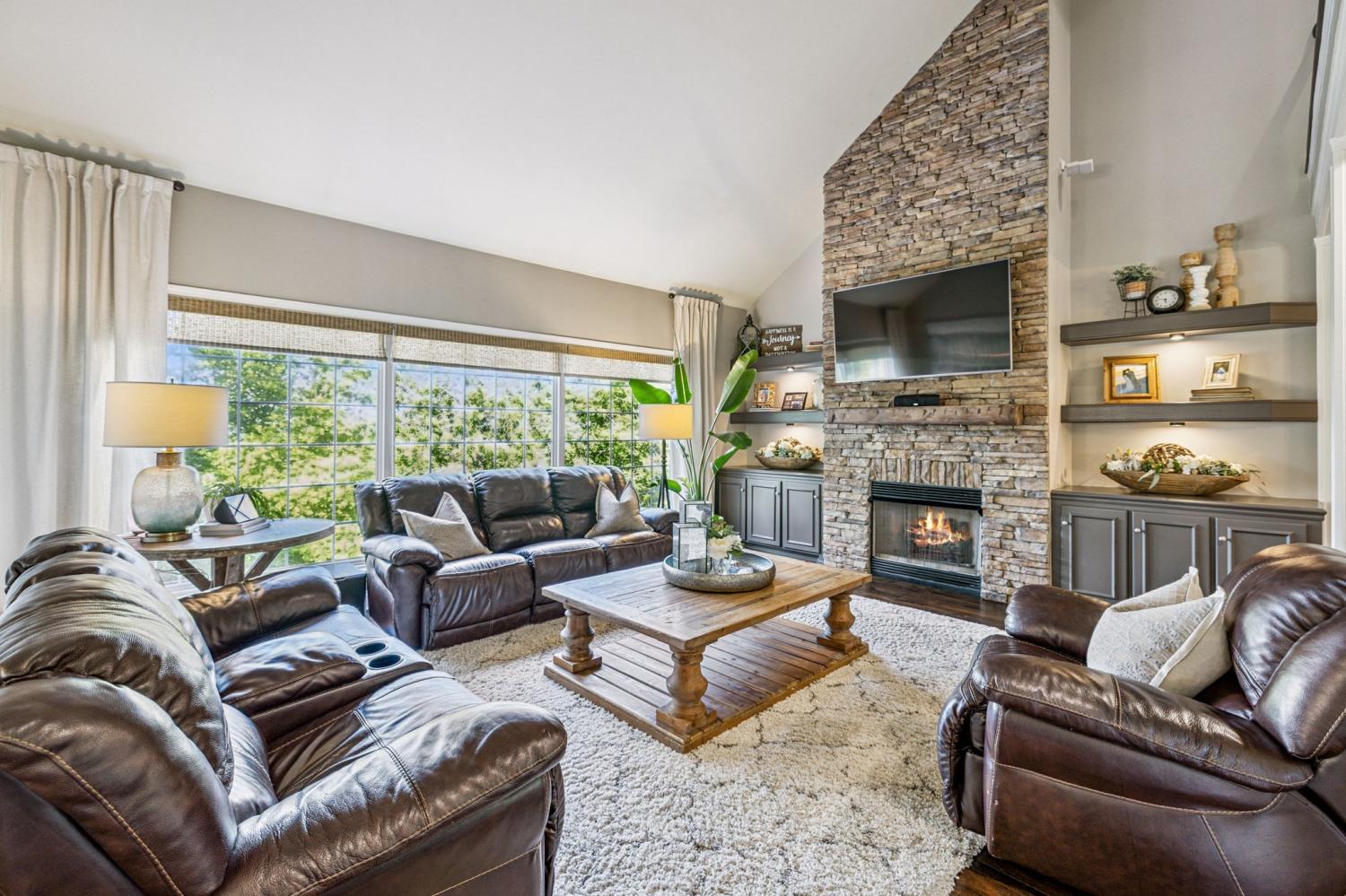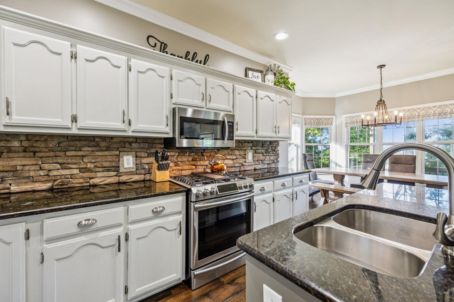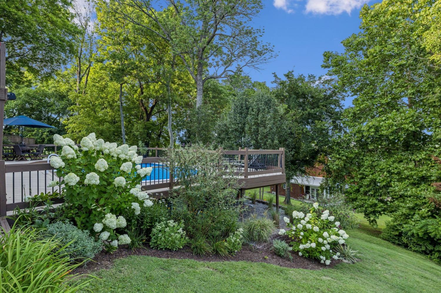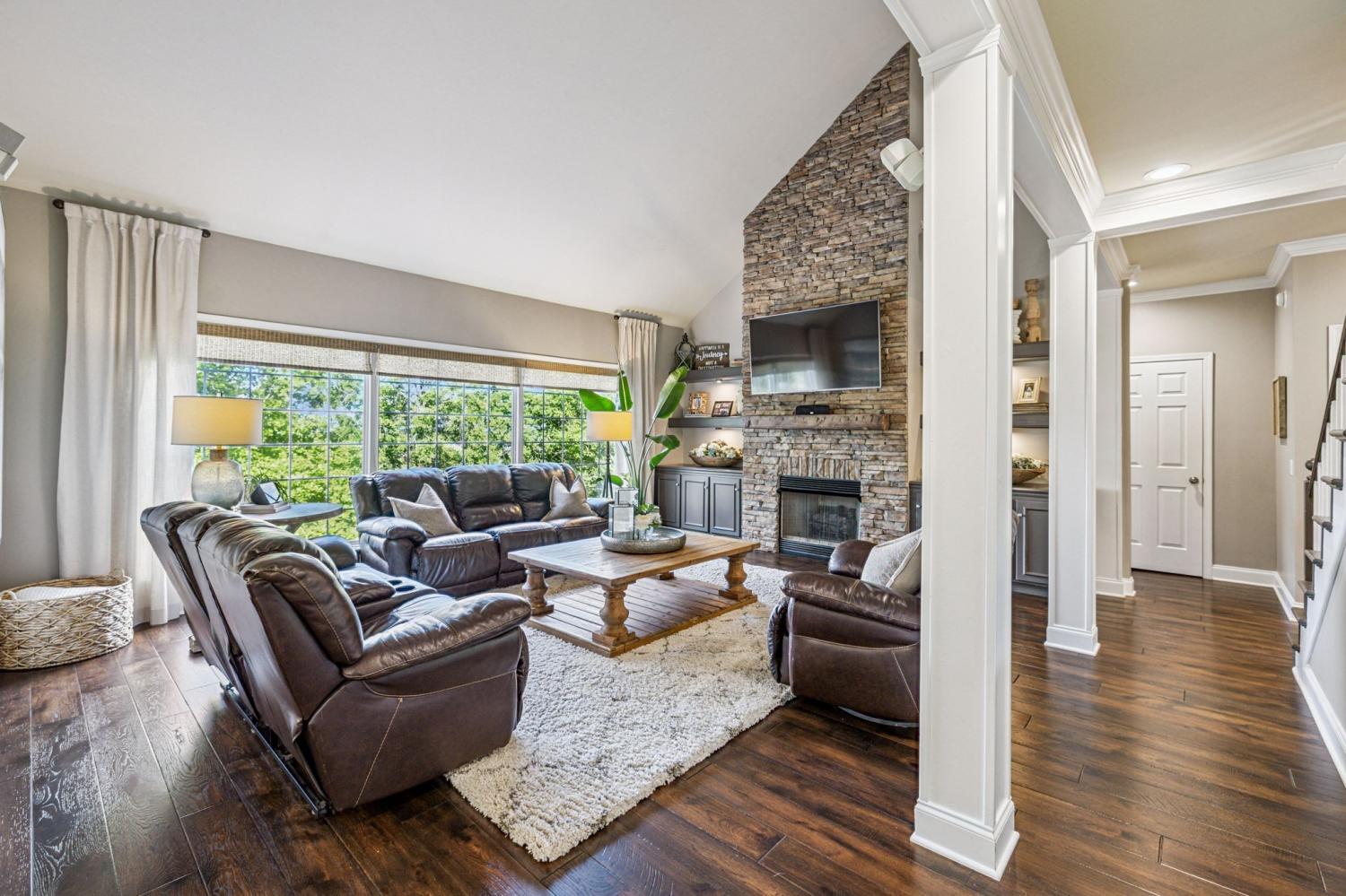 Stunning! This updated 4 BR, 2.5 BA home with bonus room offers comfort, style and is immaculate. Step inside a welcoming foyer and formal dining room, both featuring elegant hardwood floors and a striking light fixture. The spacious den is highlighted by a soaring stone fireplace, built-in bookcases, and offers amazing views of the backyard oasis. The updated kitchen boasts crisp white cabinetry, gleaming granite countertops, and top-of-the-line appliances, including a gas range/oven, microwave, dishwasher, and refrigerator, all complemented by a convenient pantry with custom shelving. A unique second front entrance features a built-in storage cubby leading to a utility room with a modern table and wood shelving. A serene first floor primary suite featuring his closet and her large custom walk-in closet, an updated bath with dual vanities, new granite countertops and tile flooring, walk-in shower and a standalone soaking tub. Upstairs, two generous guest bedrooms connected by a convenient Jack and Jill bath, plus a third guest bedroom and a versatile bonus room. The walk-out basement is exceptionally clean, offering over 966 square feet of additional living space, ready to be customized. Includes an oversized two-car heated garage, a comfortable sitting area, and a dedicated tool and equipment room. Step outside to your private paradise! The backyard features a covered porch, a grilling area, and a viewing deck overlooking an 18x33 foot swimming pool with additional space pre-wired for a hot tub. The expansive pool deck provides ample space for lounging and entertainment offering breathtaking views. This beautifully landscaped home is situated on a quiet cul-de-sac, has a concrete driveway with a convenient turnaround area. Enjoy easy access to all modern amenities and I-24, 22 minutes to downtown Nashville, 28 minutes to BNA airport, minutes to the new Tanger Outlet Mall, restaurants and healthcare making this home a secluded haven.