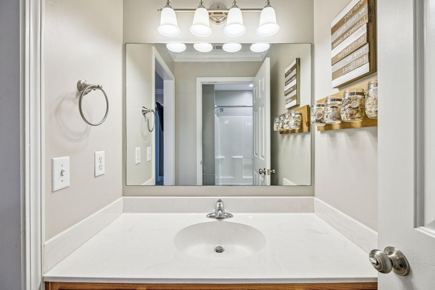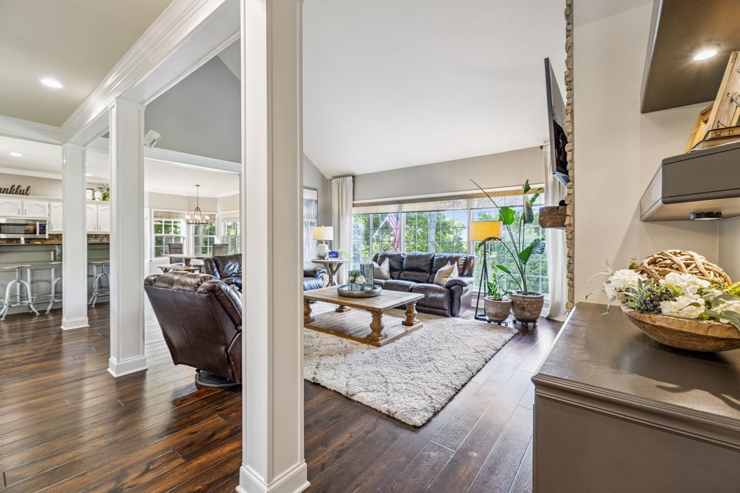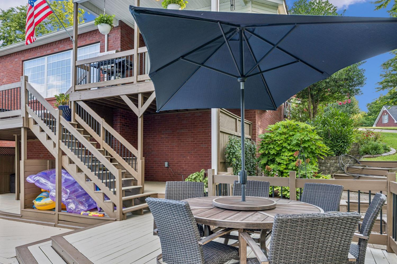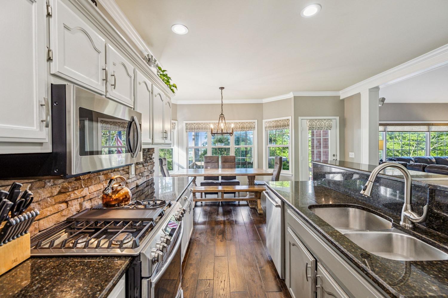 Stunning! This updated 4 BR, 2.5 BA home with bonus room offers comfort, style and is immaculate. Step inside a welcoming foyer and formal dining room, both featuring elegant hardwood floors and a striking light fixture. The spacious den is highlighted by a soaring stone fireplace, built-in bookcases, and offers amazing views of the backyard oasis. The updated kitchen boasts crisp white cabinetry, gleaming granite countertops, and top-of-the-line appliances, including a gas range/oven, microwave, dishwasher, and refrigerator, all complemented by a convenient pantry with custom shelving. A unique second front entrance features a built-in storage cubby leading to a utility room with a modern table and wood shelving. A serene first floor primary suite featuring his closet and her large custom walk-in closet, an updated bath with dual vanities, new granite countertops and tile flooring, walk-in shower and a standalone soaking tub. Upstairs, two generous guest bedrooms connected by a convenient Jack and Jill bath, plus a third guest bedroom and a versatile bonus room. The walk-out basement is exceptionally clean, offering over 966 square feet of additional living space, ready to be customized. Includes an oversized two-car heated garage, a comfortable sitting area, and a dedicated tool and equipment room. Step outside to your private paradise! The backyard features a covered porch, a grilling area, and a viewing deck overlooking an 18x33 foot swimming pool with additional space pre-wired for a hot tub. The expansive pool deck provides ample space for lounging and entertainment offering breathtaking views. This beautifully landscaped home is situated on a quiet cul-de-sac, has a concrete driveway with a convenient turnaround area. Enjoy easy access to all modern amenities and I-24, 22 minutes to downtown Nashville, 28 minutes to BNA airport, minutes to the new Tanger Outlet Mall, restaurants and healthcare making this home a secluded haven.