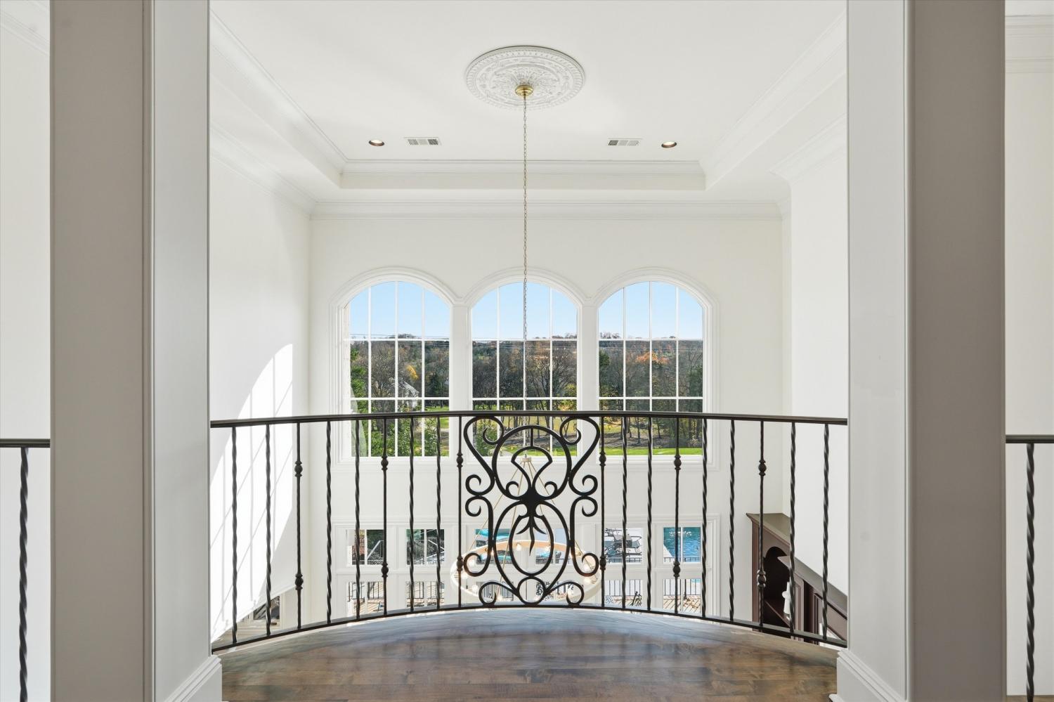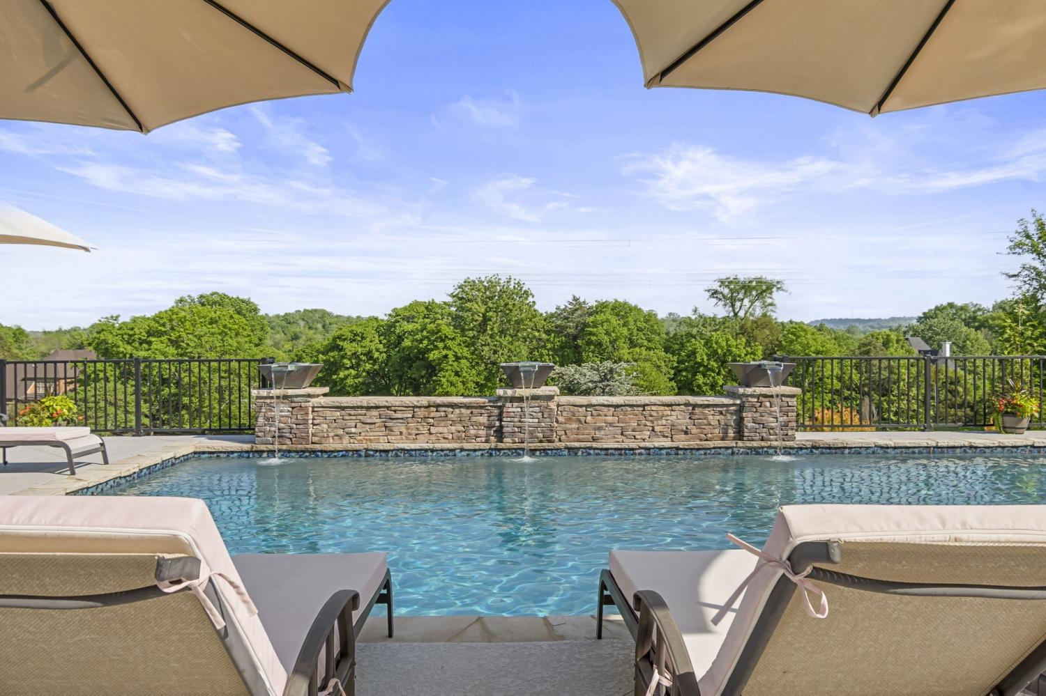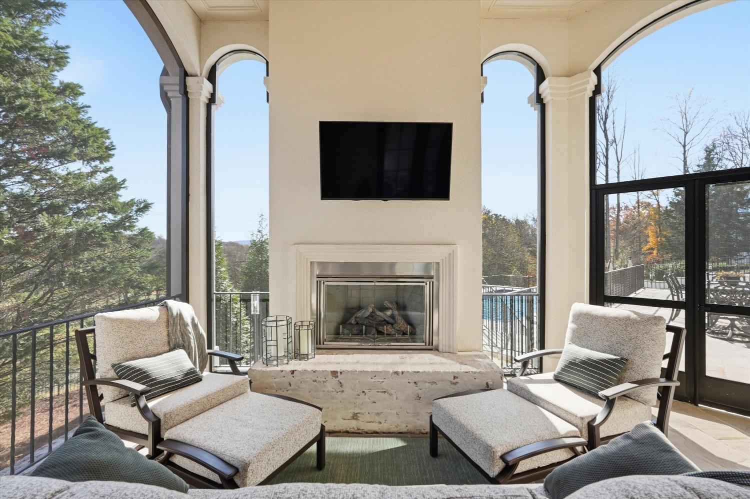 Welcome to luxury living in The Governor’s Club, one of Middle Tennessee’s most prestigious gated golf communities. Overlooking the Arnold Palmer Signature Course, this fully renovated residence blends timeless Italian-inspired architecture with modern functionality and resort-style amenities. Designed for effortless entertaining, the grand two-story domed foyer opens to an elegant sitting room with Palladian windows, a wet bar, and a large gas log fireplace. French doors lead to an expansive terrace overlooking the luxury-size pool and outdoor living areas. A formal dining room complements the sitting room, while high archways create a seamless flow throughout the main level. The chef’s kitchen features professional-grade appliances, Taj Mahal quartzite counters, custom cabinetry, an Archistone range hood, and generous island seating. The great room extends the entertainment space and includes another gas log fireplace. The primary suite offers privacy and sophistication with its Archistone fireplace, double French doors to the terrace, spa bath, and custom closets. The media room includes 7:2 surround sound, a 4K projector, pool table, and wet bar. The upper level provides three additional bedrooms and a library/office with a gas log fireplace. A private in-law suite on the lower level is ideal for extended family or multigenerational living, featuring its own entrance, gas log fireplace, studio kitchen, large closets, and spacious bath. Outdoor living is exceptional, with a screened-in porch featuring a gas log fireplace and American Outdoor 36” grill, plus a large pool deck with an outdoor kitchen, refrigerator, and bar seating. The fully fenced yard provides privacy while capturing scenic fairway and landscape views. 2025 updates include a new roof, new kitchen, refreshed lighting, interior & exterior paint, refinished hardwoods, and landscaping. Inside the gates, residents enjoy 24-hour security, dining, fitness, tennis, swimming, and vibrant social events.